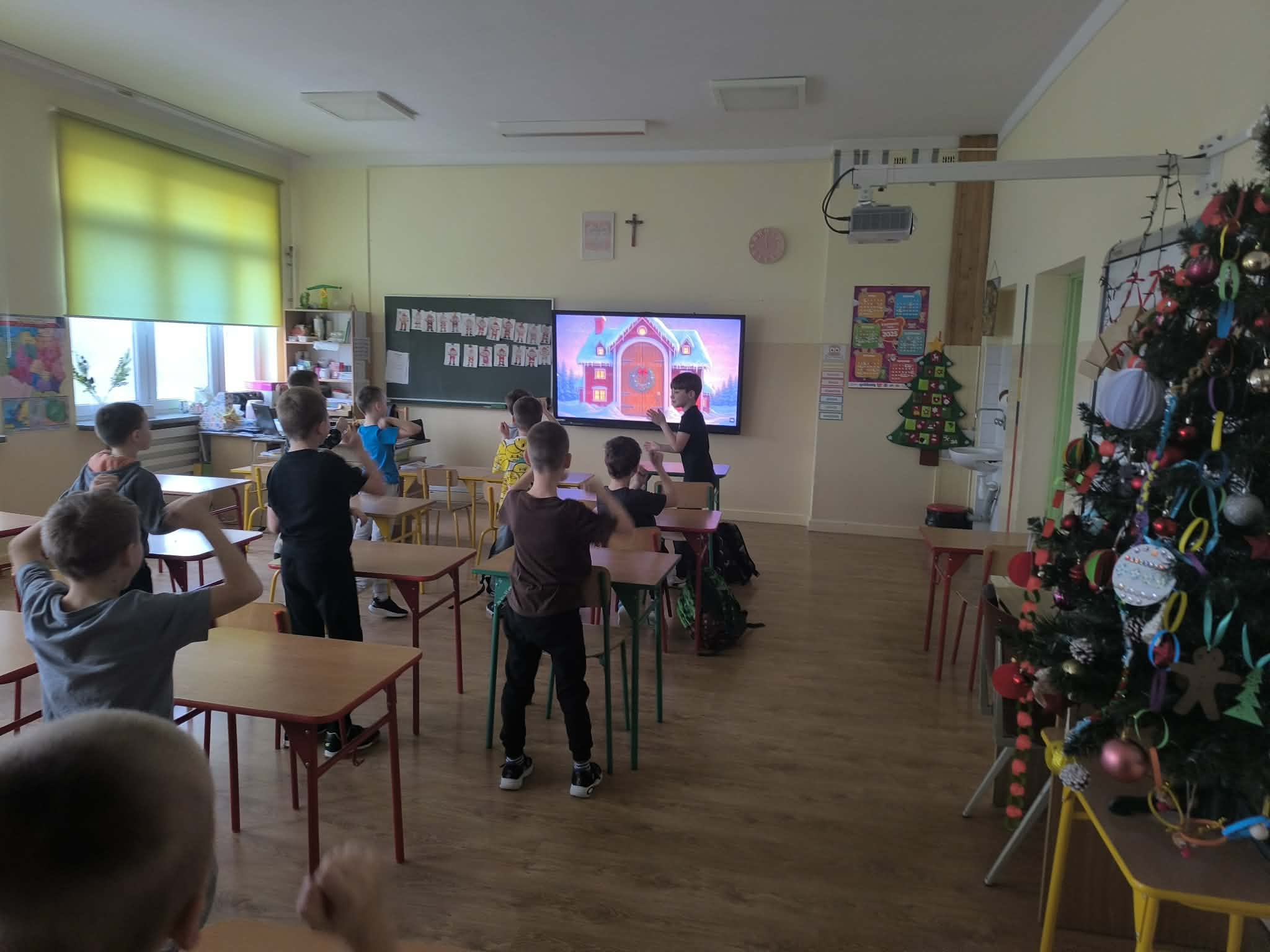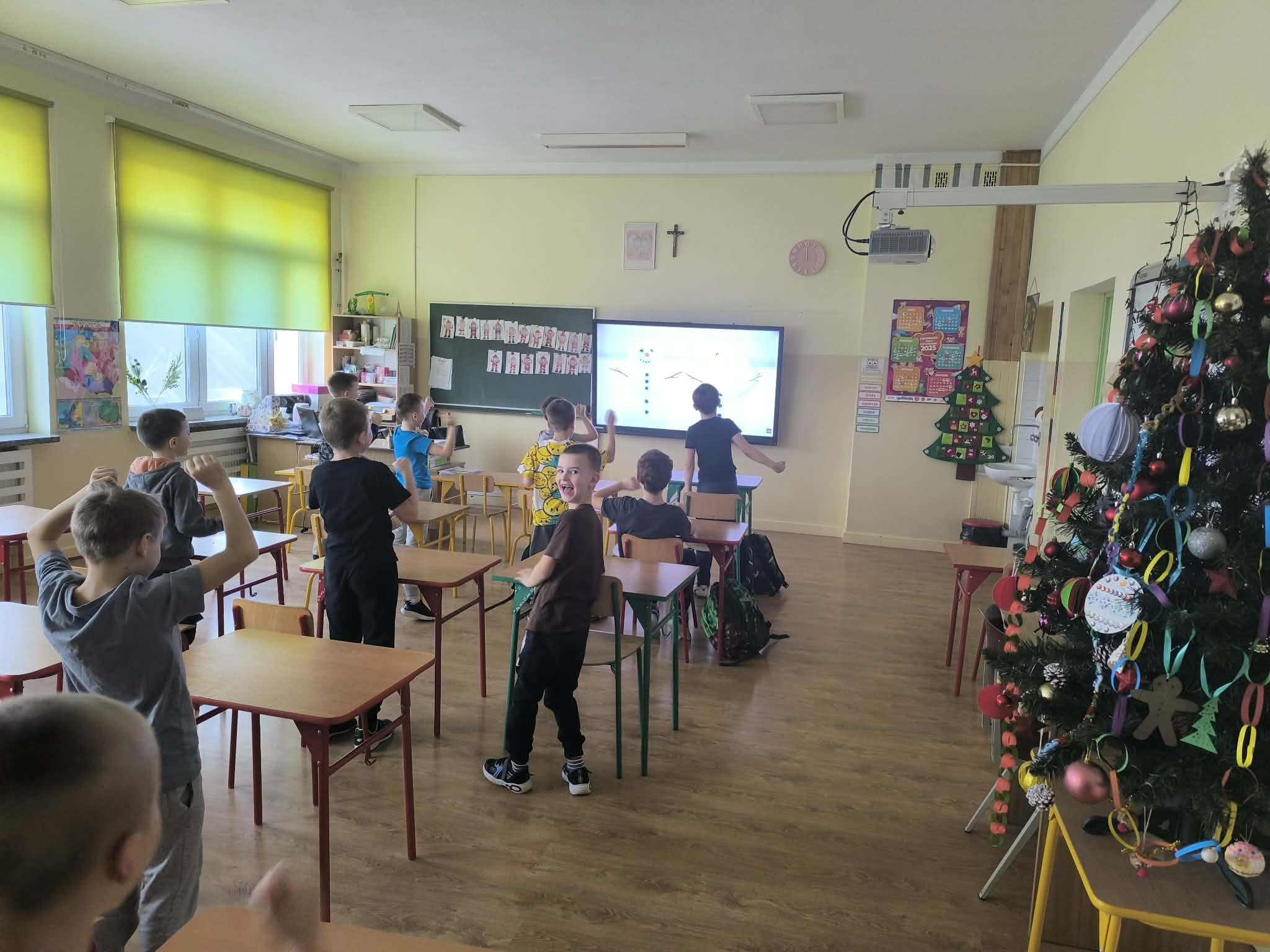W naszej świetlicy uczniowie doświdczyli radości uczestnicząć w zajęciach ruchowych "Christmas Interactive Warm-Up" z wykorzystaniem tablicy interaktywnej oraz podczas gier i zabaw bieżnych na sali gimnastycznej.