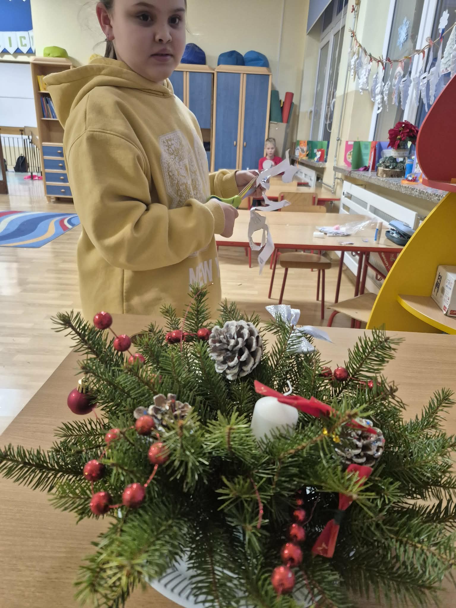 Wykonywaliśmy wiele prac plastycznych oraz technicznych, które przystroiły salę świetlicy a także takich które uczniowie mogli zabrać do domu np. stroiki.