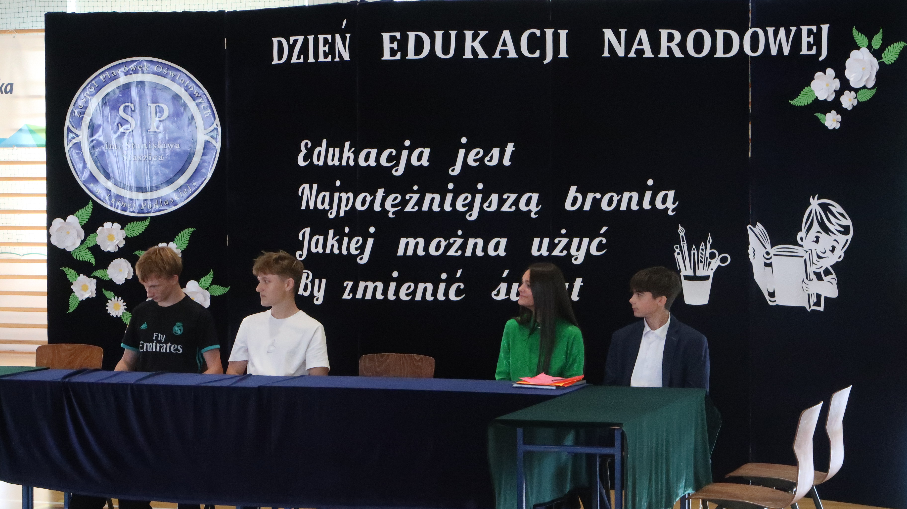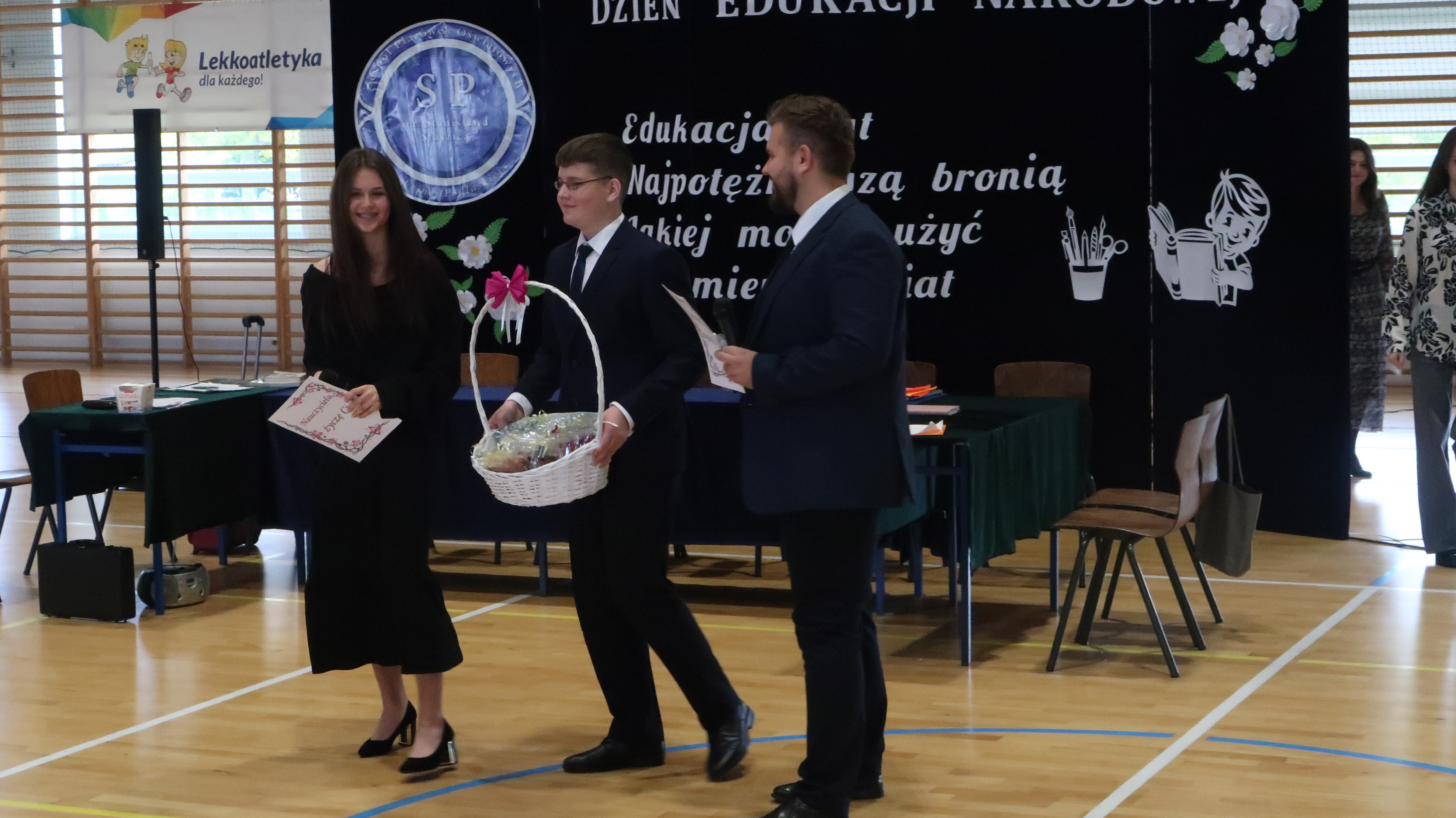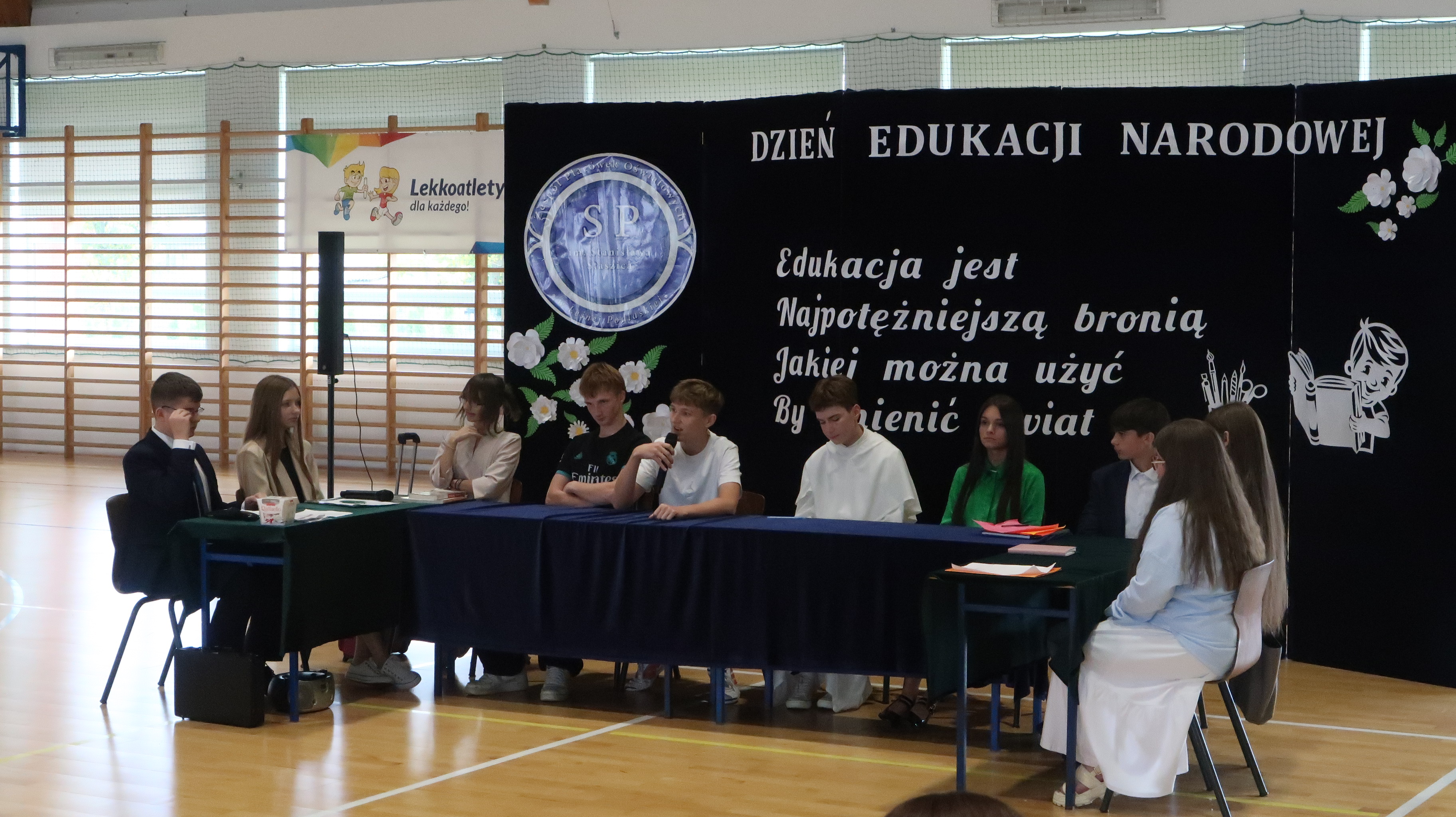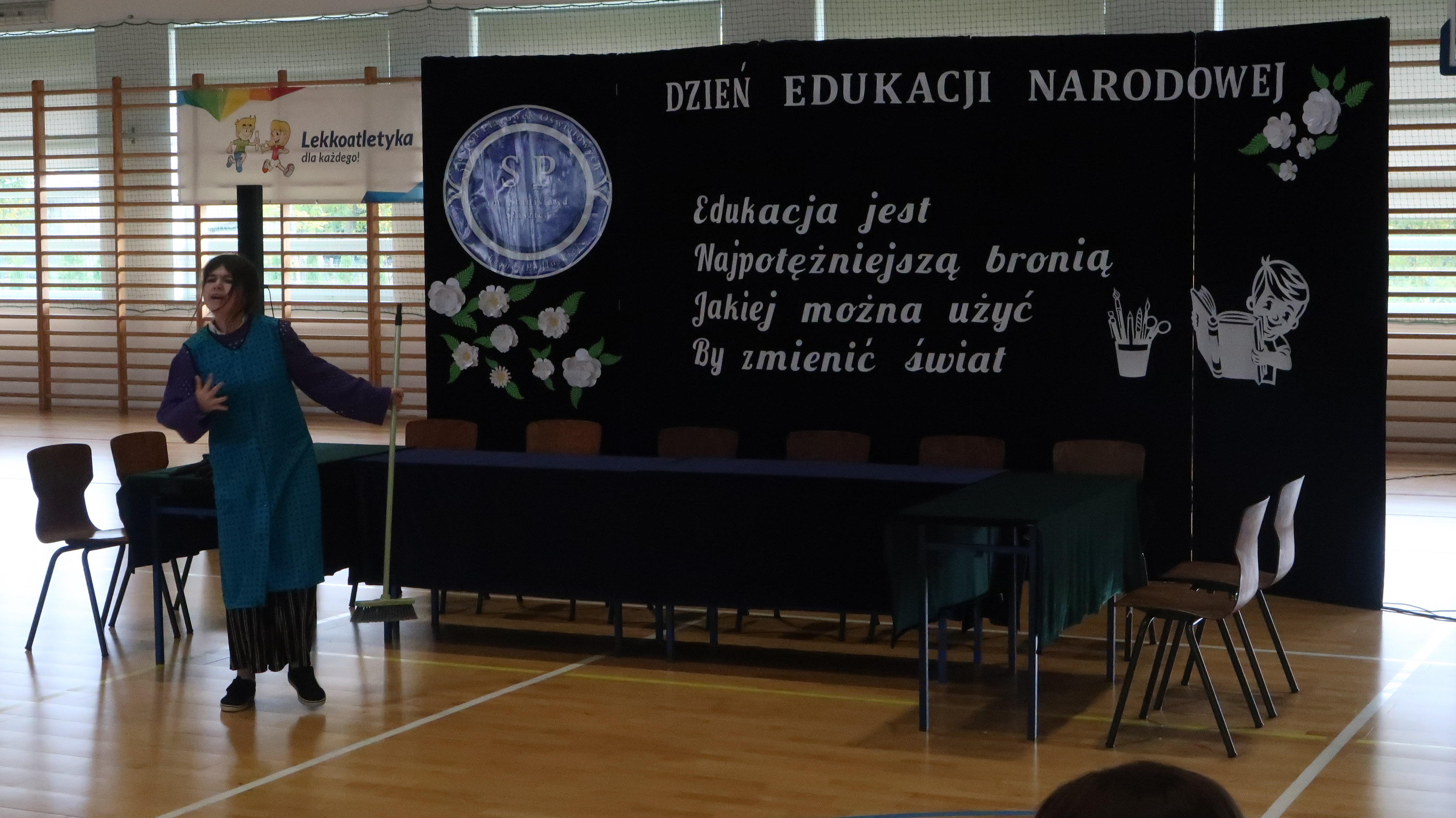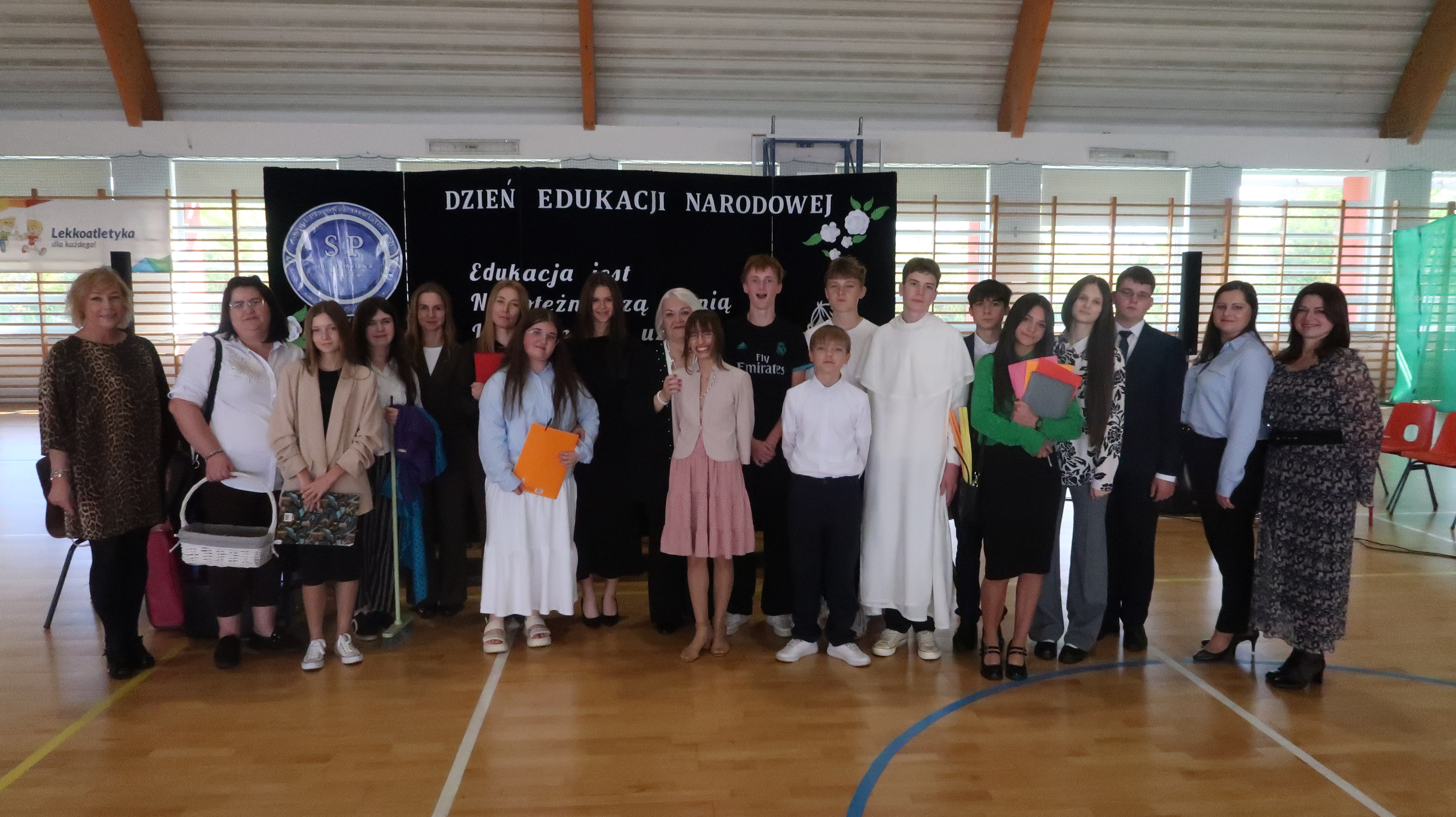 W poniedziałek, 13 października, świętowaliśmy Dzień Edukacji Narodowej. W naszej szkolnej uroczystości uczestniczyli p. Anna Bąkowska – sekretarz Gminy Leśna Podlaska, p. Bożena Abramowicz – kierownik Gminnej Biblioteki Publicznej w Leśnej Podlaskiej, p. Agata Dunajko – przewodnicząca Rady Rodziców Szkoły Podstawowej w Leśnej Podlaskiej, p. Barbara Horbowiec – zastępca przewodniczącej Rady Rodziców, dyrekcja, nauczyciele, uczniowie, pracownicy szkoły oraz rodzice.