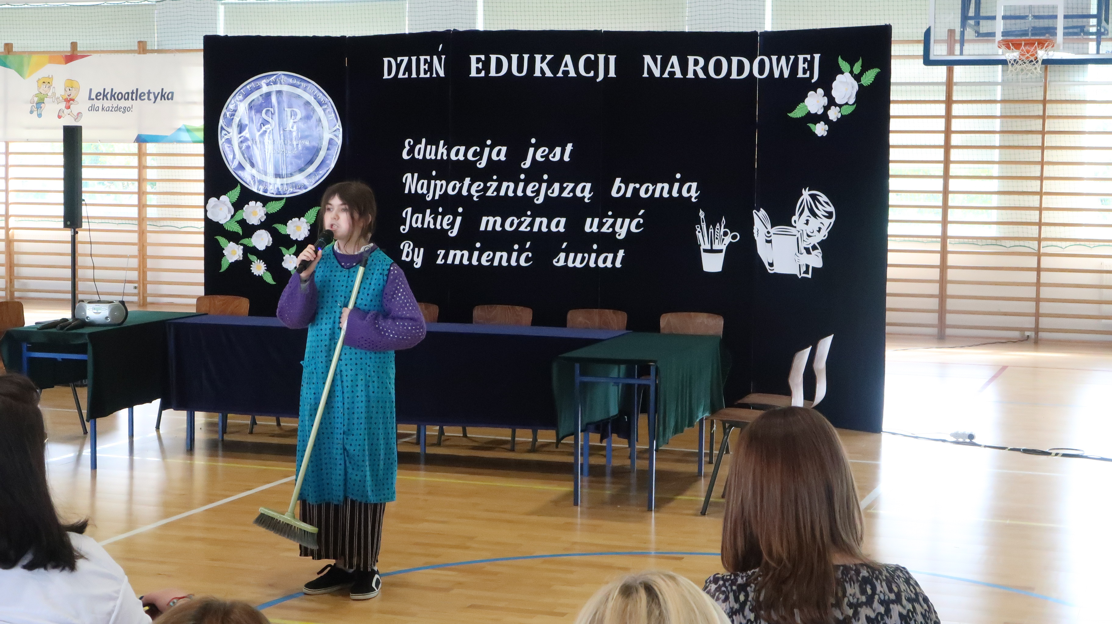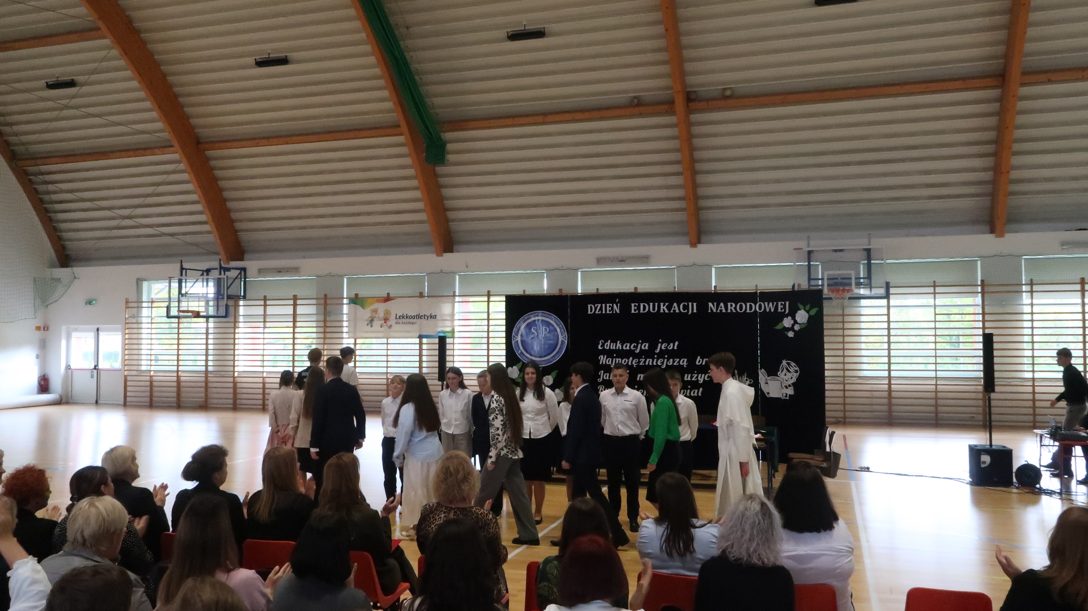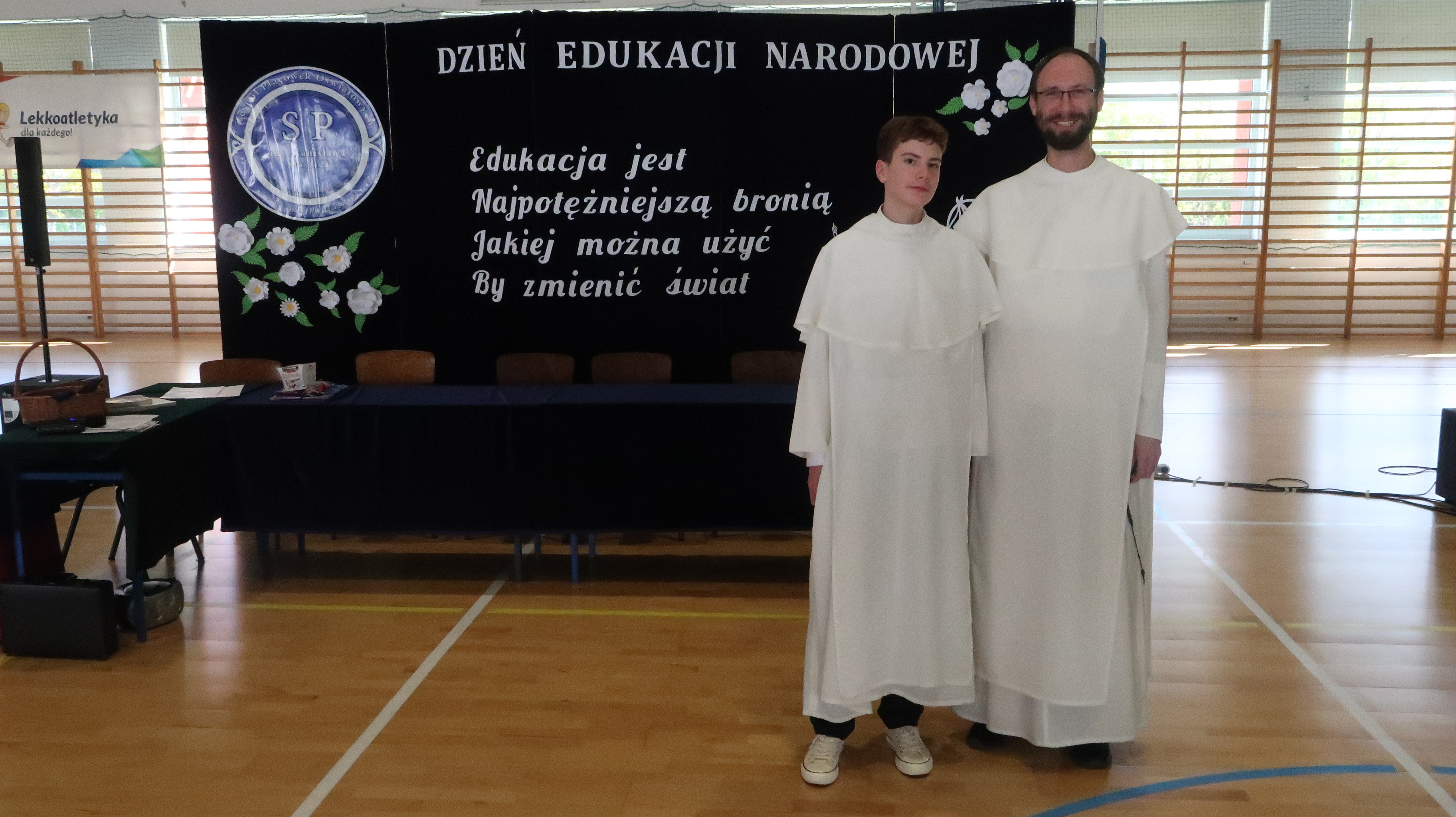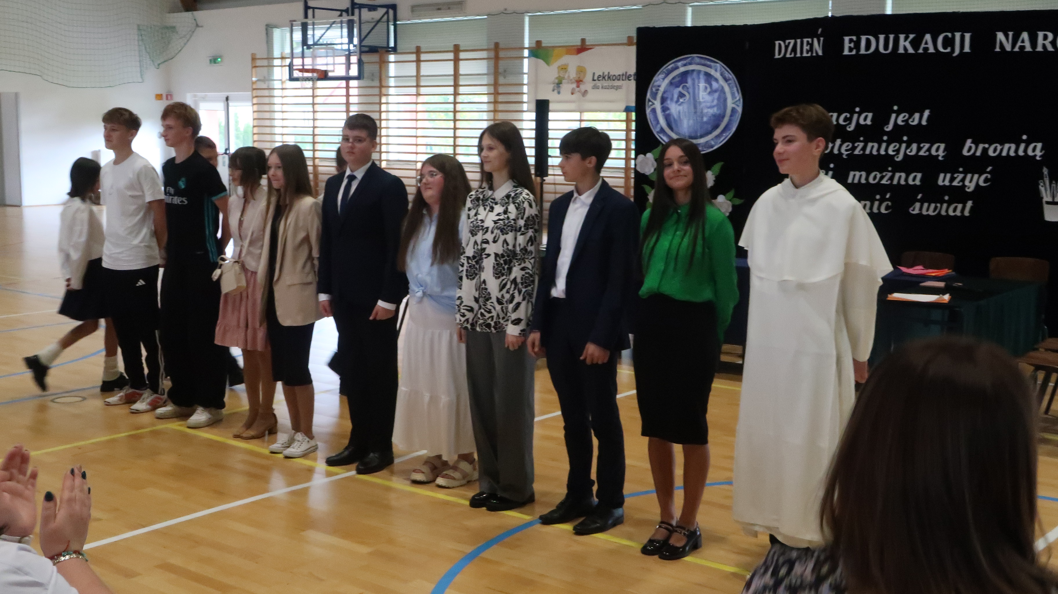W poniedziałek, 13 października, świętowaliśmy Dzień Edukacji Narodowej. W naszej szkolnej uroczystości uczestniczyli p. Anna Bąkowska – sekretarz Gminy Leśna Podlaska, p. Bożena Abramowicz – kierownik Gminnej Biblioteki Publicznej w Leśnej Podlaskiej, p. Agata Dunajko – przewodnicząca Rady Rodziców Szkoły Podstawowej w Leśnej Podlaskiej, p. Barbara Horbowiec – zastępca przewodniczącej Rady Rodziców, dyrekcja, nauczyciele, uczniowie, pracownicy szkoły oraz rodzice.