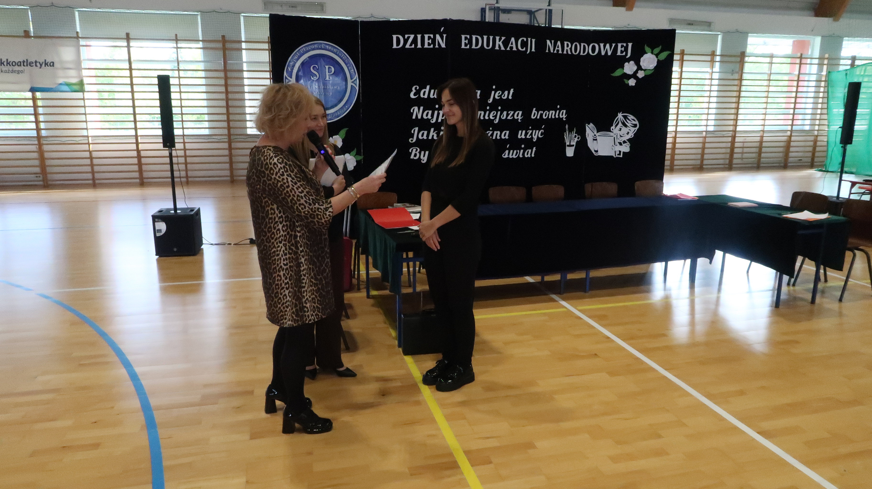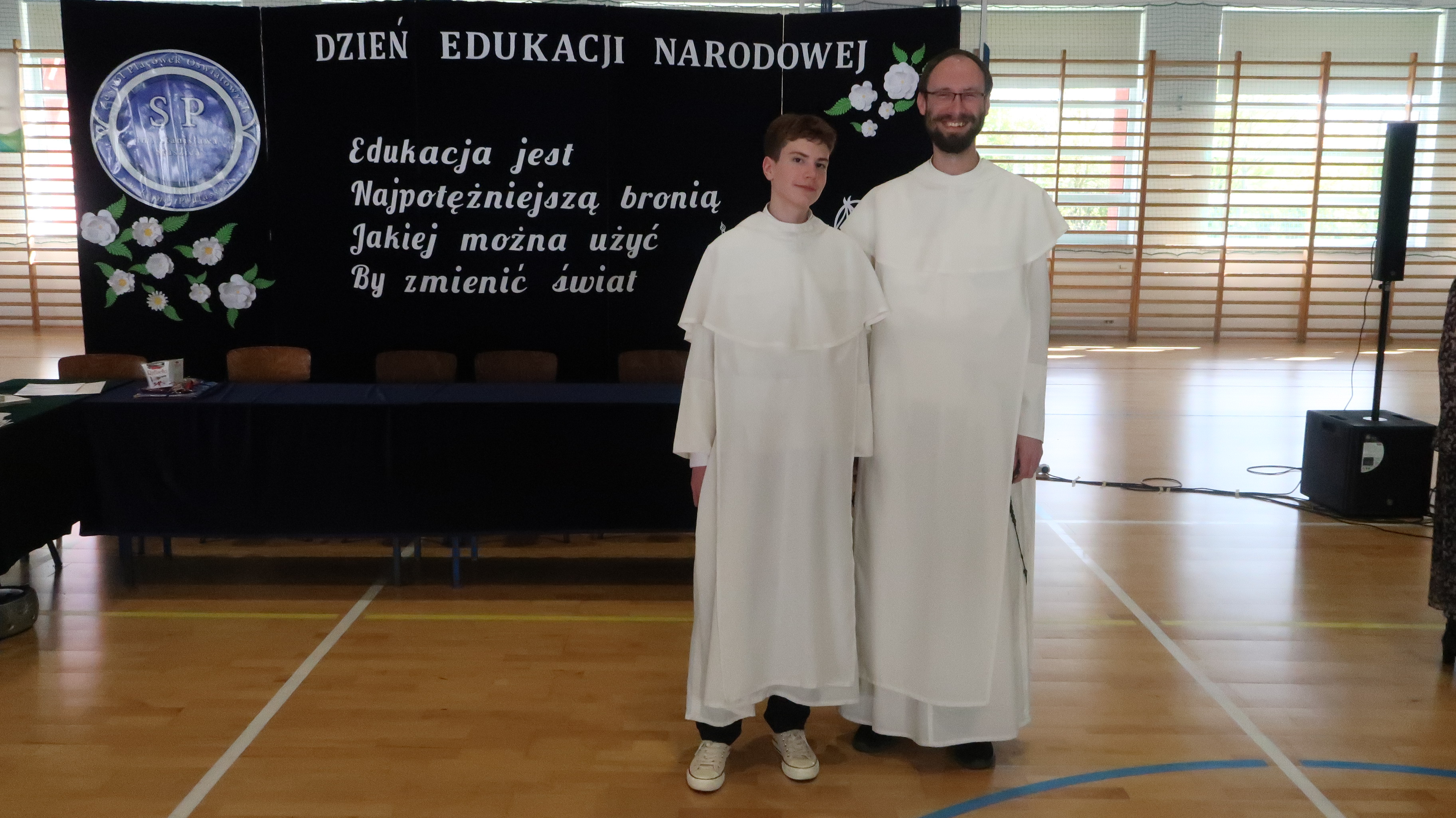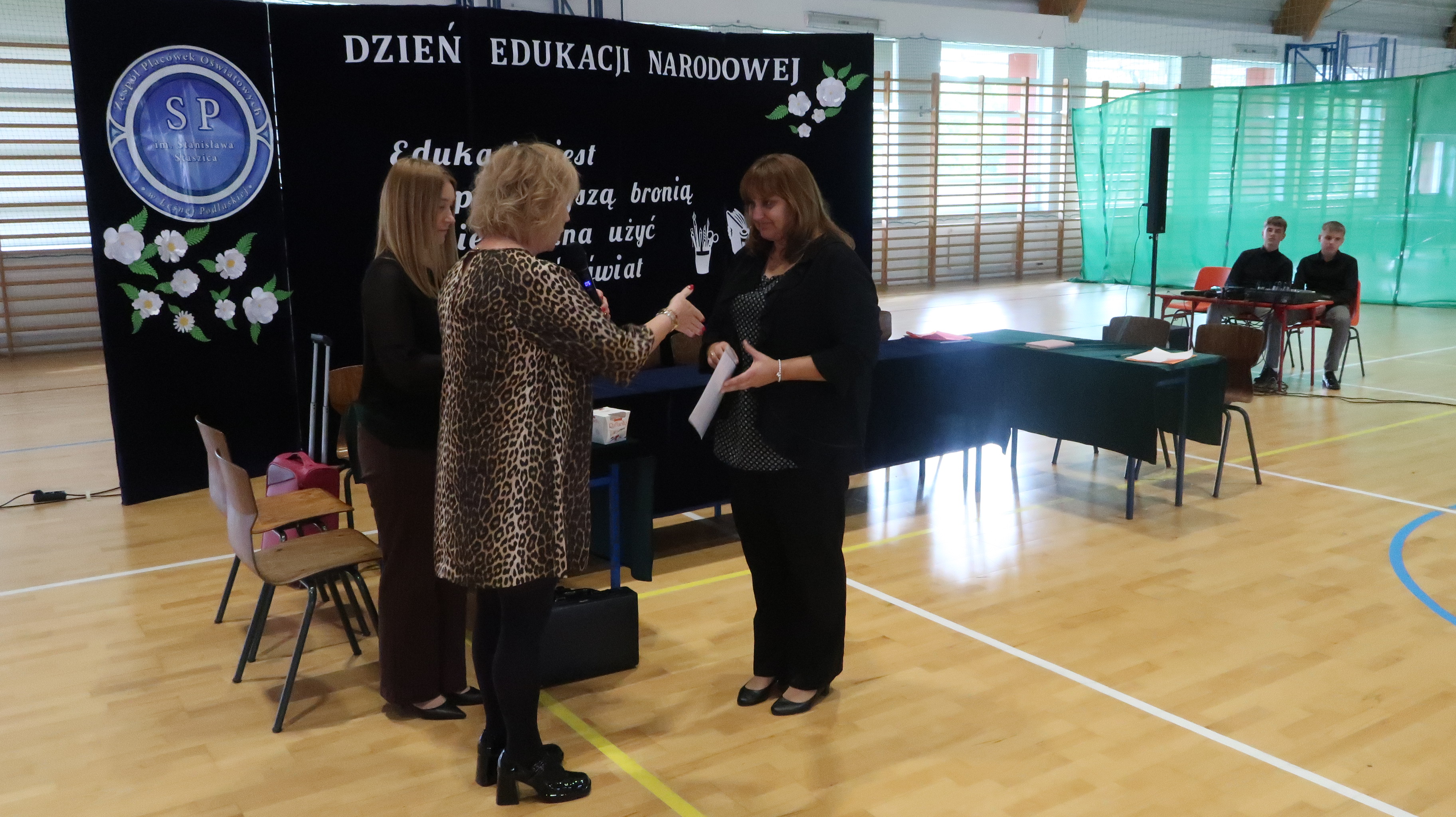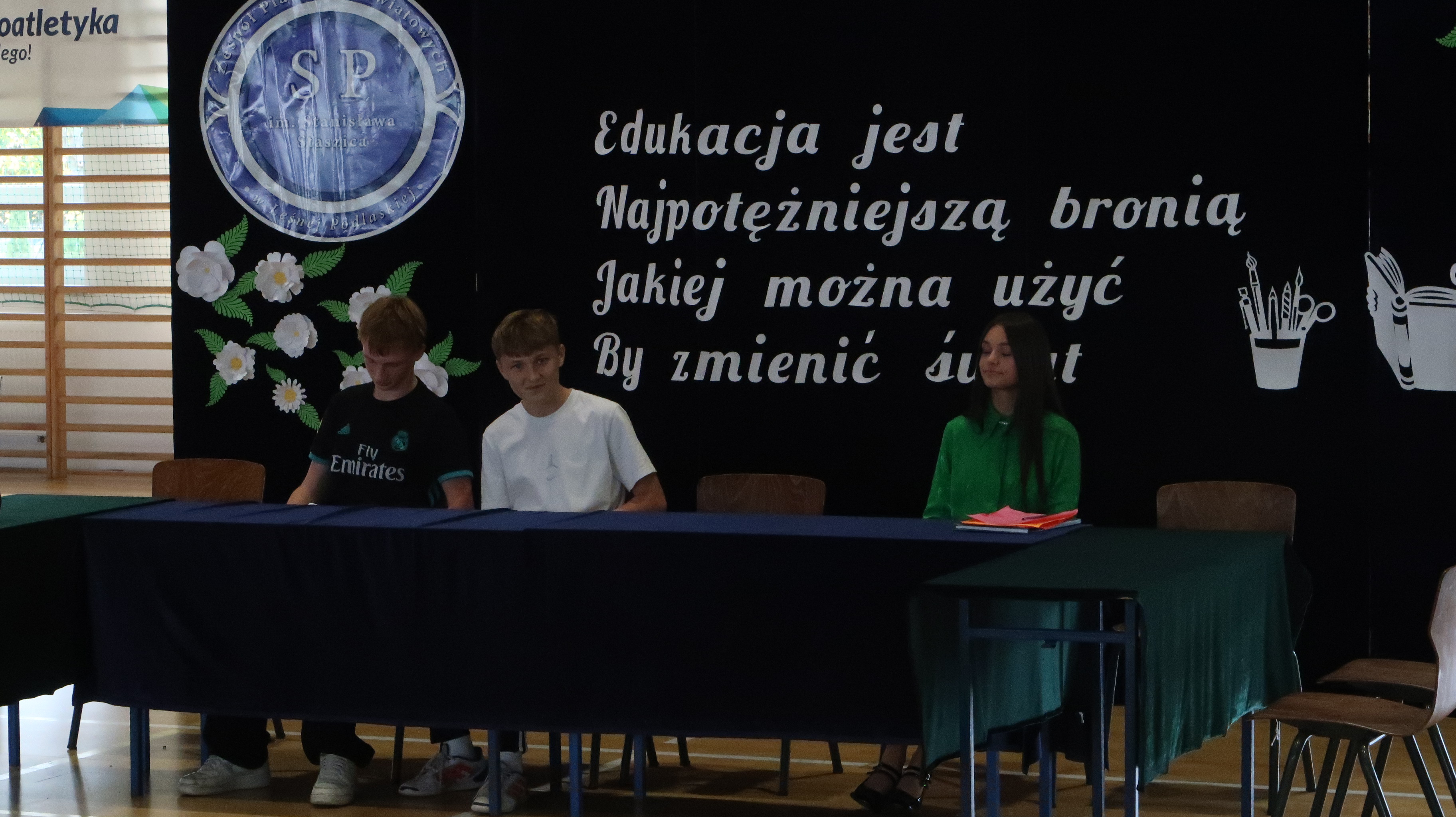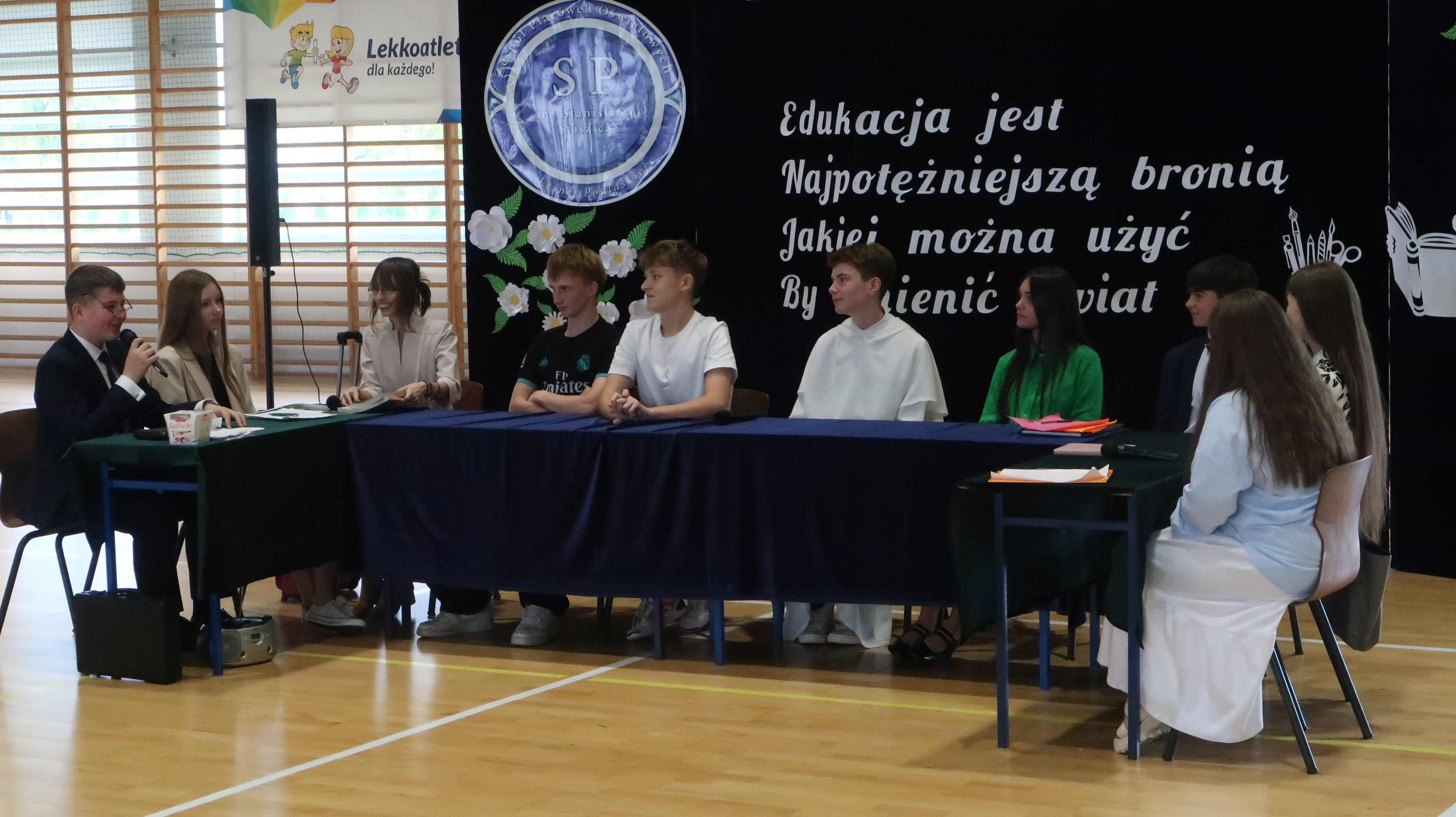 W poniedziałek, 13 października, świętowaliśmy Dzień Edukacji Narodowej. W naszej szkolnej uroczystości uczestniczyli p. Anna Bąkowska – sekretarz Gminy Leśna Podlaska, p. Bożena Abramowicz – kierownik Gminnej Biblioteki Publicznej w Leśnej Podlaskiej, p. Agata Dunajko – przewodnicząca Rady Rodziców Szkoły Podstawowej w Leśnej Podlaskiej, p. Barbara Horbowiec – zastępca przewodniczącej Rady Rodziców, dyrekcja, nauczyciele, uczniowie, pracownicy szkoły oraz rodzice.