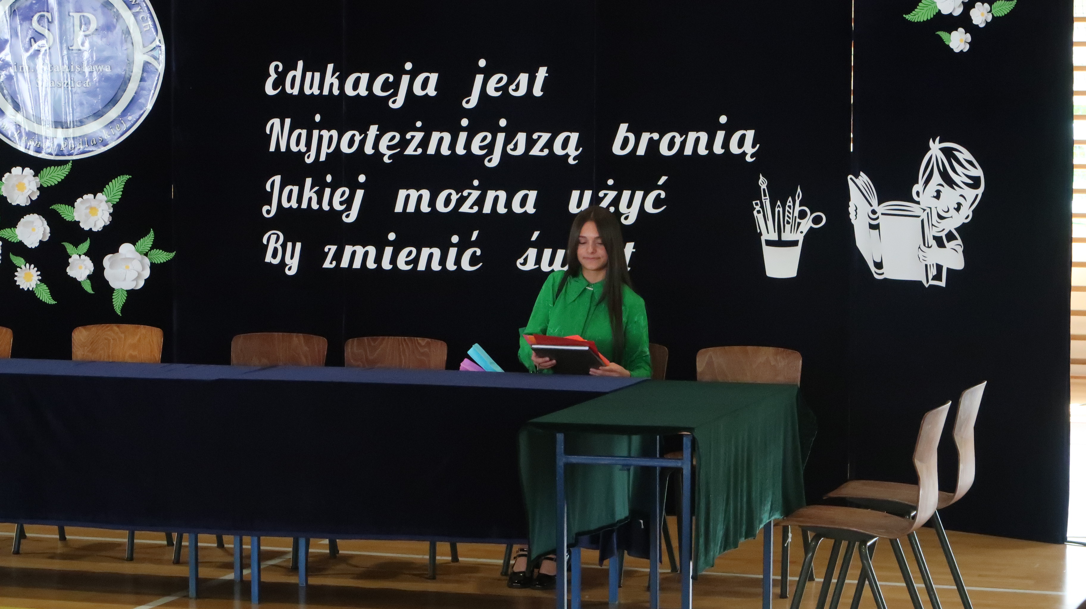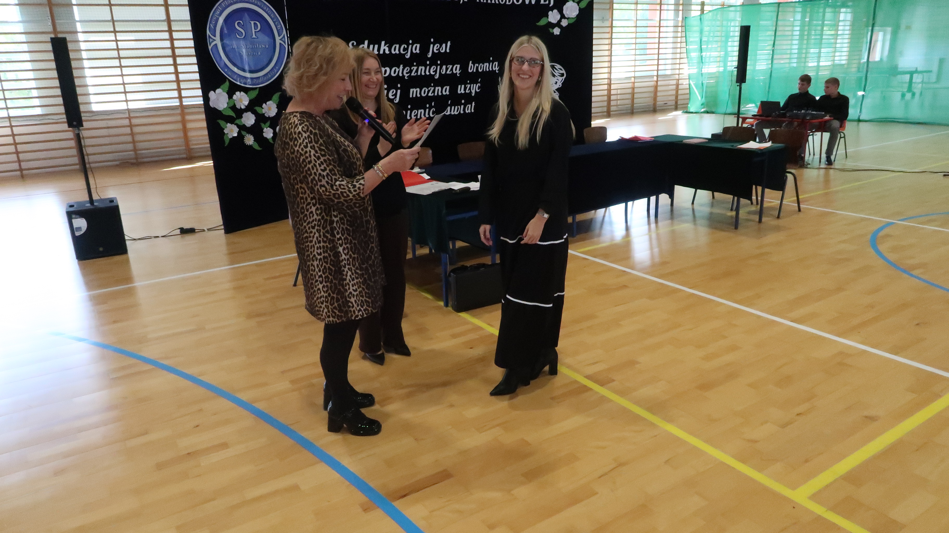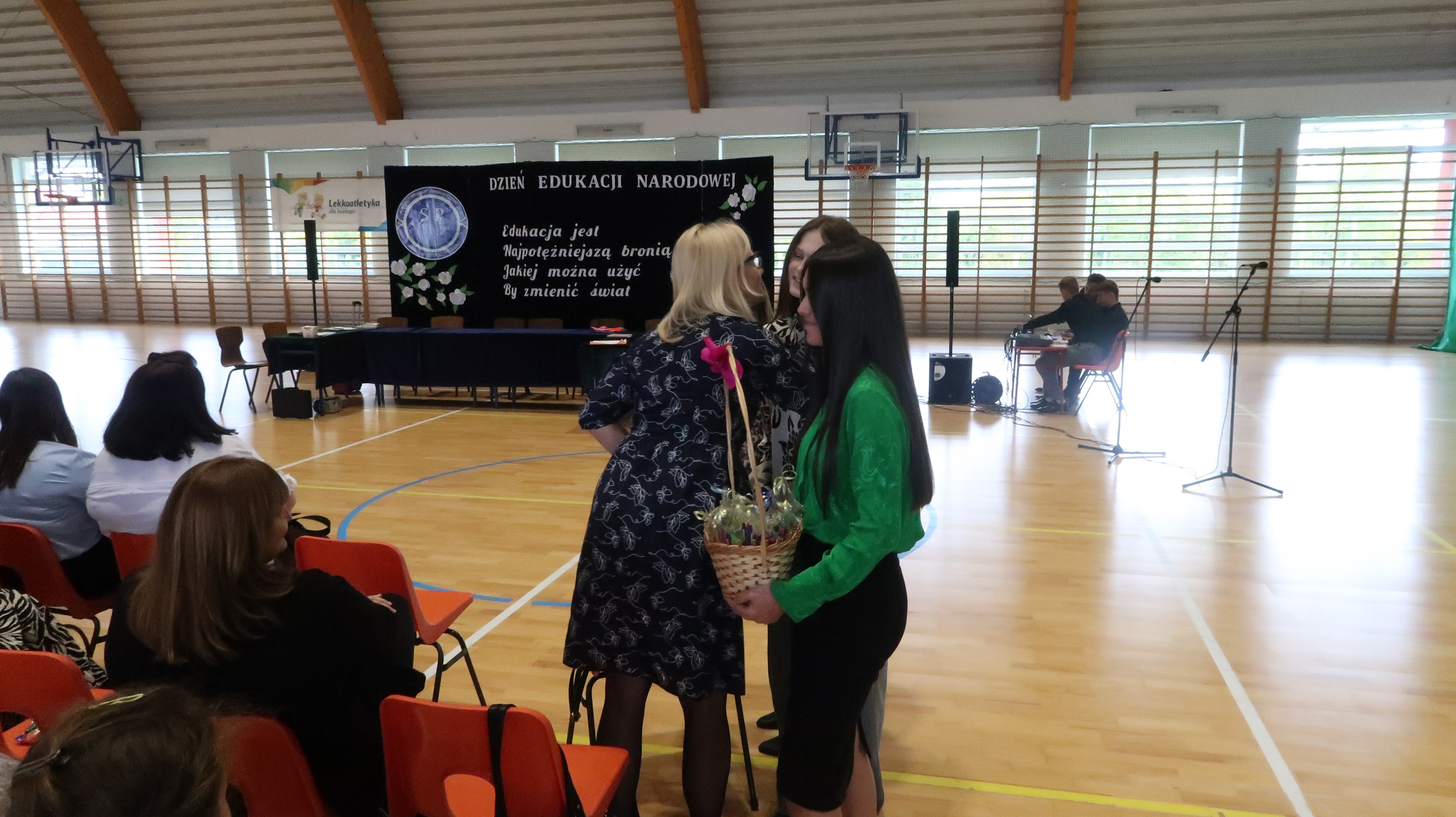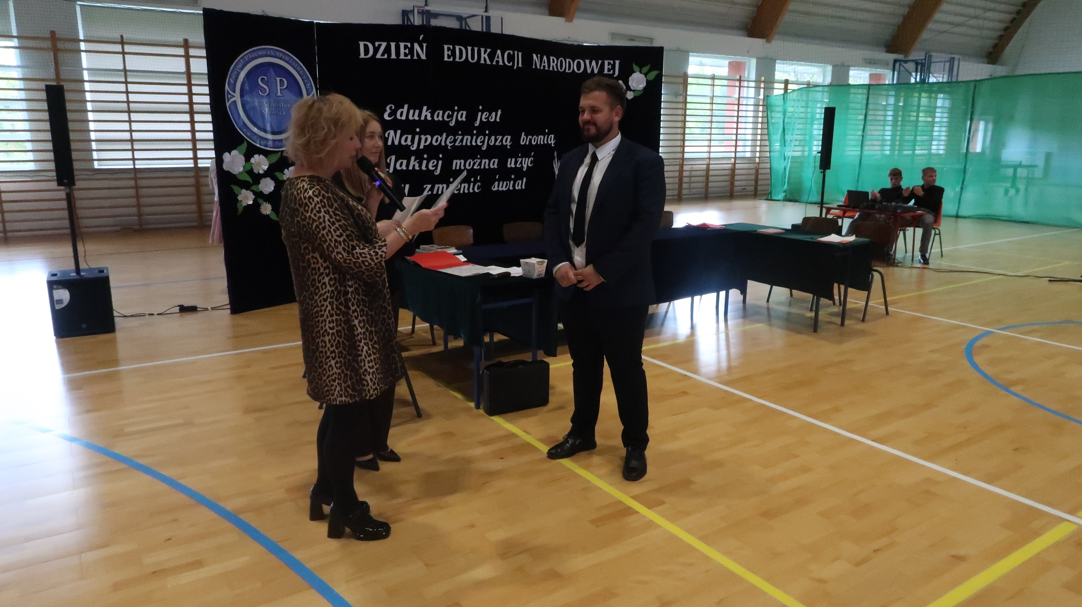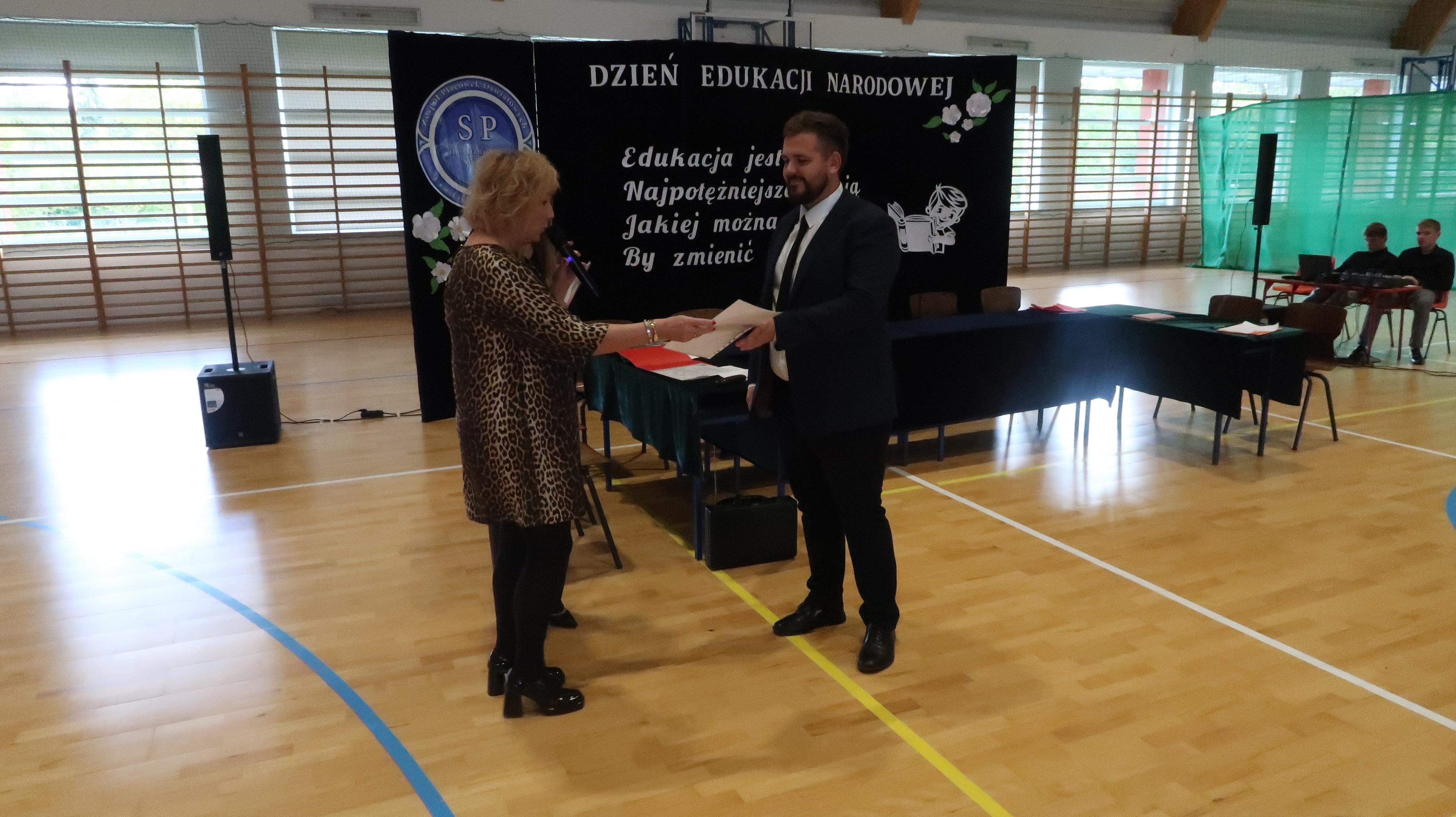 W poniedziałek, 13 października, świętowaliśmy Dzień Edukacji Narodowej. W naszej szkolnej uroczystości uczestniczyli p. Anna Bąkowska – sekretarz Gminy Leśna Podlaska, p. Bożena Abramowicz – kierownik Gminnej Biblioteki Publicznej w Leśnej Podlaskiej, p. Agata Dunajko – przewodnicząca Rady Rodziców Szkoły Podstawowej w Leśnej Podlaskiej, p. Barbara Horbowiec – zastępca przewodniczącej Rady Rodziców, dyrekcja, nauczyciele, uczniowie, pracownicy szkoły oraz rodzice.