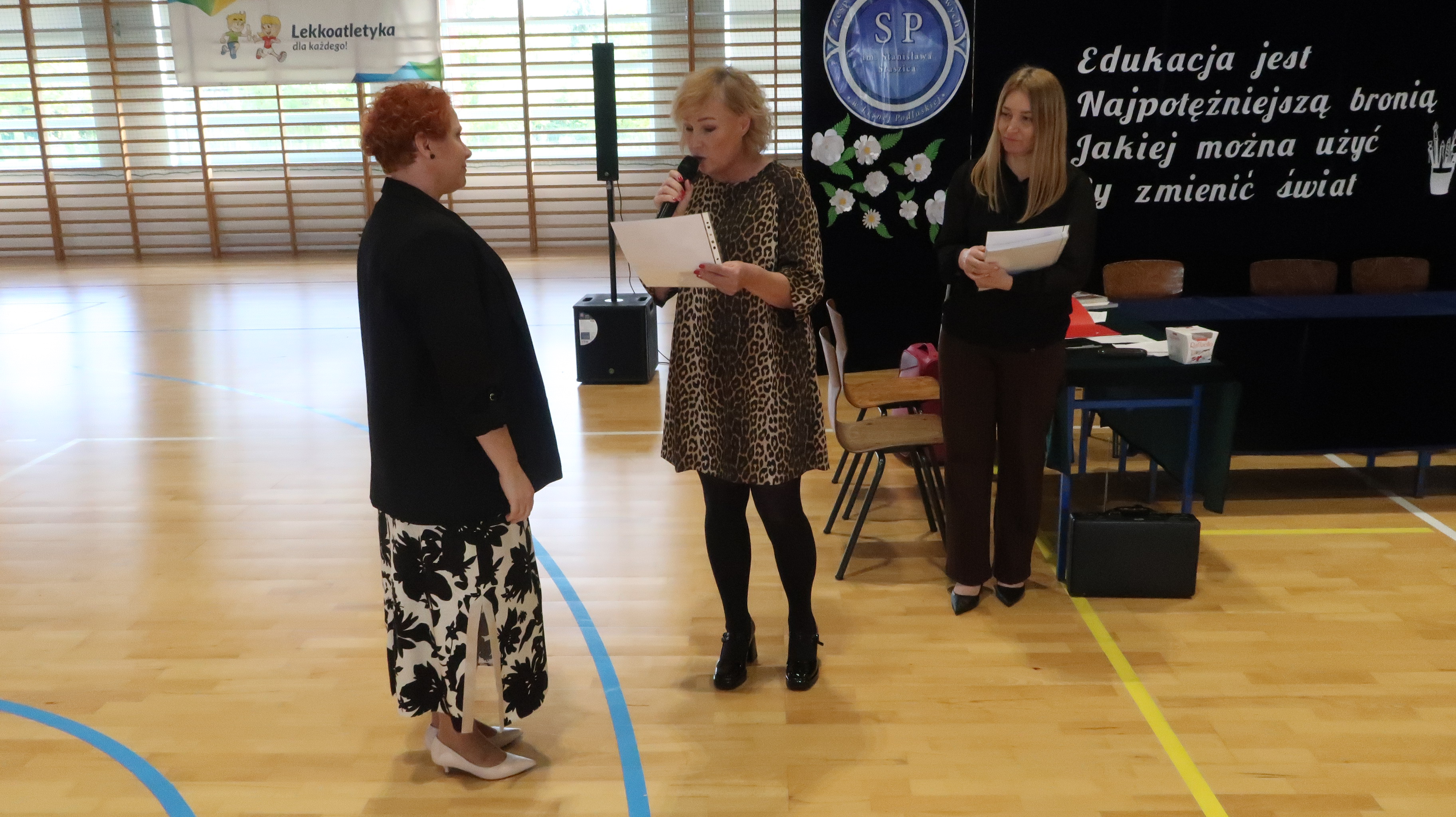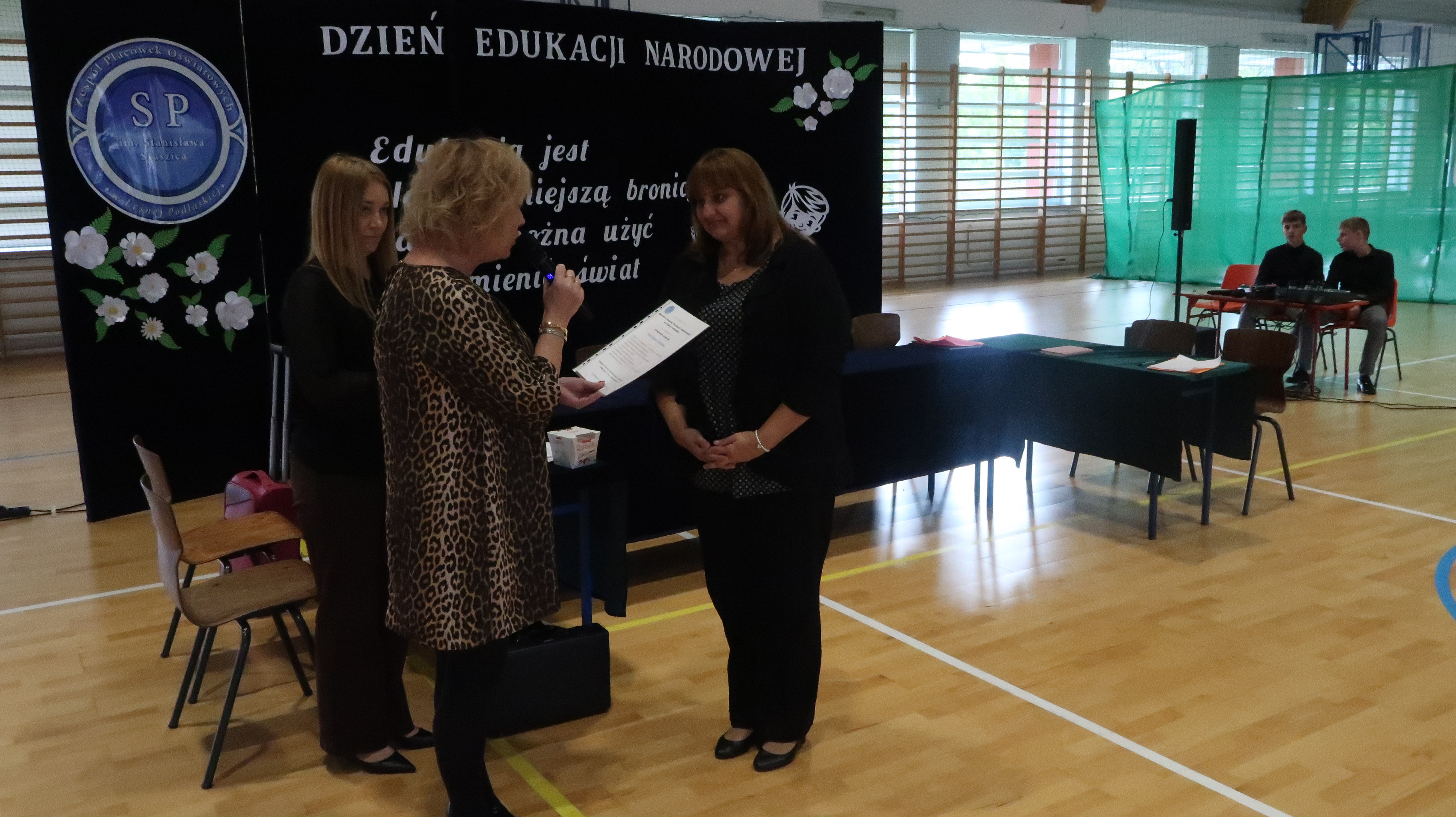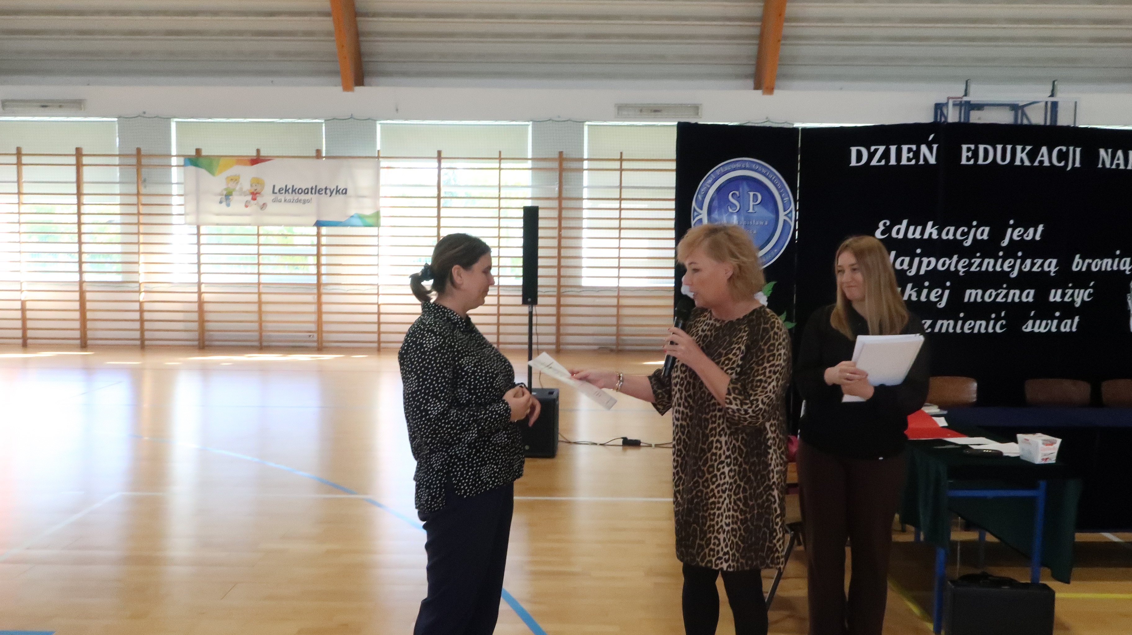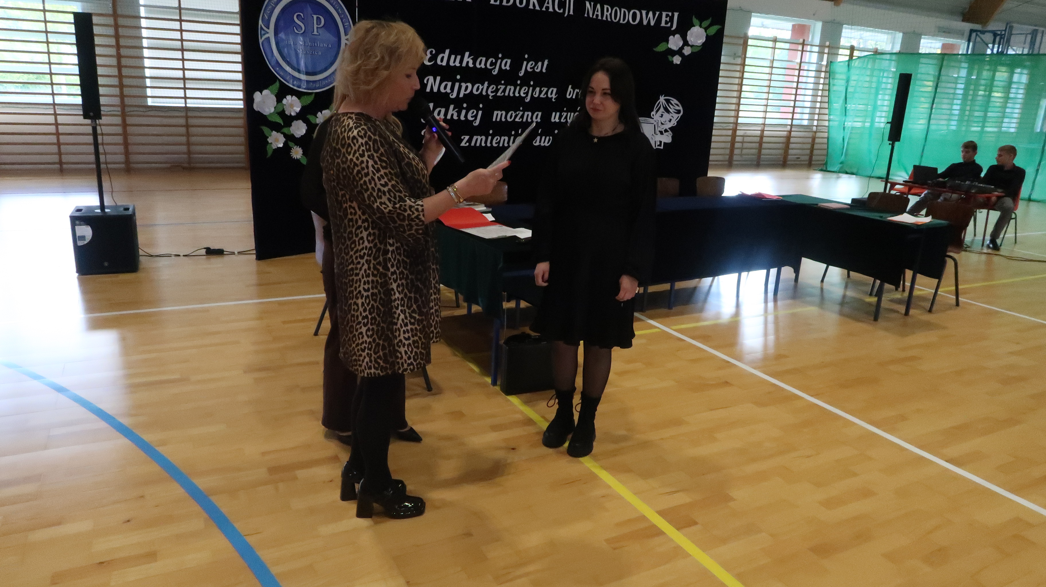 W poniedziałek, 13 października, świętowaliśmy Dzień Edukacji Narodowej. W naszej szkolnej uroczystości uczestniczyli p. Anna Bąkowska – sekretarz Gminy Leśna Podlaska, p. Bożena Abramowicz – kierownik Gminnej Biblioteki Publicznej w Leśnej Podlaskiej, p. Agata Dunajko – przewodnicząca Rady Rodziców Szkoły Podstawowej w Leśnej Podlaskiej, p. Barbara Horbowiec – zastępca przewodniczącej Rady Rodziców, dyrekcja, nauczyciele, uczniowie, pracownicy szkoły oraz rodzice.