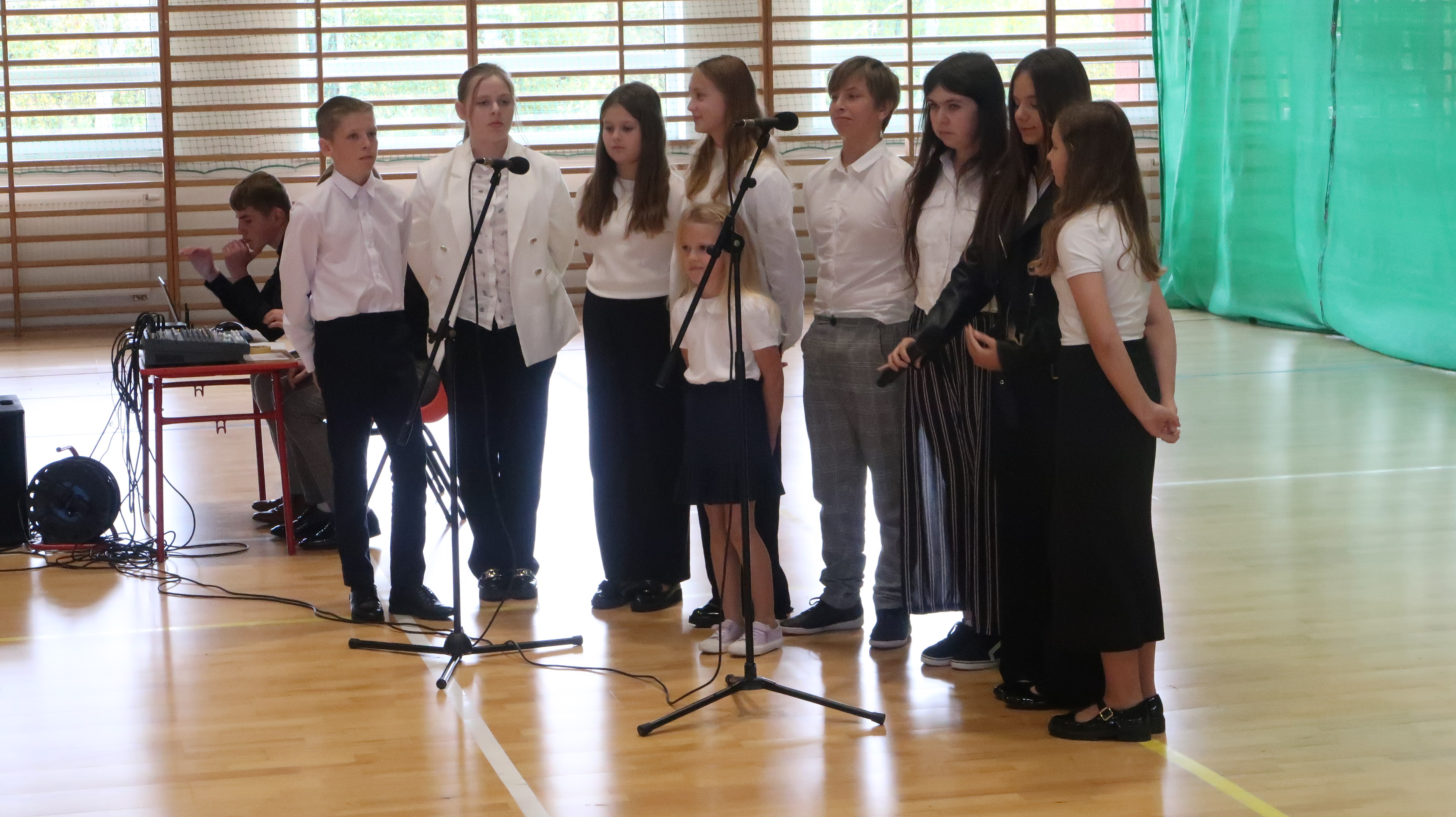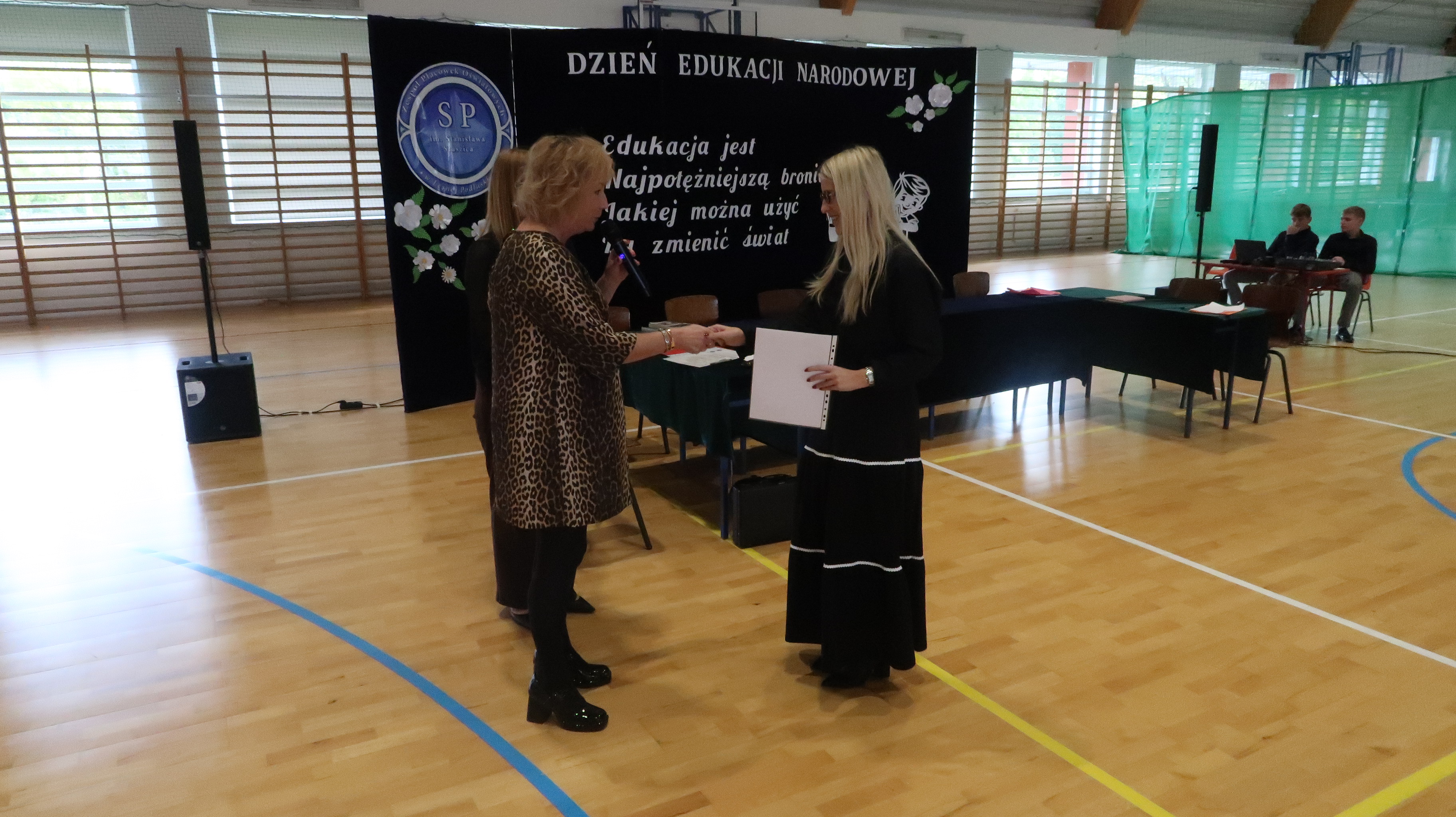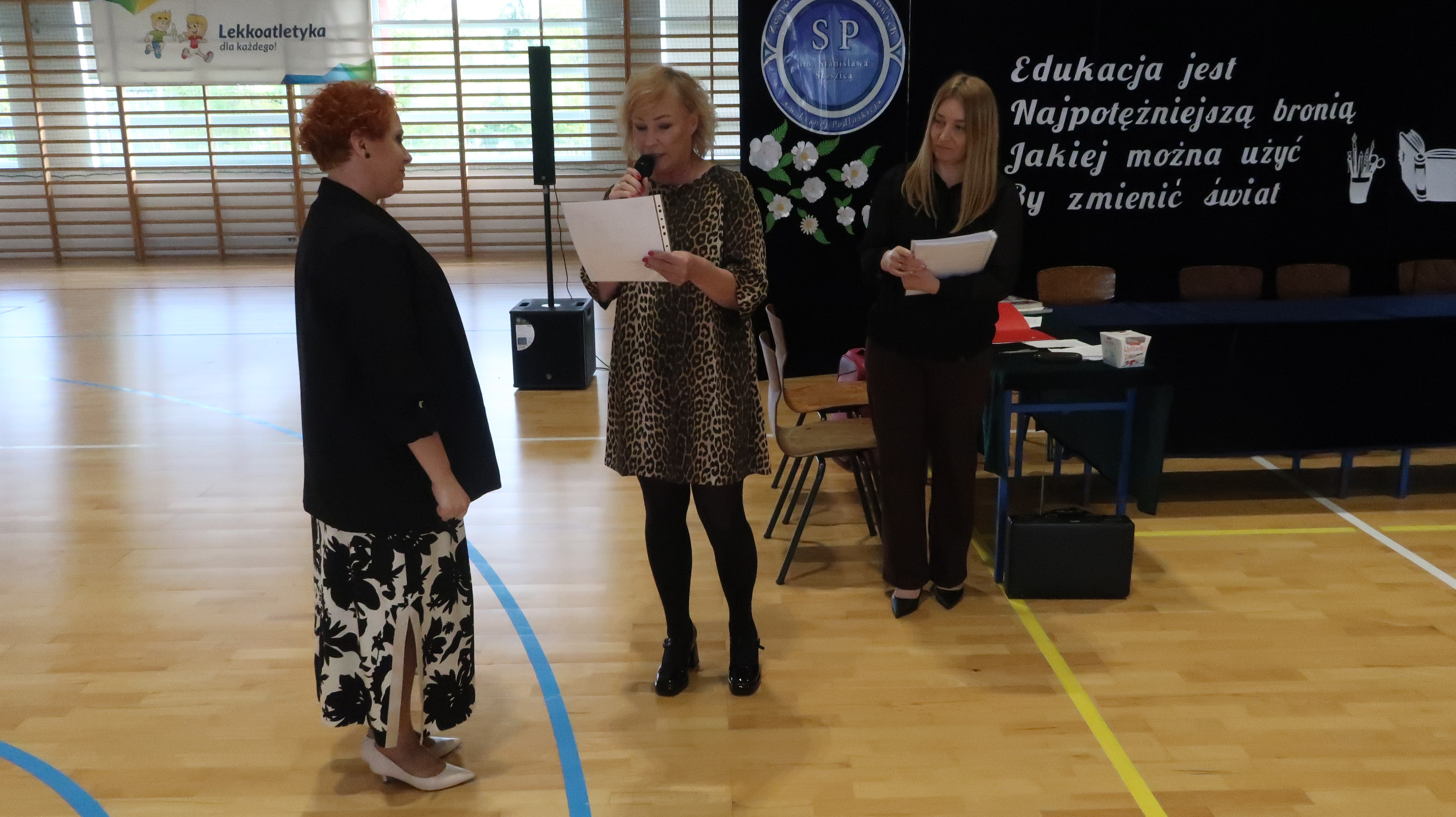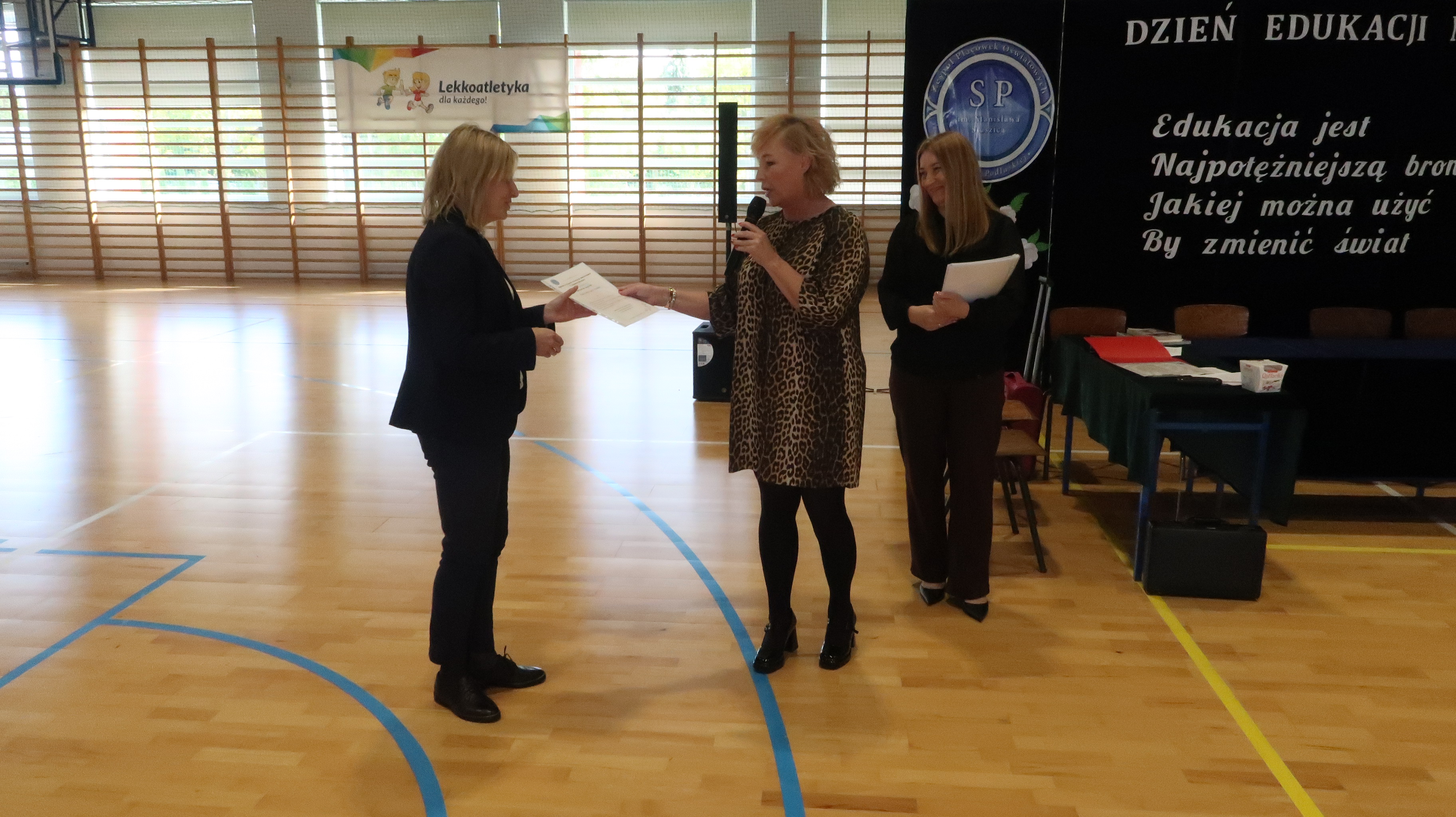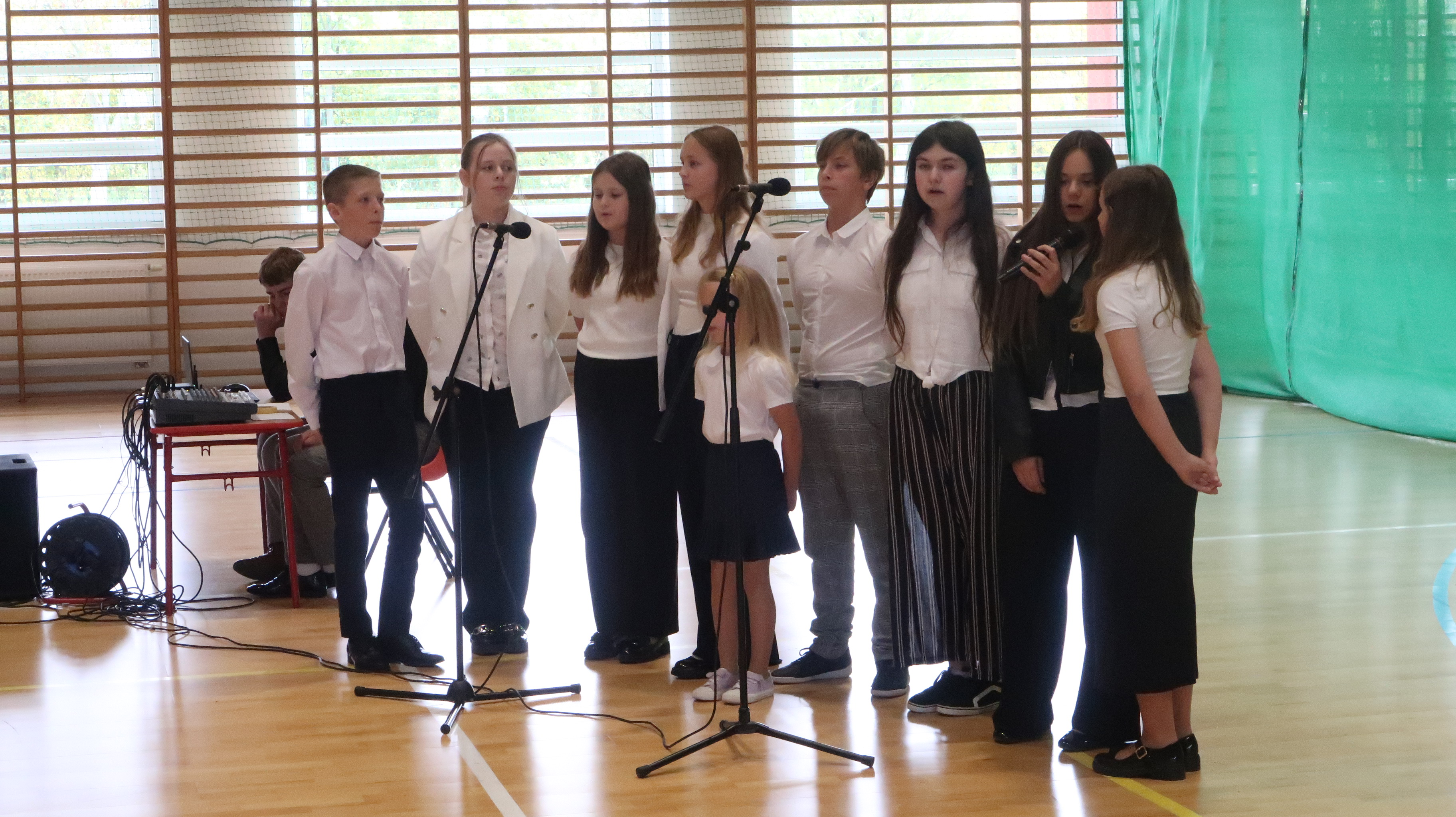 W poniedziałek, 13 października, świętowaliśmy Dzień Edukacji Narodowej. W naszej szkolnej uroczystości uczestniczyli p. Anna Bąkowska – sekretarz Gminy Leśna Podlaska, p. Bożena Abramowicz – kierownik Gminnej Biblioteki Publicznej w Leśnej Podlaskiej, p. Agata Dunajko – przewodnicząca Rady Rodziców Szkoły Podstawowej w Leśnej Podlaskiej, p. Barbara Horbowiec – zastępca przewodniczącej Rady Rodziców, dyrekcja, nauczyciele, uczniowie, pracownicy szkoły oraz rodzice.