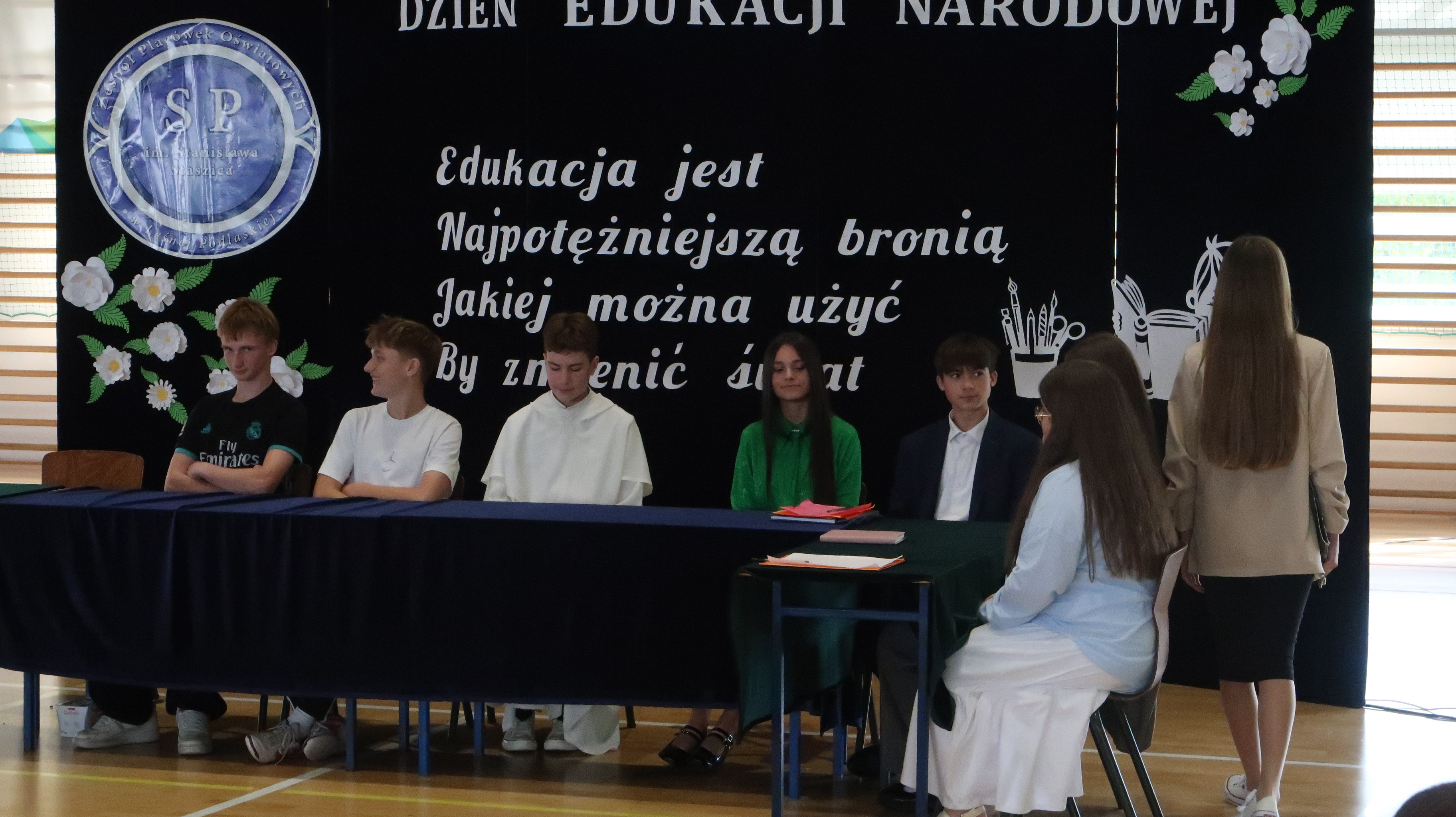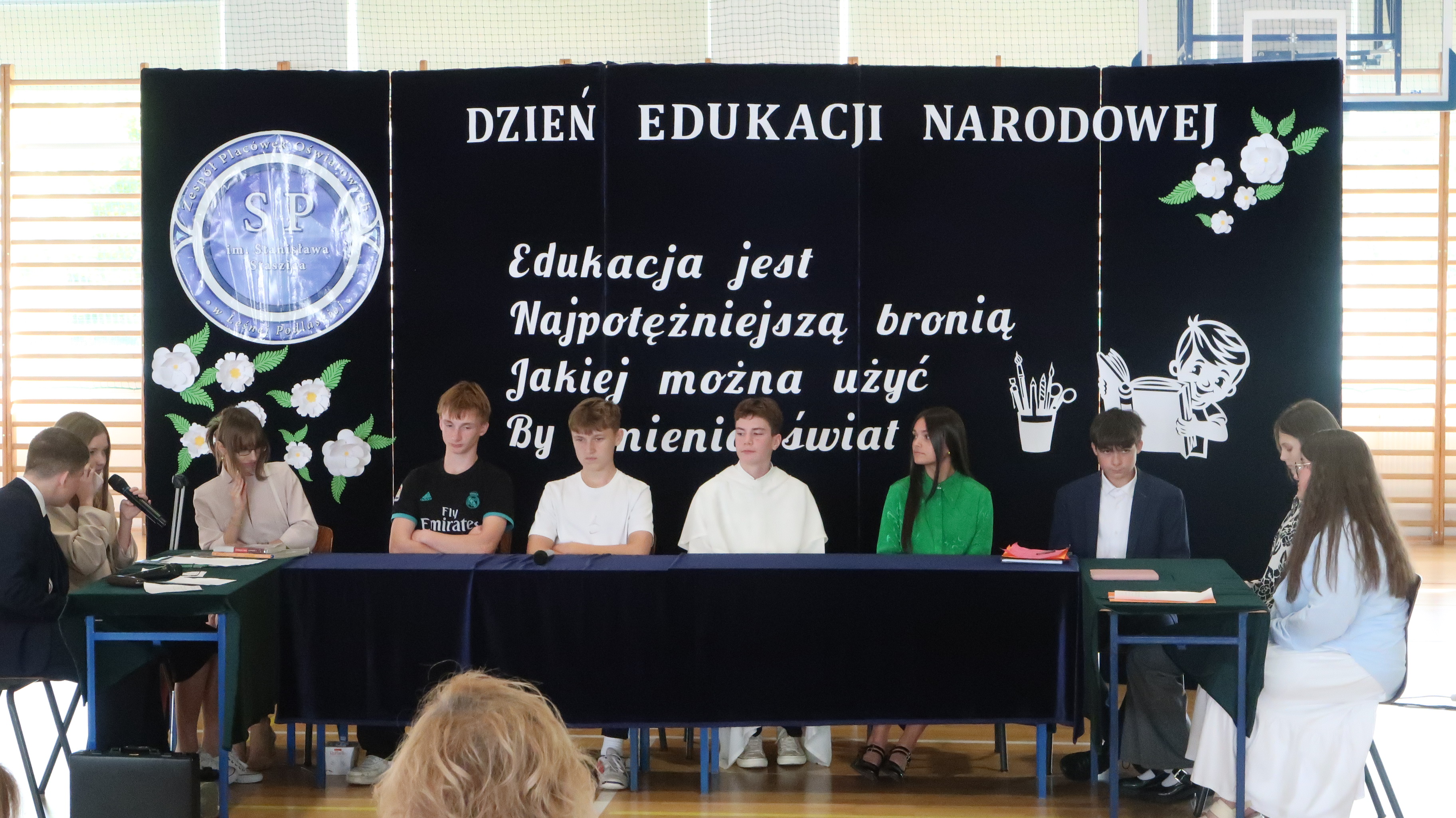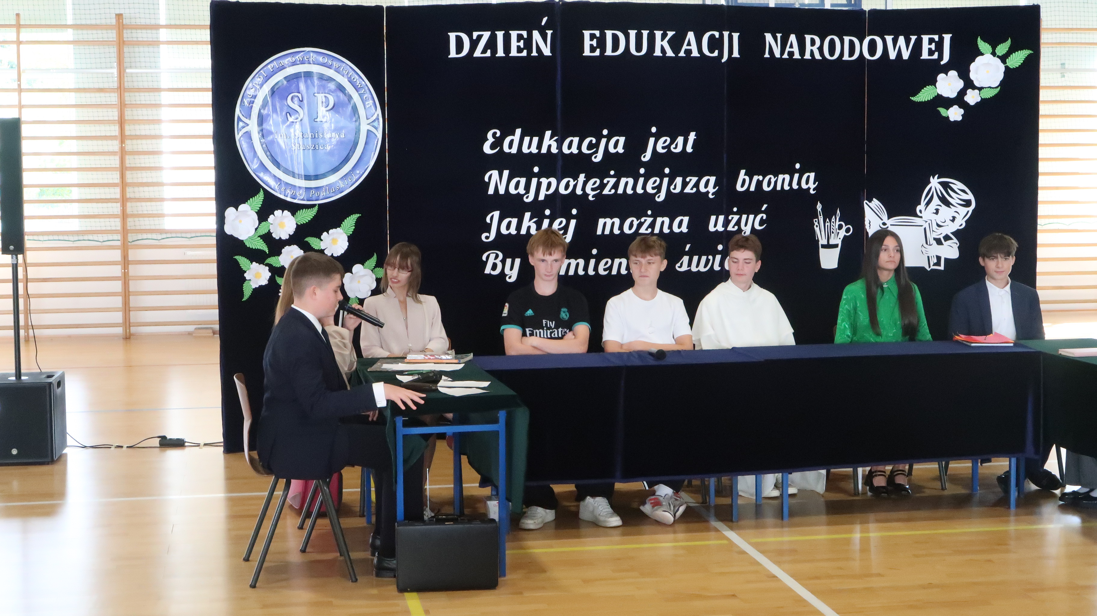 Nieodłącznym elementem każdego szkolnego święta jest akademia. Tegoroczna składała się z dwóch części. Pierwszą część można porównać do pierwszorzędnego spektaklu komediowego. Scenariusz napisała szkolna codzienność – akcja rozegrała się bowiem w czasie rady pedagogicznej. Postaci wykreowane przez występujących uczniów okazały się naprawdę zabawne i nieszabkonowe, publiczność nie miała co do tego żadnych wątpliwości, często nagradzając brawami osoby występujące w przedstawieniu.