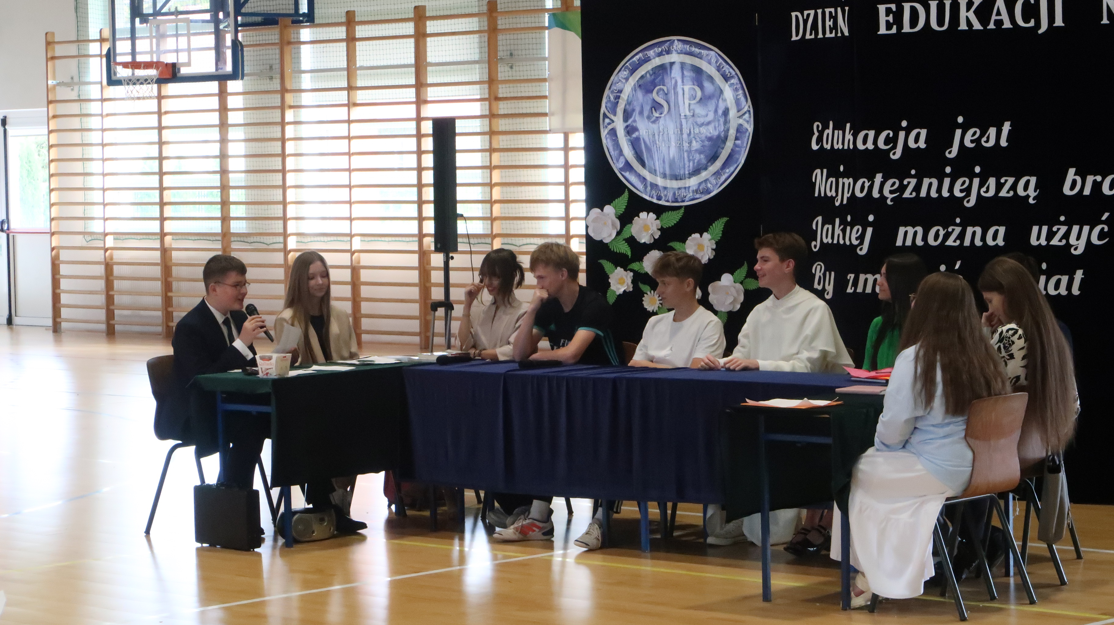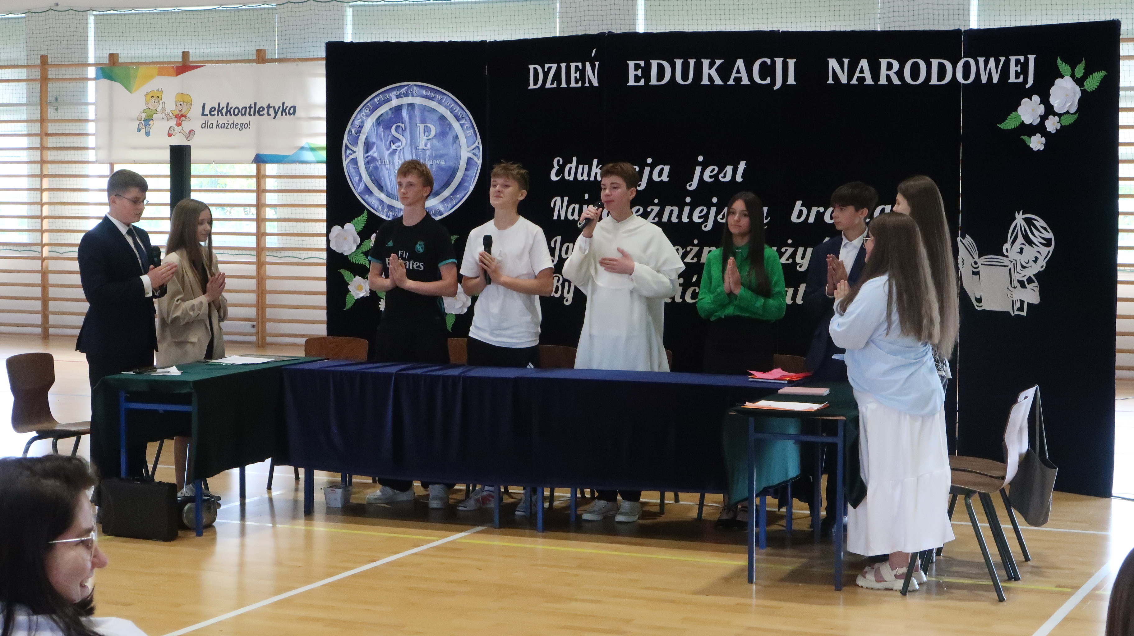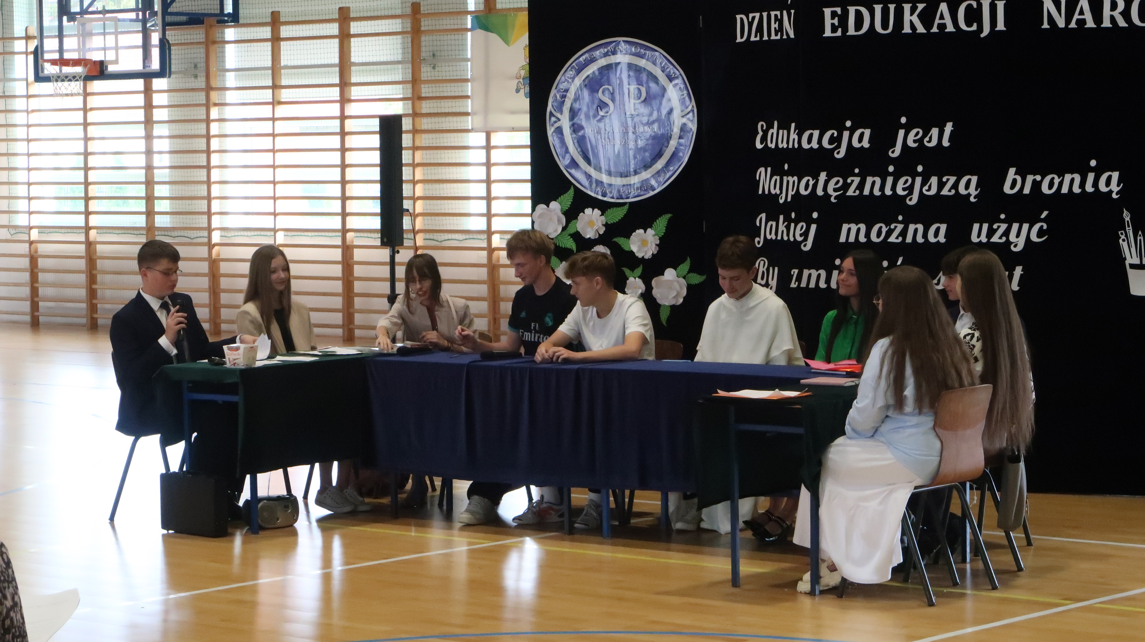 Nieodłącznym elementem każdego szkolnego święta jest akademia. Tegoroczna składała się z dwóch części. Pierwszą część można porównać do pierwszorzędnego spektaklu komediowego. Scenariusz napisała szkolna codzienność – akcja rozegrała się bowiem w czasie rady pedagogicznej. Postaci wykreowane przez występujących uczniów okazały się naprawdę zabawne i nieszabkonowe, publiczność nie miała co do tego żadnych wątpliwości, często nagradzając brawami osoby występujące w przedstawieniu.