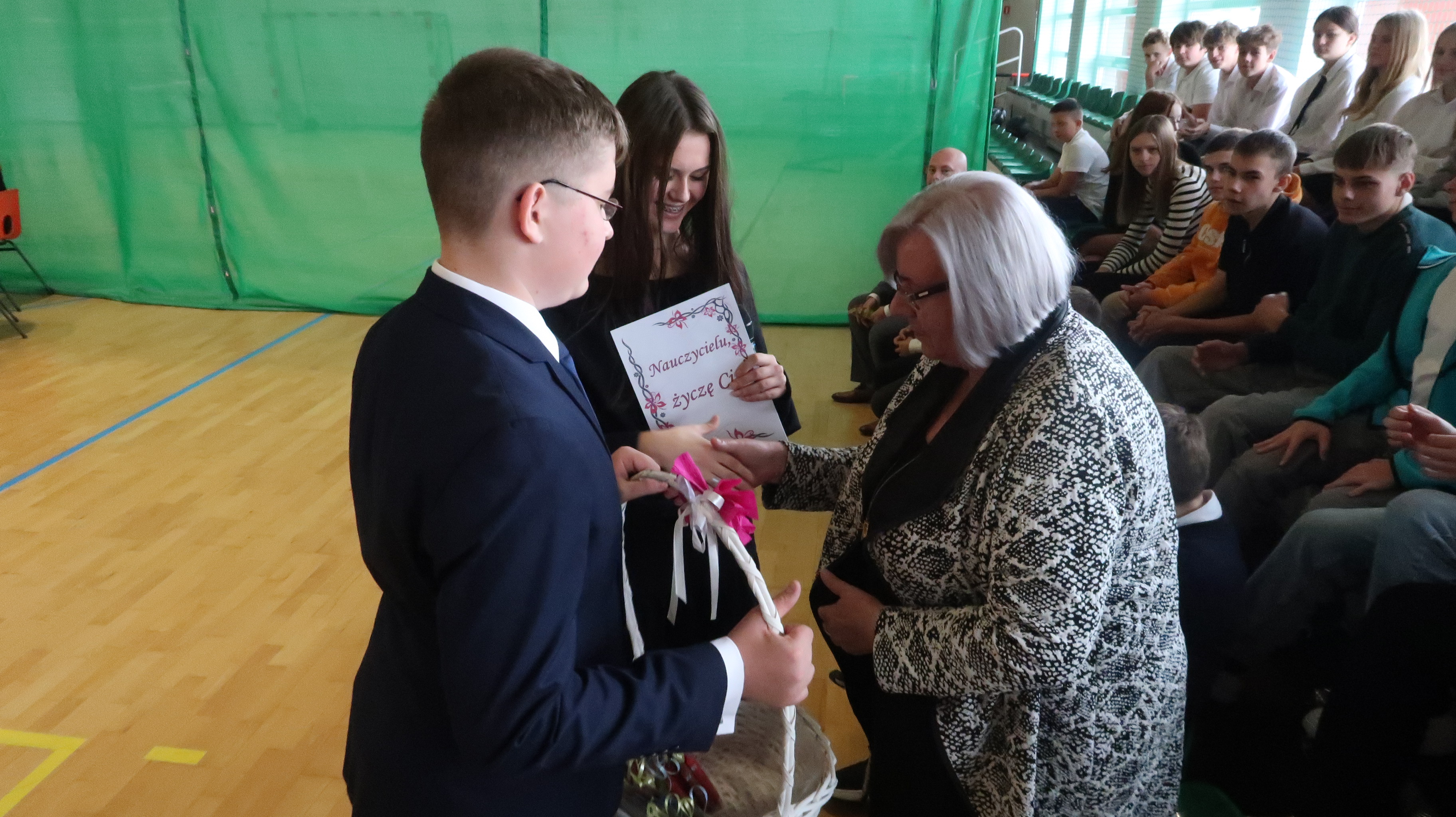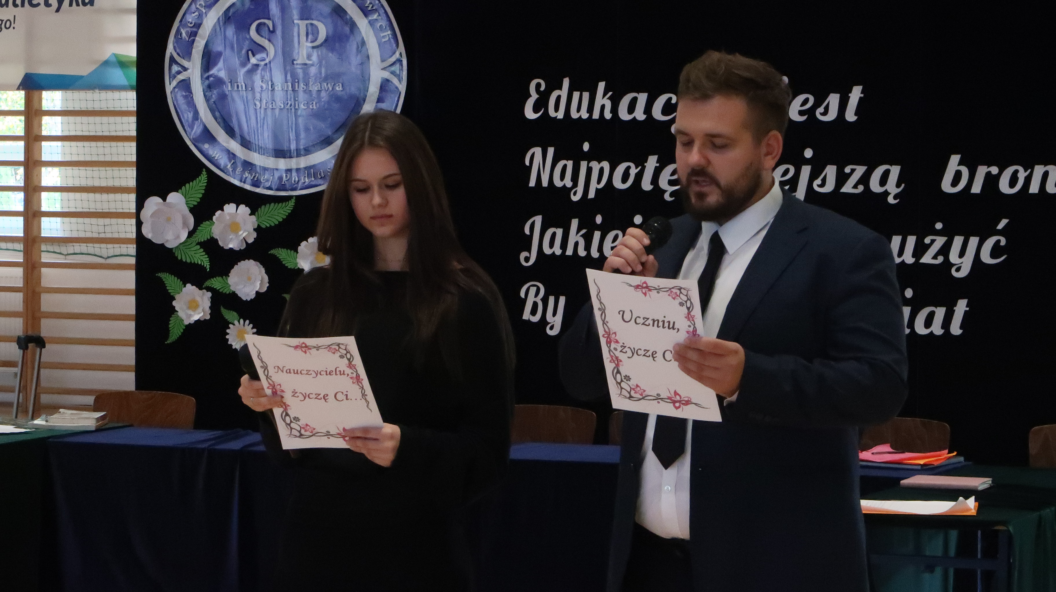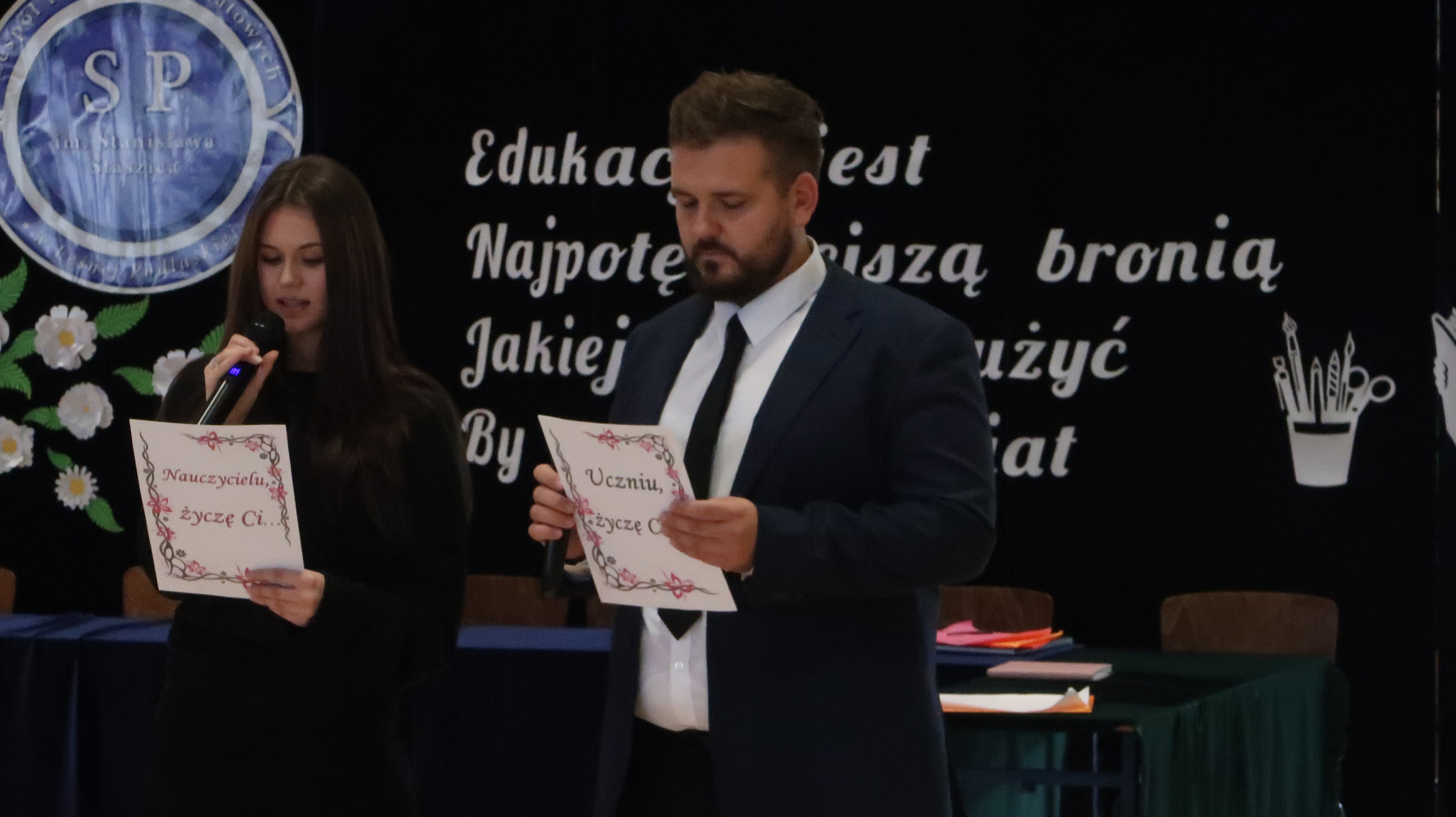 Druga część akademii okazała się refleksyjna i zmieniła nastrój, poruszając nasze myśli oraz wzruszając. Składała się z wyjątkowo przemyślanych życzeń kierowanych przez Ucznia do Nauczyciela oraz przez Nauczyciela do Ucznia. W roli Ucznia wystąpiła Kinga Zaśkiewicz, natomiast grono pedagogiczne reprezentował p. Sylwester Suwała. Akademię zakończył występ chóru szkolnego, który zaśpiewał piosenkę Marka Grechuty „Korowód“.