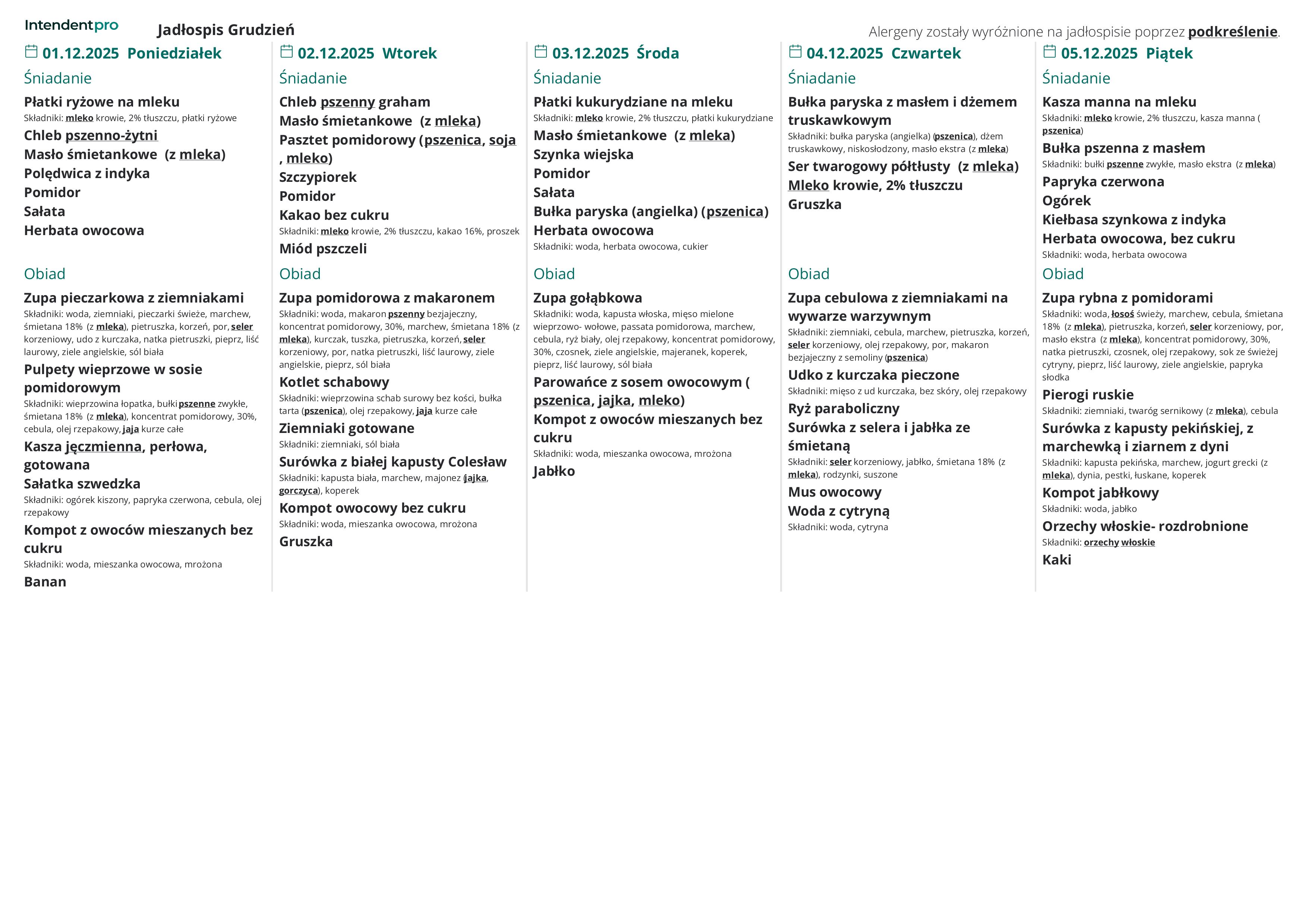 Za posiłki w grudniu 2025 opłata wynosi: