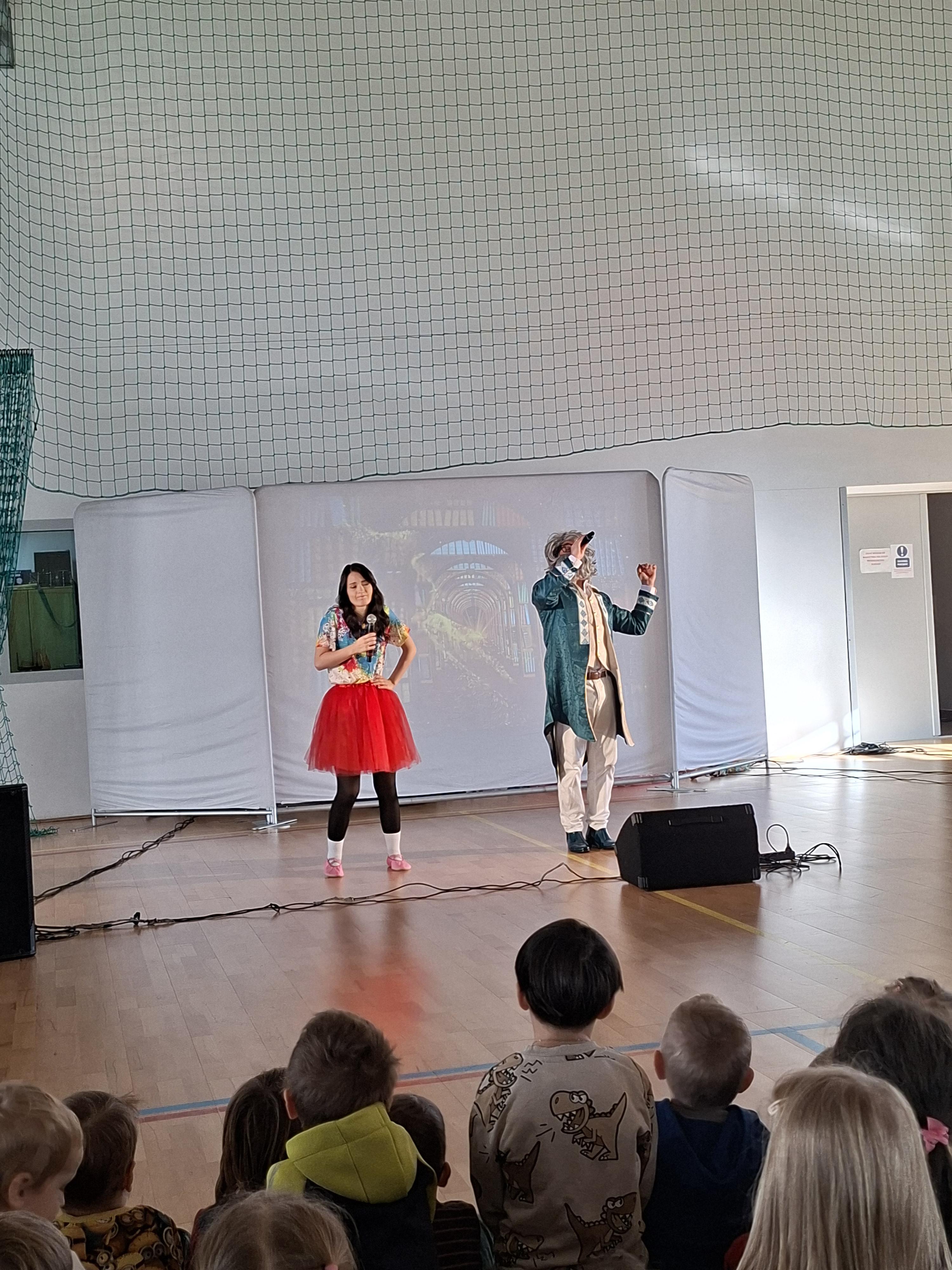Aktorzy przedstawili widowisko, które zachwyciło wszystkie dzieci z grup przeszkolnych. Zmieniająca się sceneria, kostiumy i piękna muzyka była okazją do przeniesienia się w świat bajek. Zaśpiewane przez artystów najpopularniejsze przeboje z filmu to: "Kaczka dziwaczka", "Leń", "Zoo", "Meluzyna", "Na wyspoach Bergamutach", "Psie smutki" oraz "Witajcie w naszej bajce".