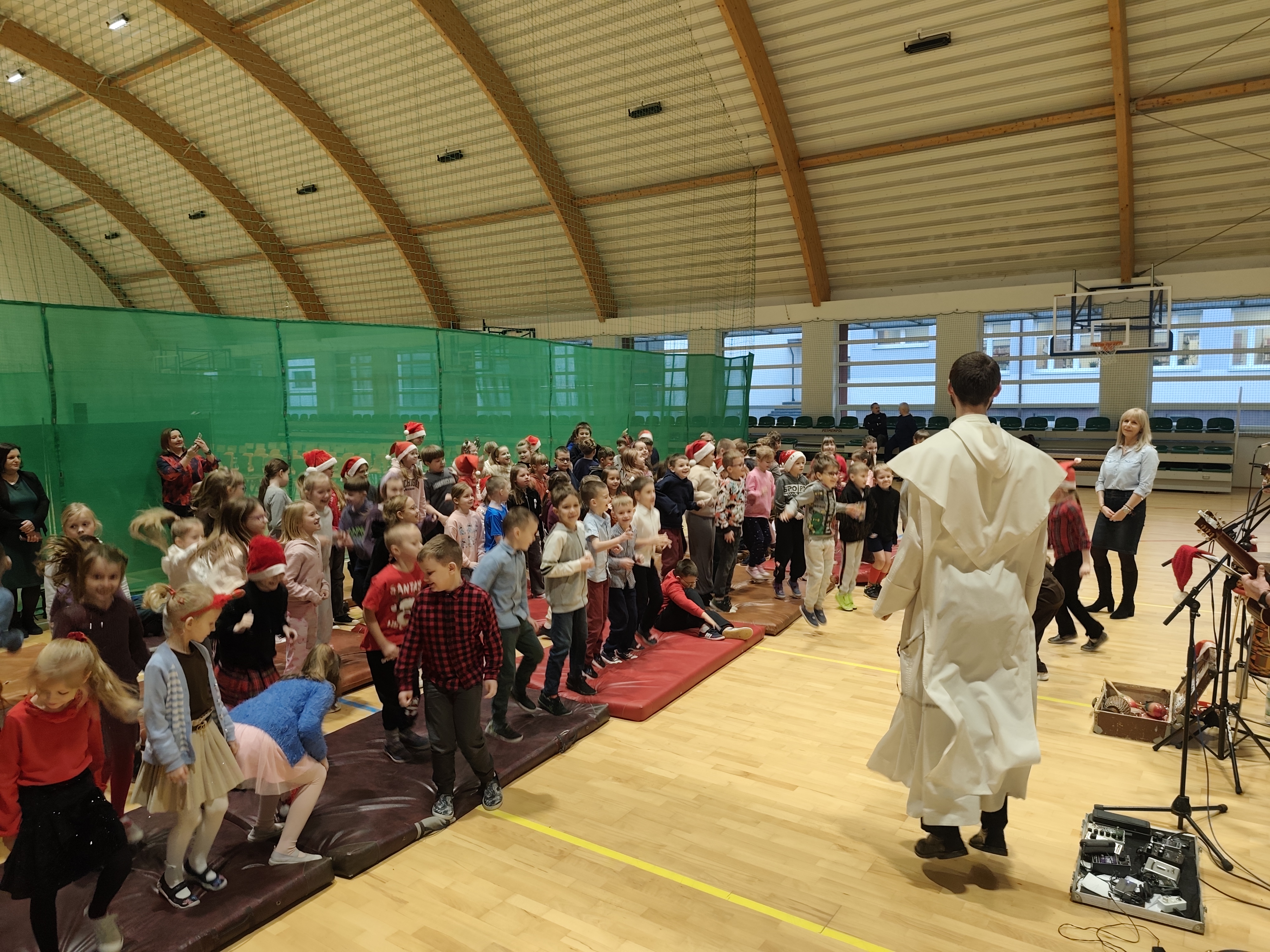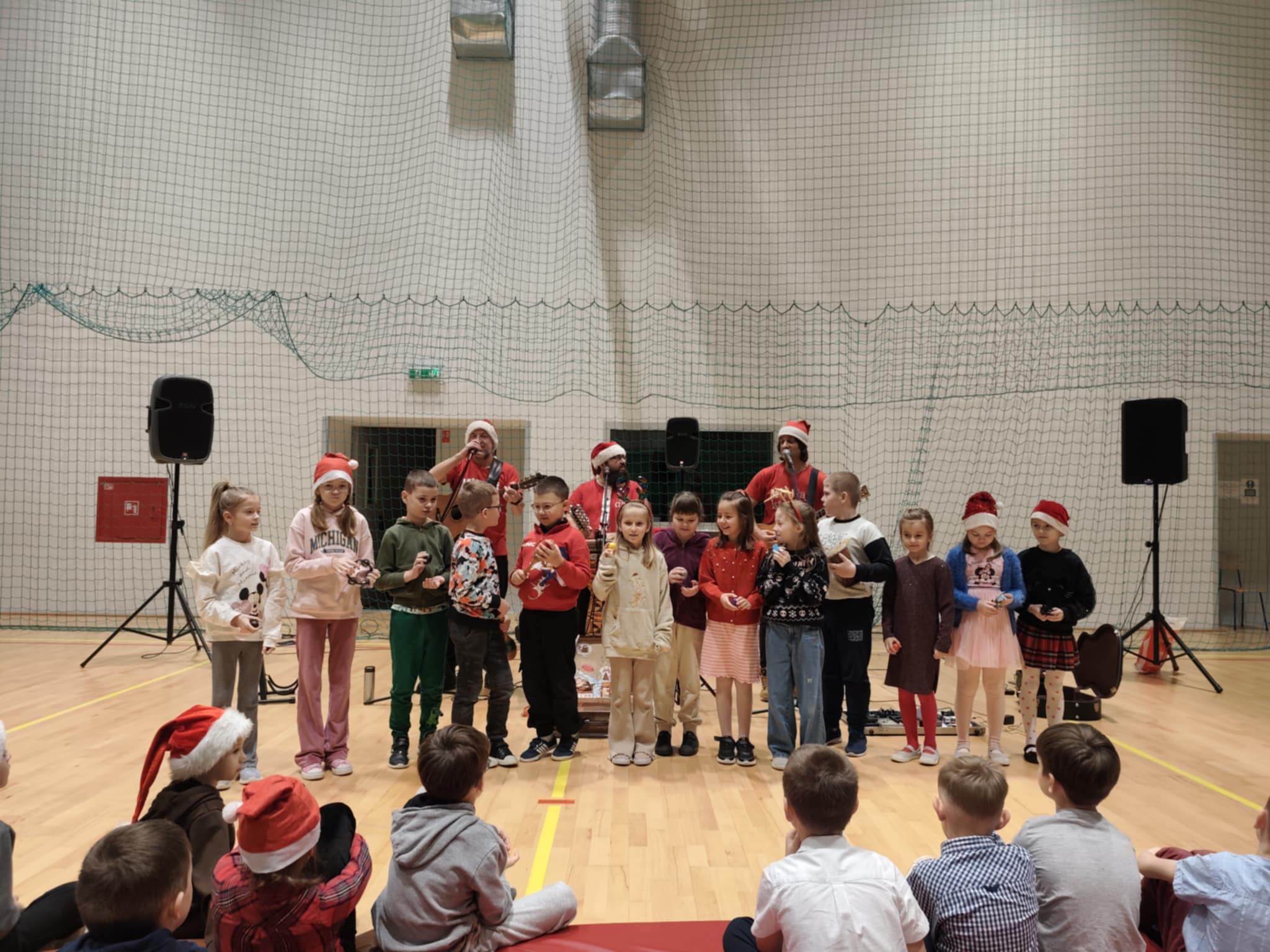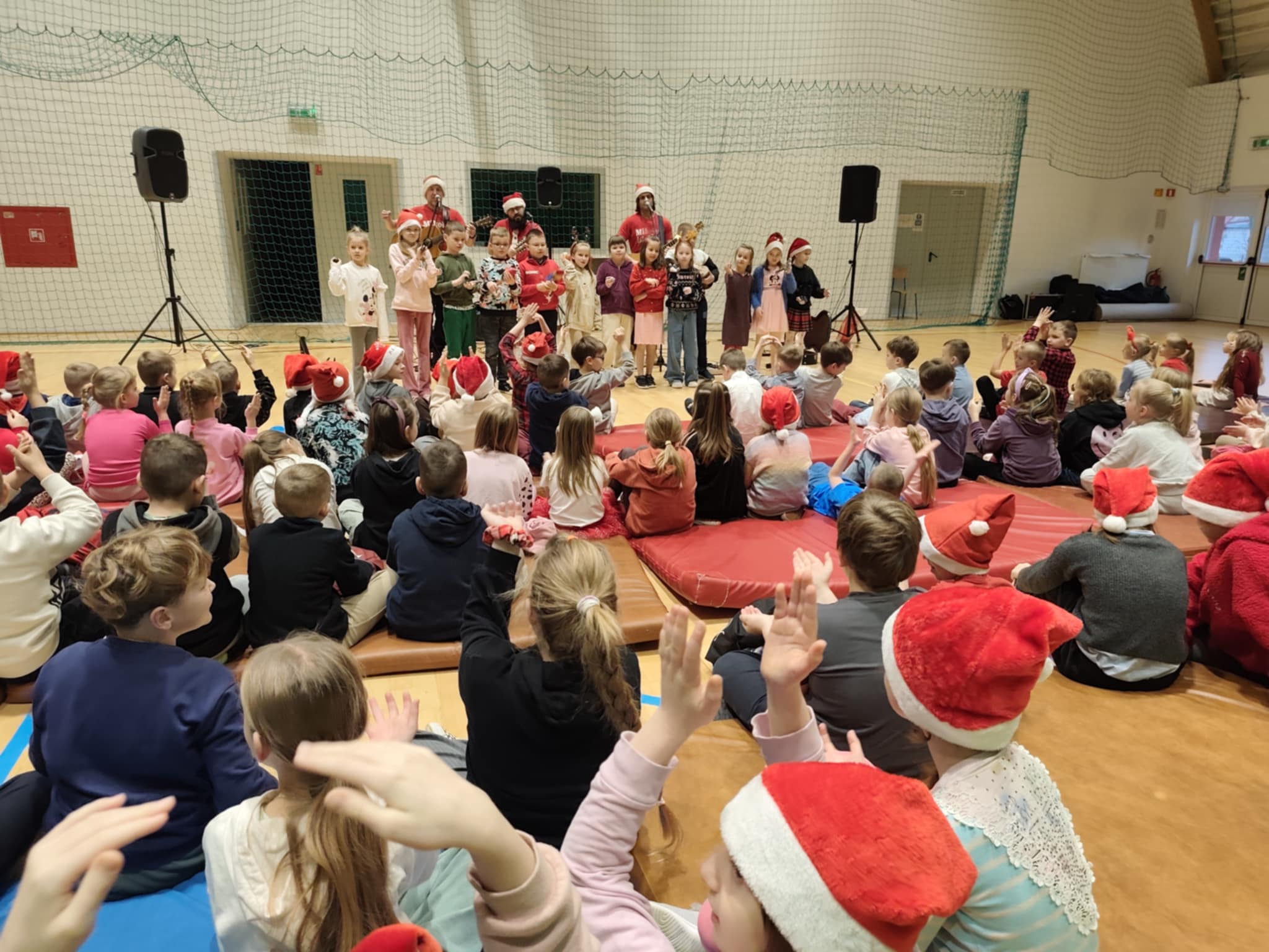 Dziś w naszej szkole odbył się niezwykły koncert zespołu Mała Orkiestra Dni Naszych! Artyści zaprezentowali piosenki świąteczne, dzięki którym dzieci mogły poczuć klimat zbliżających się Świąt Bożego Narodzenia. Pojawiły się także utwory, które w ciekawy i przystępny sposób uczyły naszych uczniów o ważnych życiowych wartościach i zagrożeniach, z którymi mogą się spotkać na co dzień. Muzycy poprzez swoje piosenki opowiedzieli o radzeniu sobie z trudnymi emocjami oraz o tym, jak ważna jest wzajemna pomoc i wsparcie. Wszystkie dzieciaki aktywnie włączały się do zabawy – śpiewały, tańczyły oraz grały na instrumentach. Była to niezwykła lekcja pełna pozytywnej energii i mądrych przesłań!