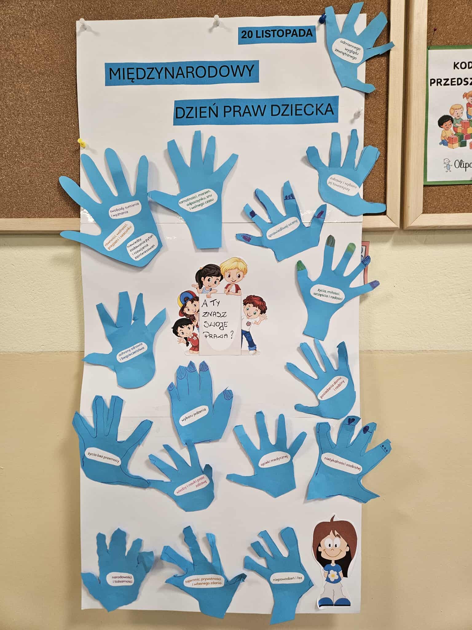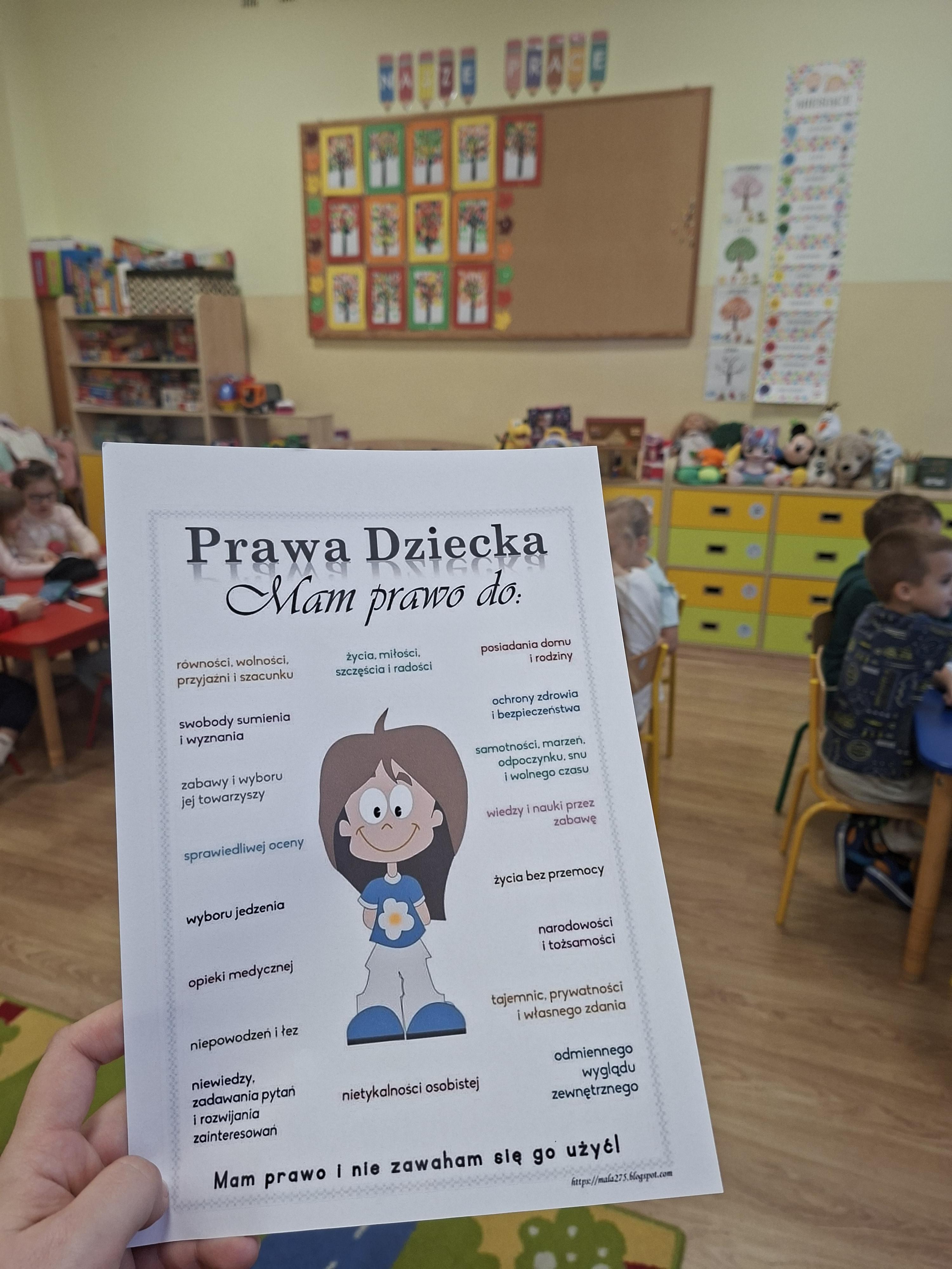 21 listopada to wyjątkowy dzień - Międzynarodowy Dzień Praw Dziecka - obchodzony w rocznicę uchwalenia Konwencji Prawach Dziecka. W naszych oddziałach przez cały dzień 5 i 6-latki zdobywały wiedzę pod hasłem "Prawa Dziecka". Przeprowadzono z dziećmi rozmowy na temat przysługujących im praw oraz obowiązków. Wychowankowie zdobyli szereg umiejętności i wartości związanych z rozumieniem praw dziecka. Wszyscy aktywnie uczestniczyli w zajęciach.