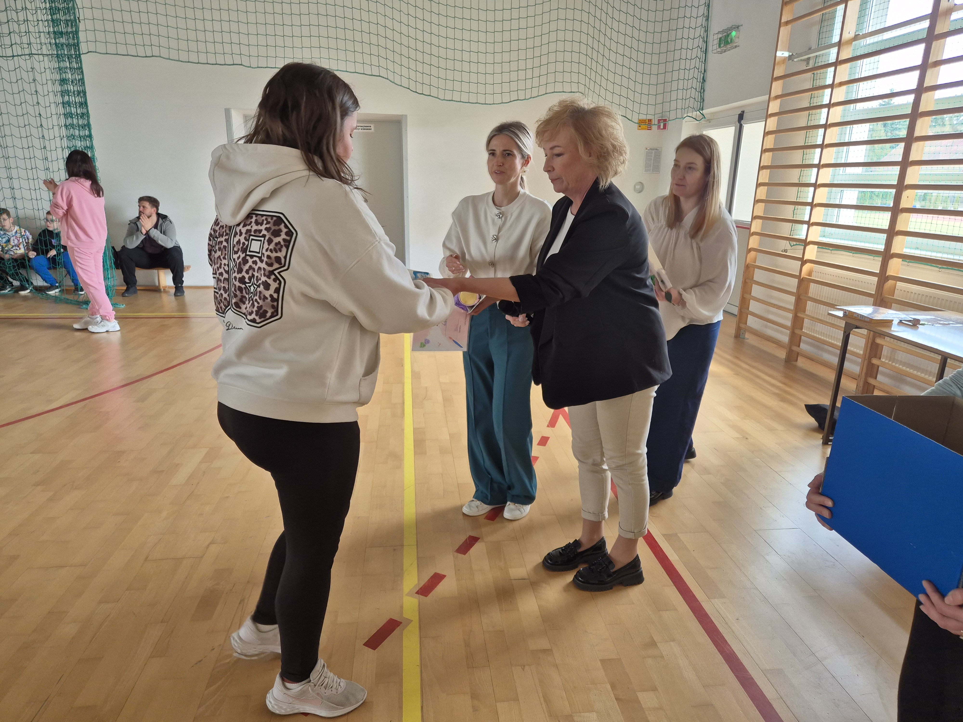 Dyplomy i nagrody wręczały Panie Dyrektor oraz Wicedyrektor, wspólnie z organizatorami poszczególnych konkursów. W swoim wystąpieniu pogratulowały wszystkim uczestnikom wytrwałości i odwagi w podejmowaniu wyzwań, podkreślając, że każdy udział w konkursie jest cennym doświadczeniem i krokiem w stronę dalszego rozwoju.