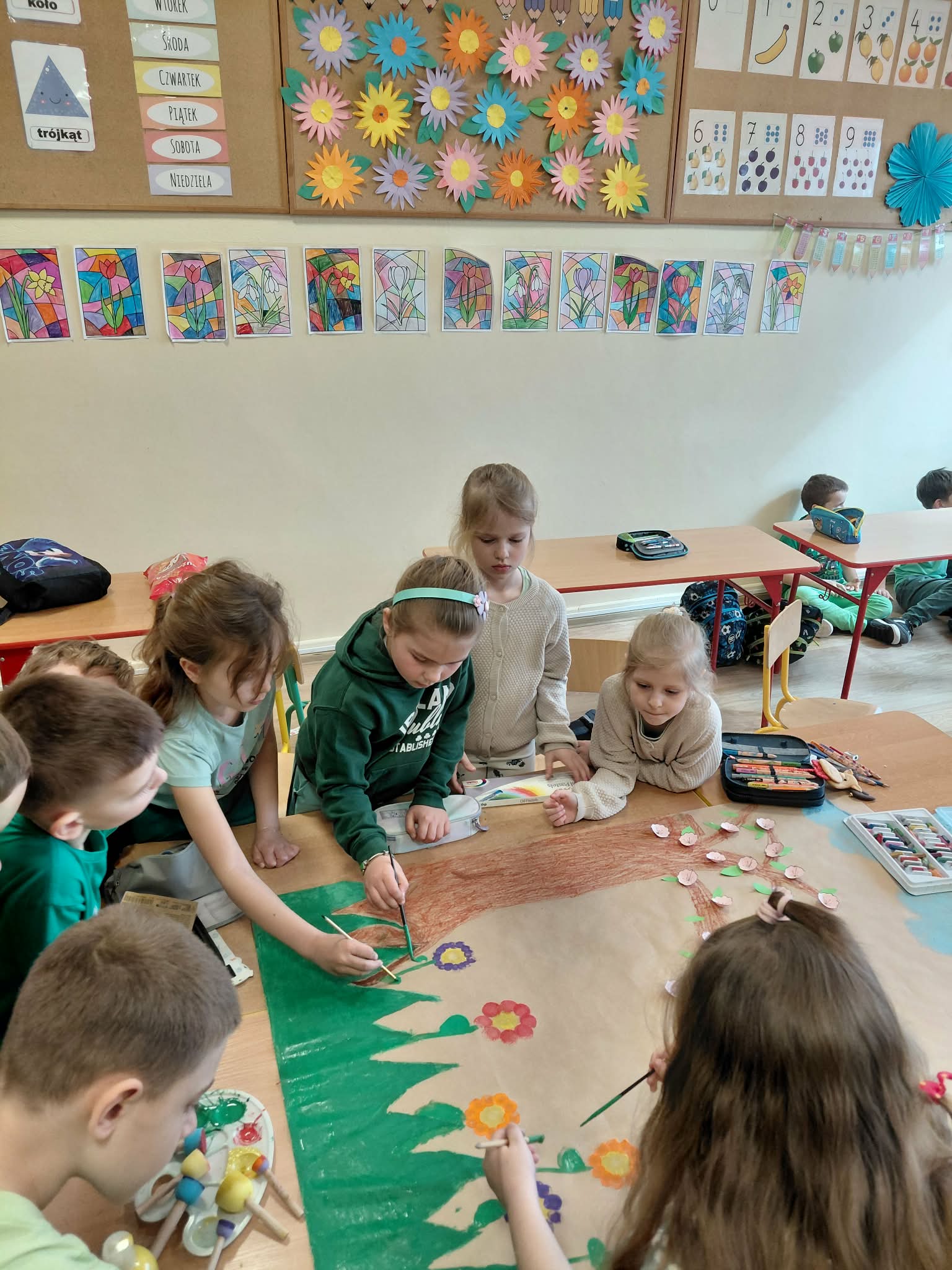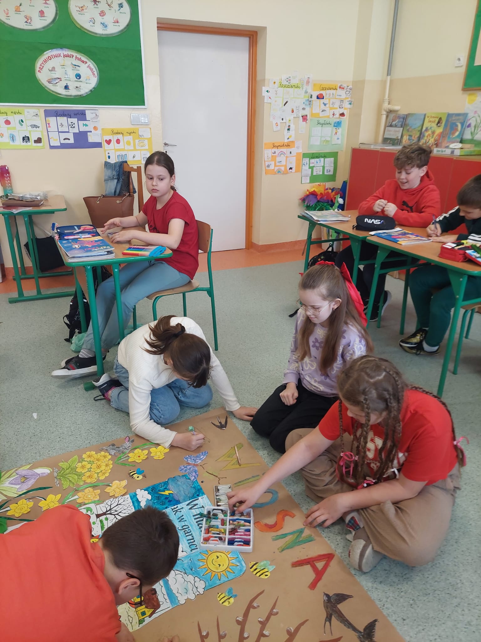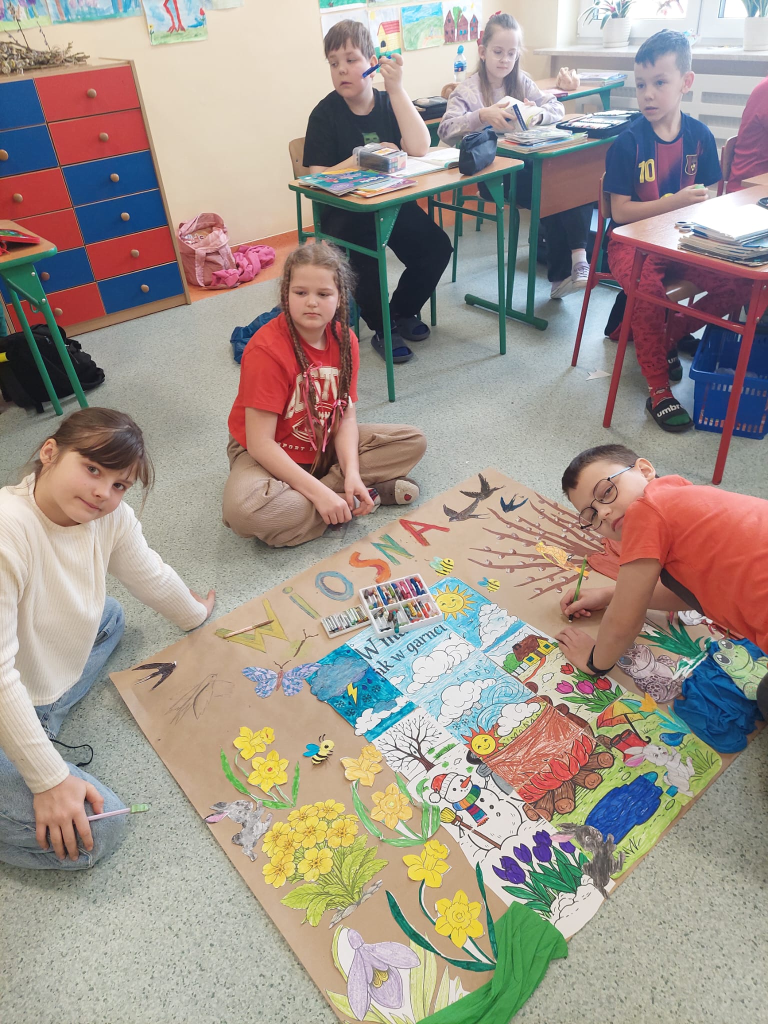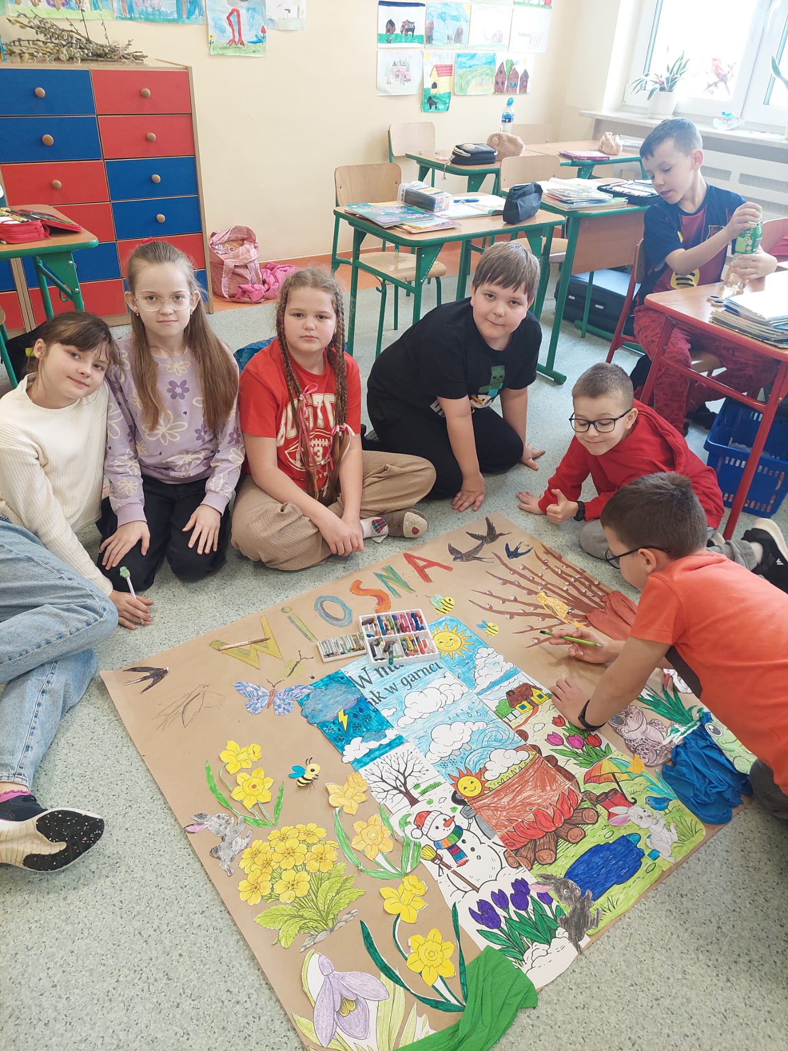 W klasach odbywały się wiosenne zajęcia tematyczne, a ich efektem były barwne plakaty, które ozdobiły szkolne korytarze. To był dzień pełen uśmiechu, dobrej zabawy i wiosennej energii!