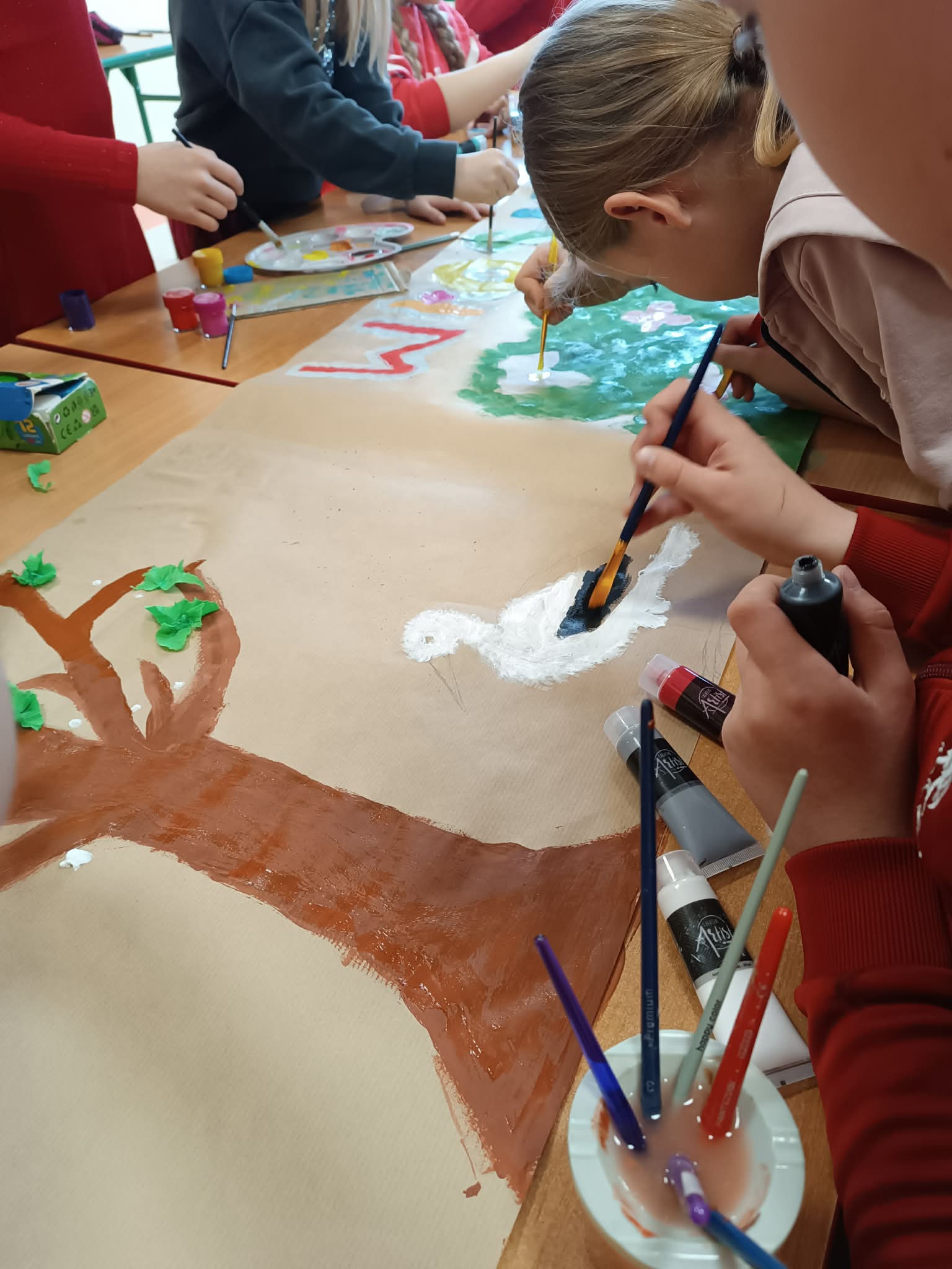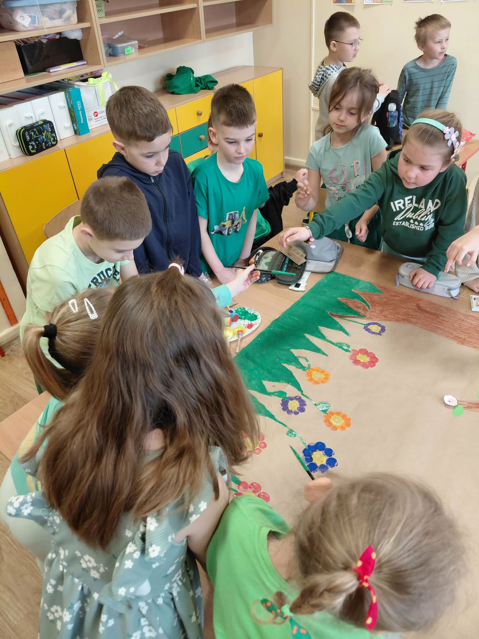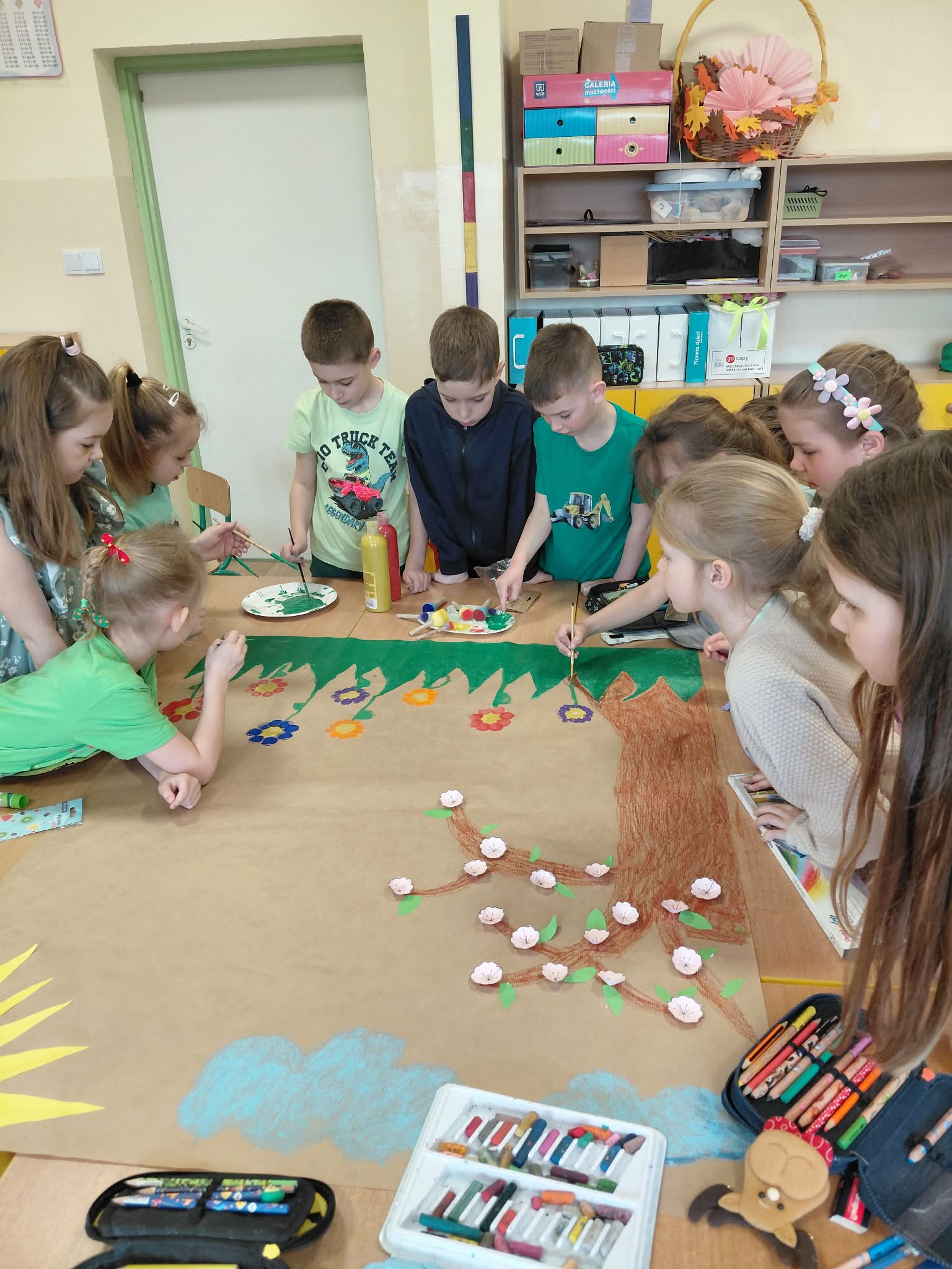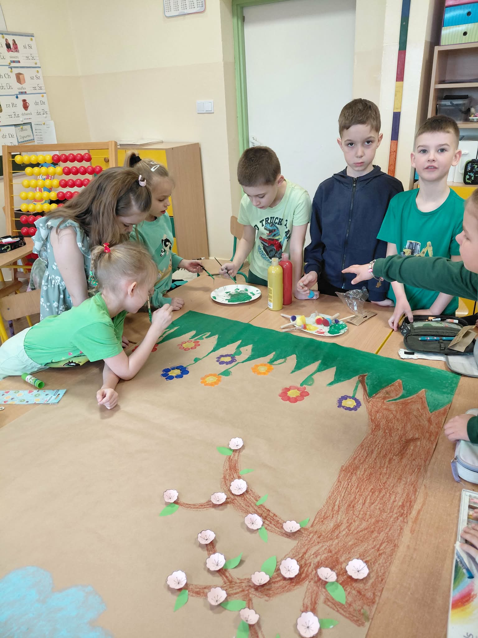 W klasach odbywały się wiosenne zajęcia tematyczne, a ich efektem były barwne plakaty, które ozdobiły szkolne korytarze. To był dzień pełen uśmiechu, dobrej zabawy i wiosennej energii!