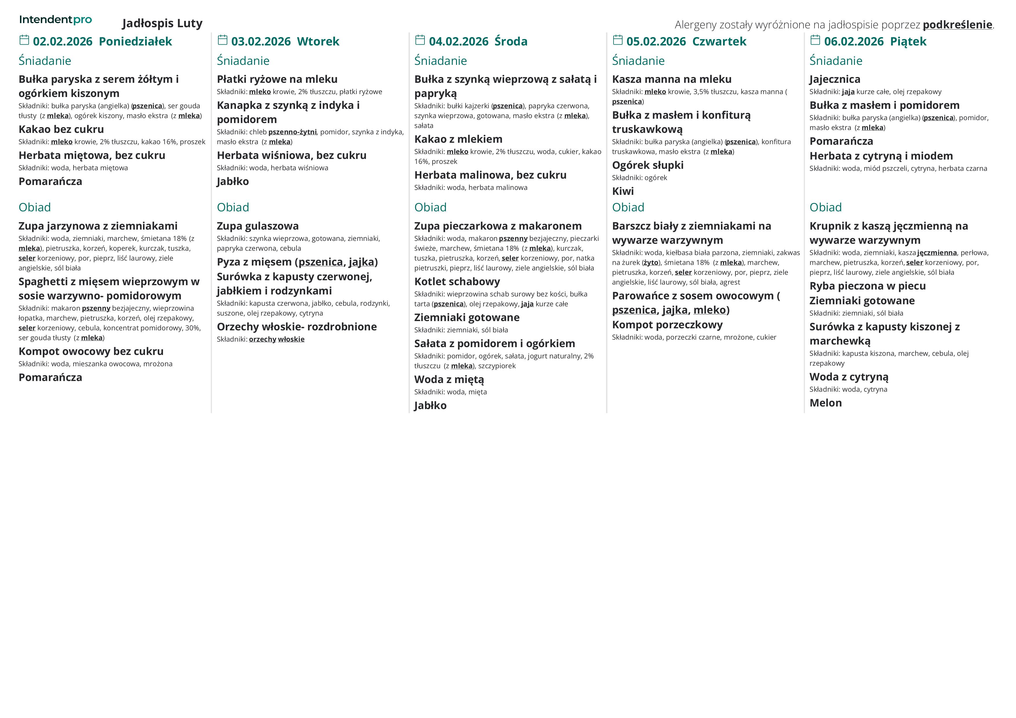 Za posiłki w lutym 2026 opłata wynosi: