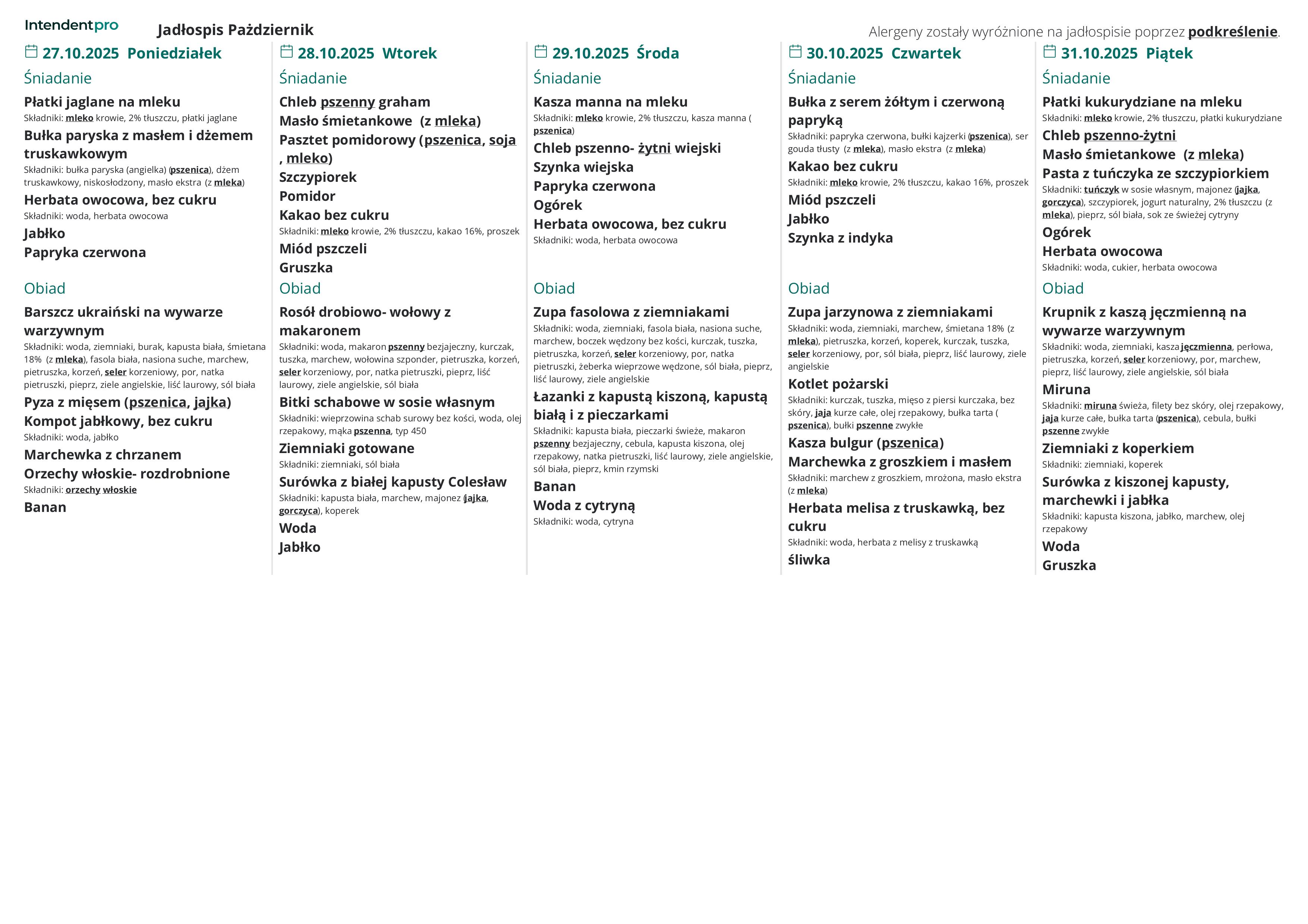 Za posiłki w listopadzie 2025 opłata wynosi: