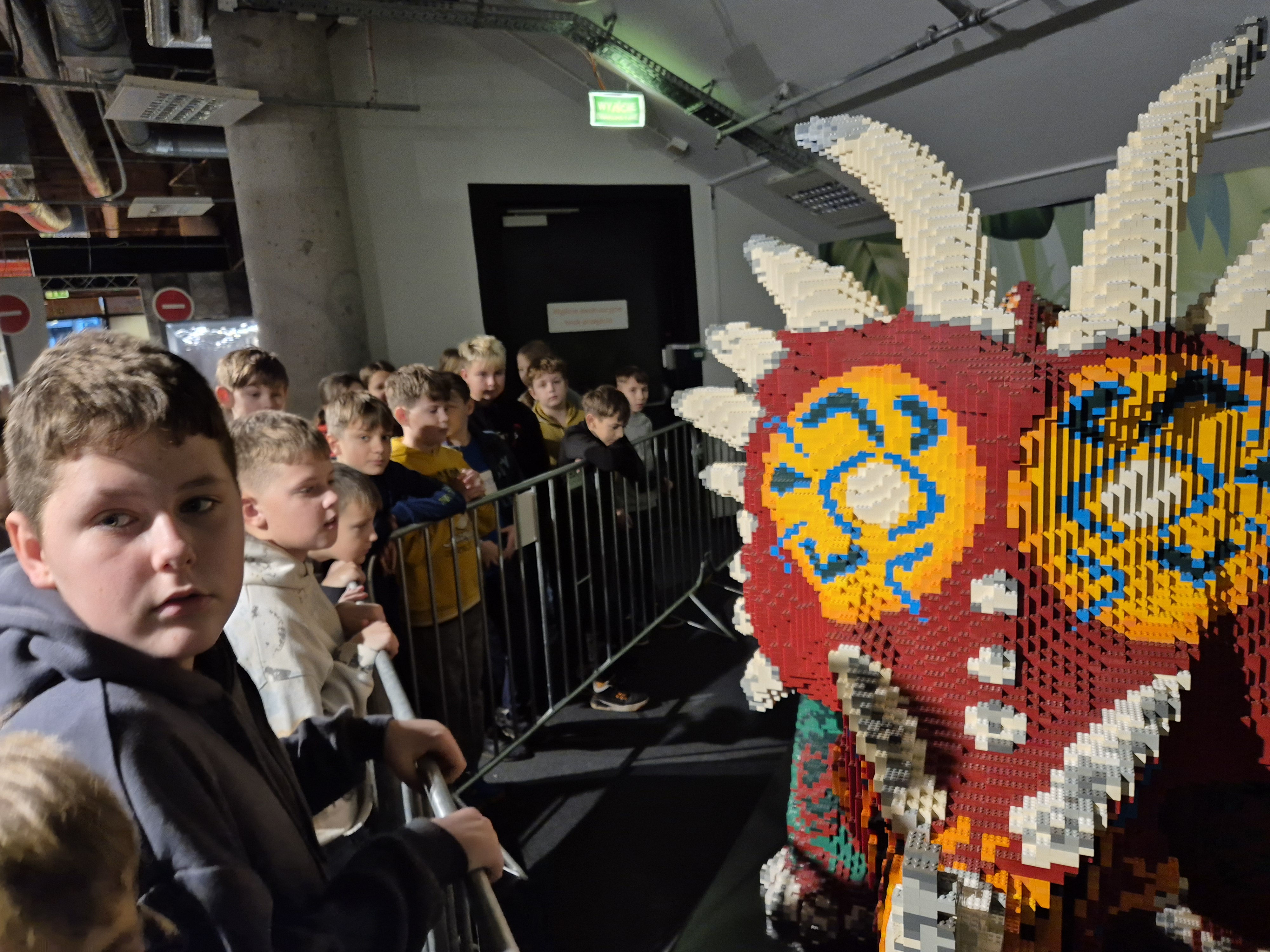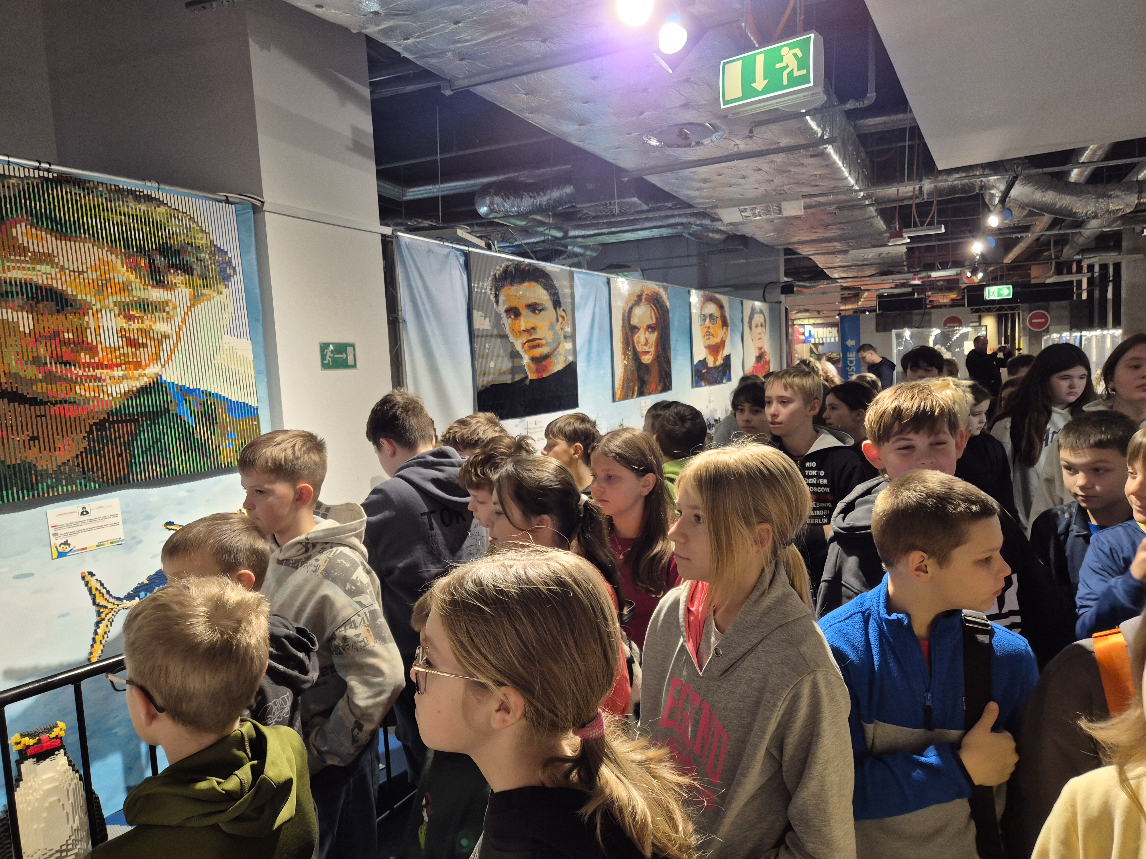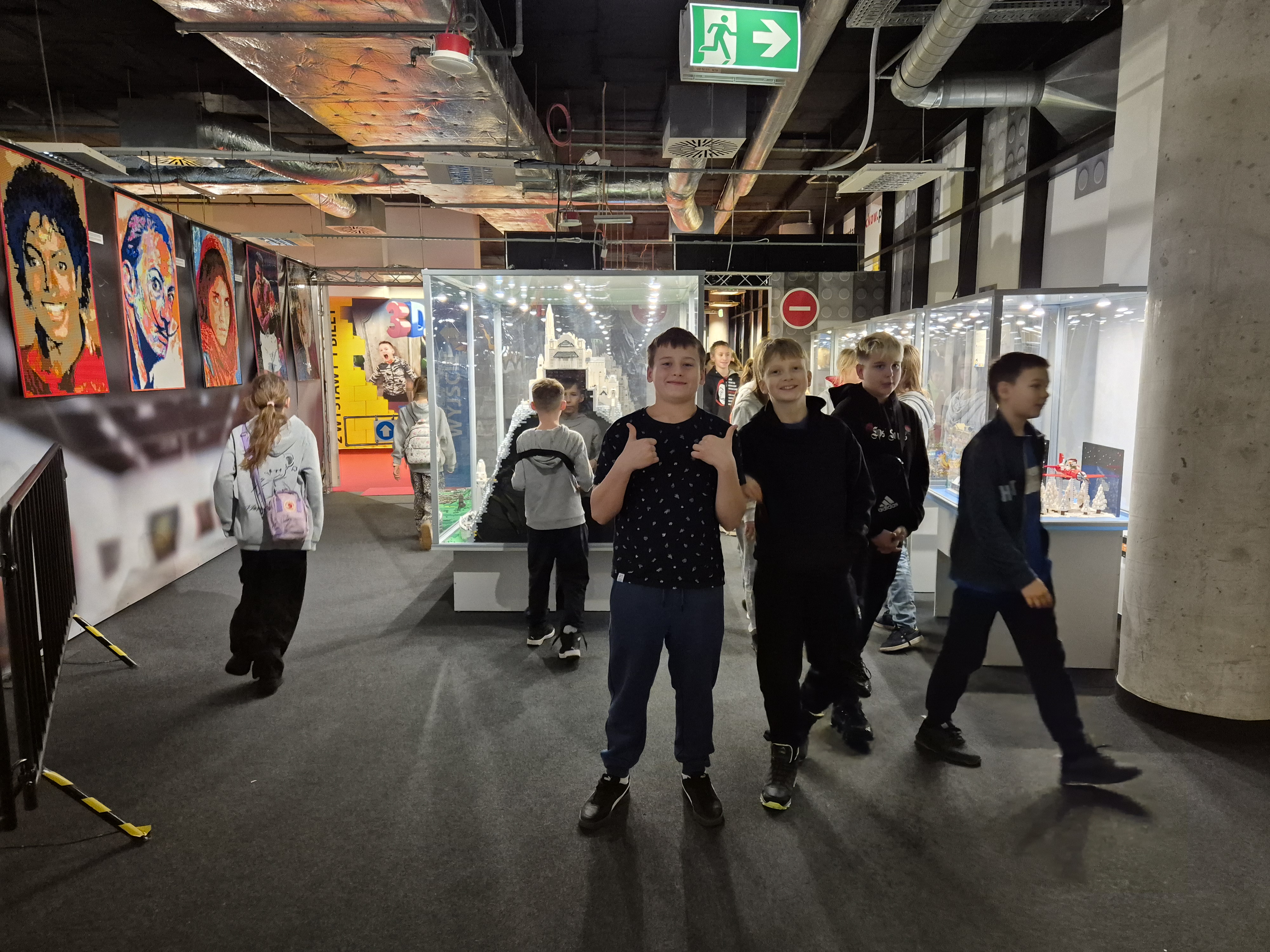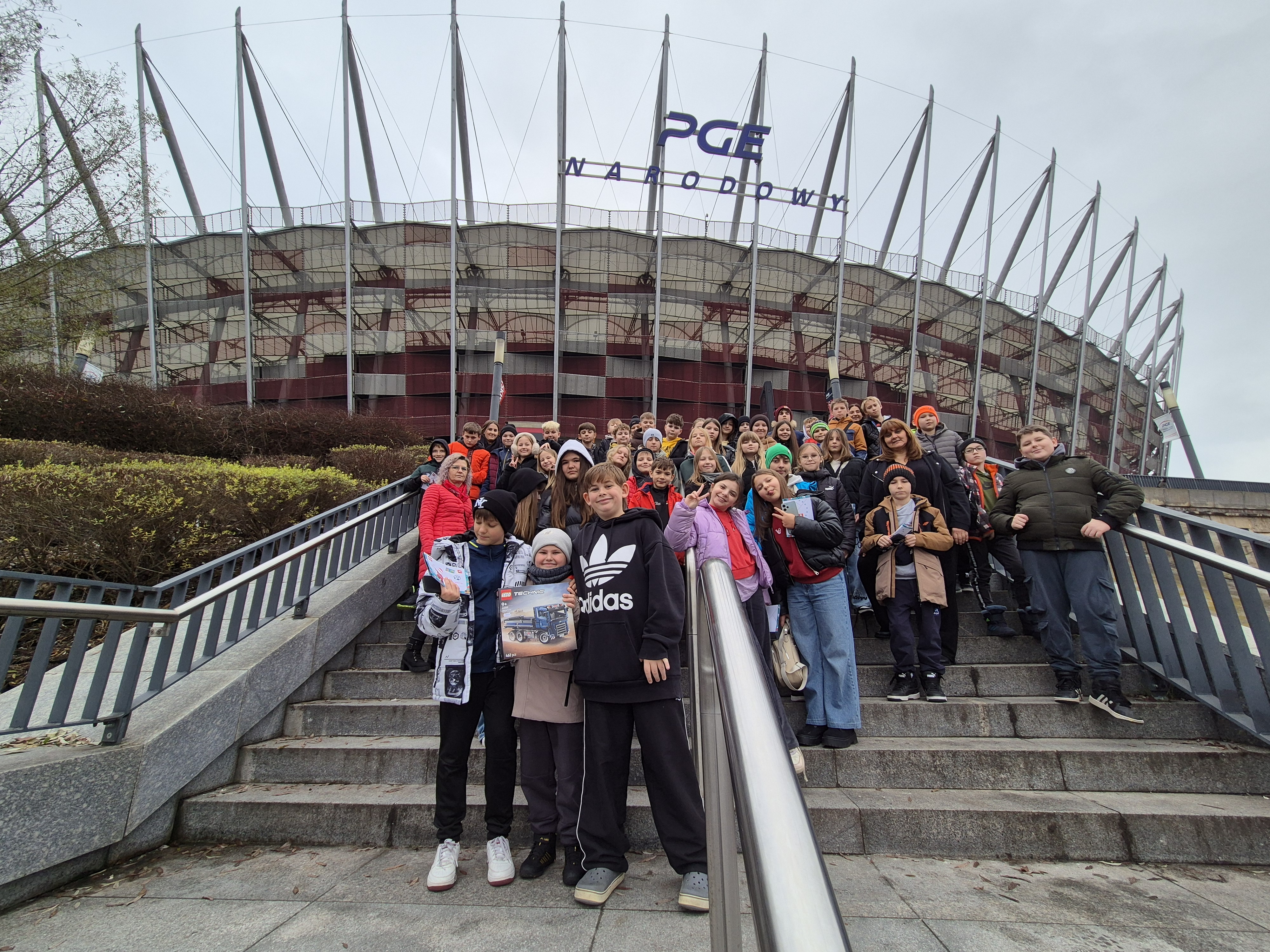 Pierwszym punktem programu okazała się wystawa klocków Lego na Stadionie Narodowym. Uczniowie z ogromnym zainteresowaniem oglądali imponujące makiety zbudowane z tysięcy klocków. Największe wrażenie robiły ruchome konstrukcje, znane postaci filmowe oraz modele pojazdów i budowli. Dzieci miały również możliwość wejścia do strefy zabawy, gdzie mogły samodzielnie tworzyć własne projekty. Na Stadionie Narodowym czekała także druga wystawa, przygotowana specjalnie z myślą o kreatywności i zabawie zdjęciami. Uczniowie pozowali w niezwykłych sceneriach, wykonywali zabawne i niecodzienne ujęcia oraz eksperymentowali z rekwizytami i iluzjami optycznymi. Była to świetna okazja do rozwijania wyobraźni i tworzenia oryginalnych fotografii.