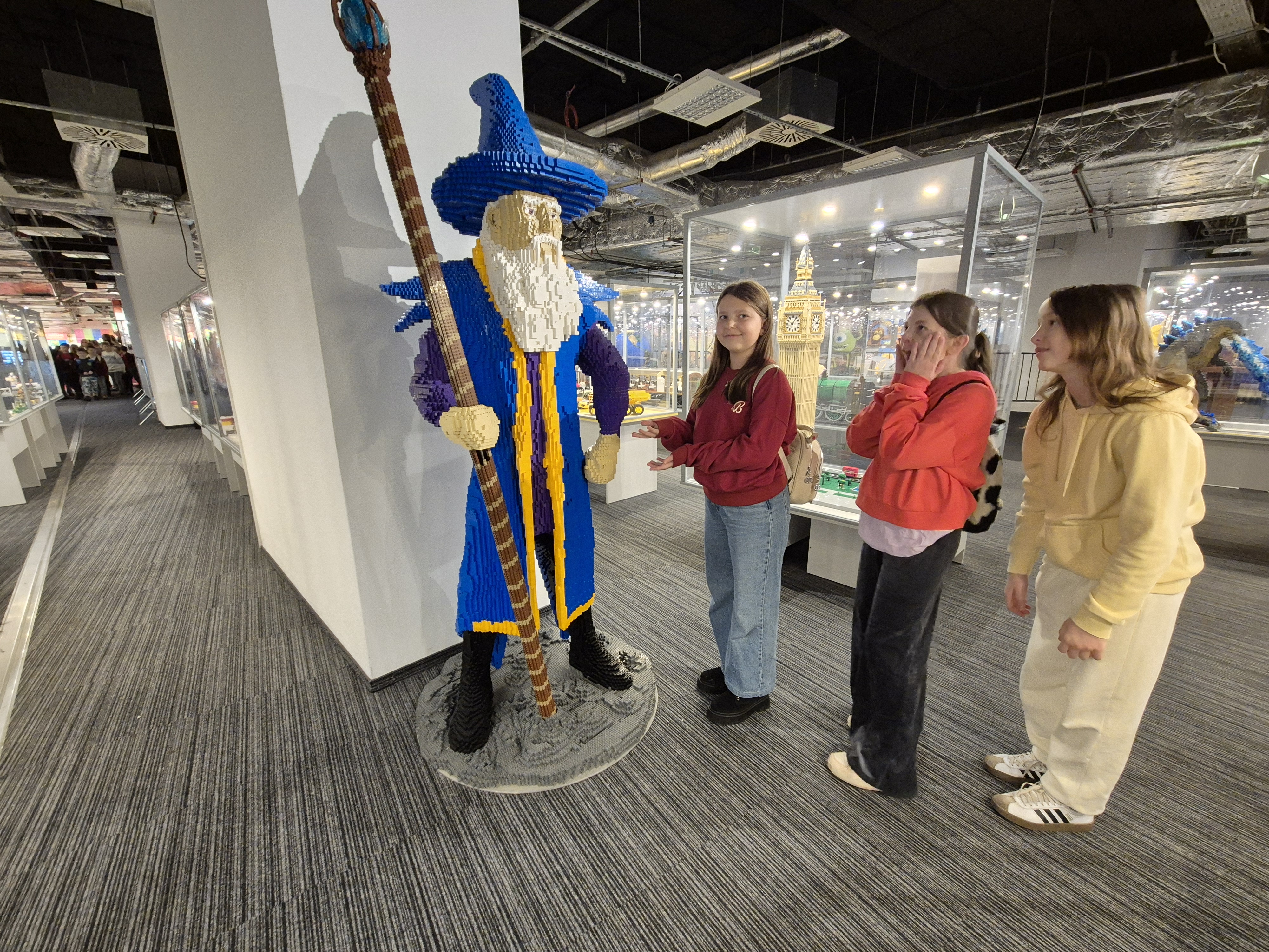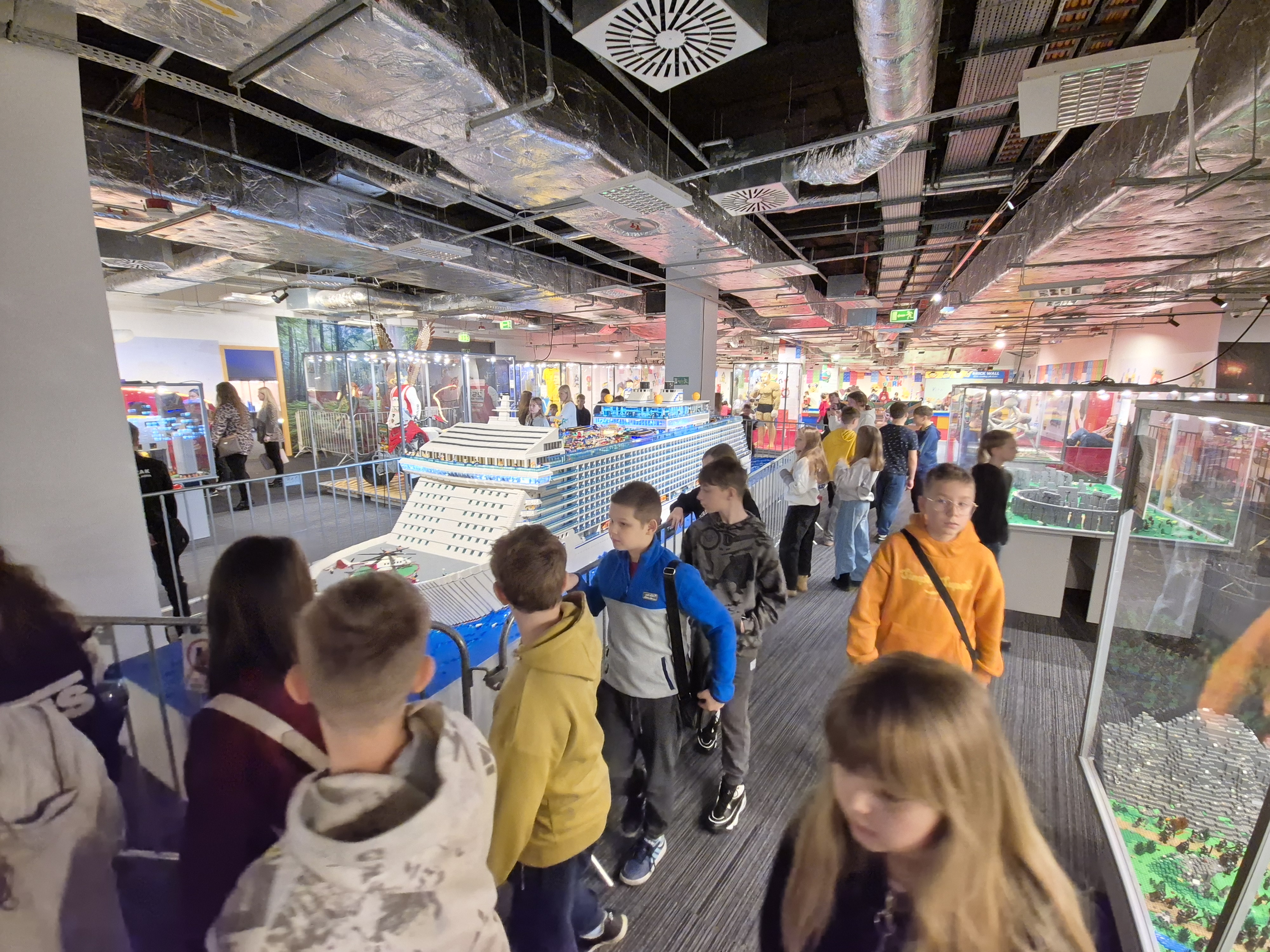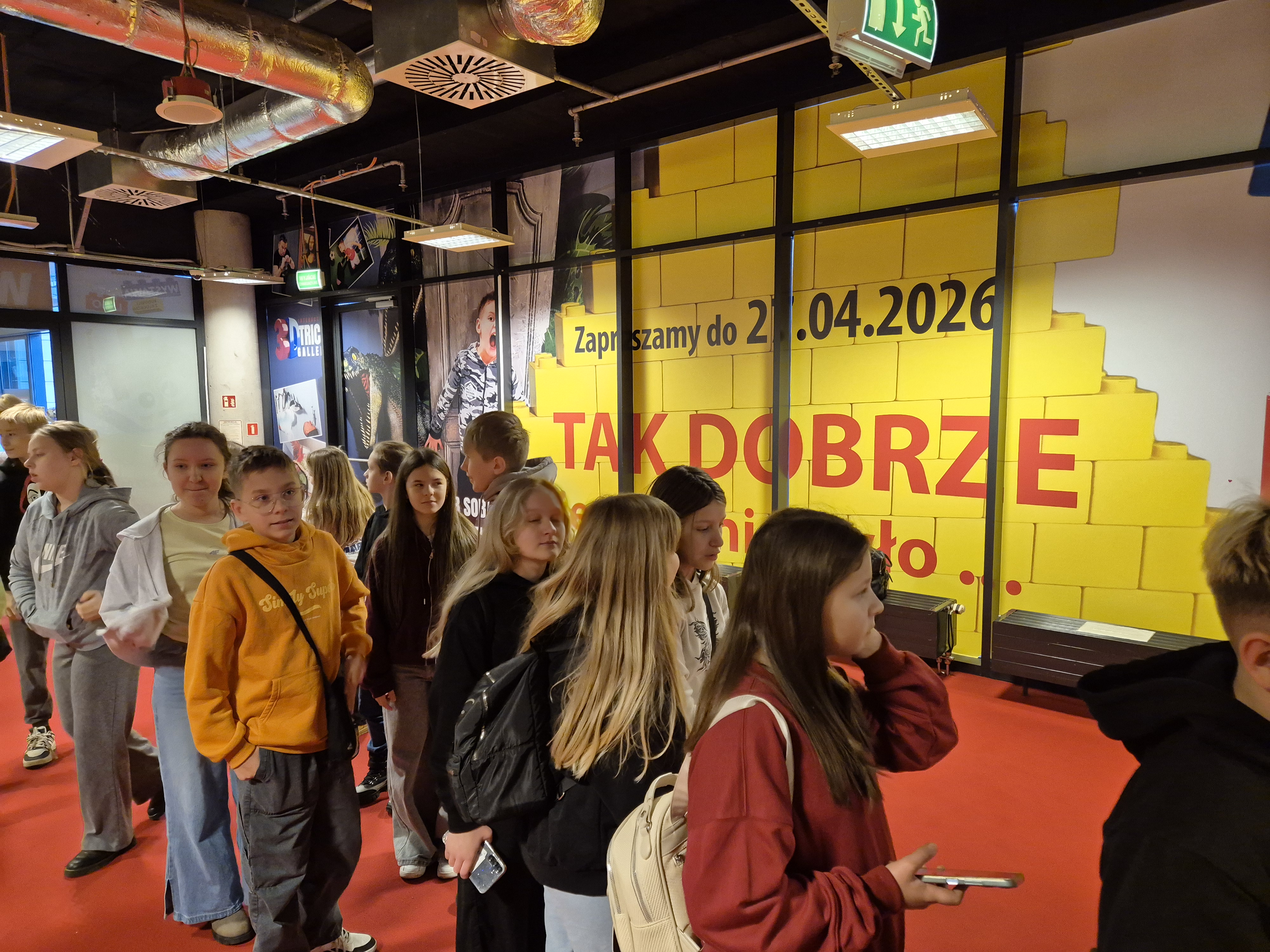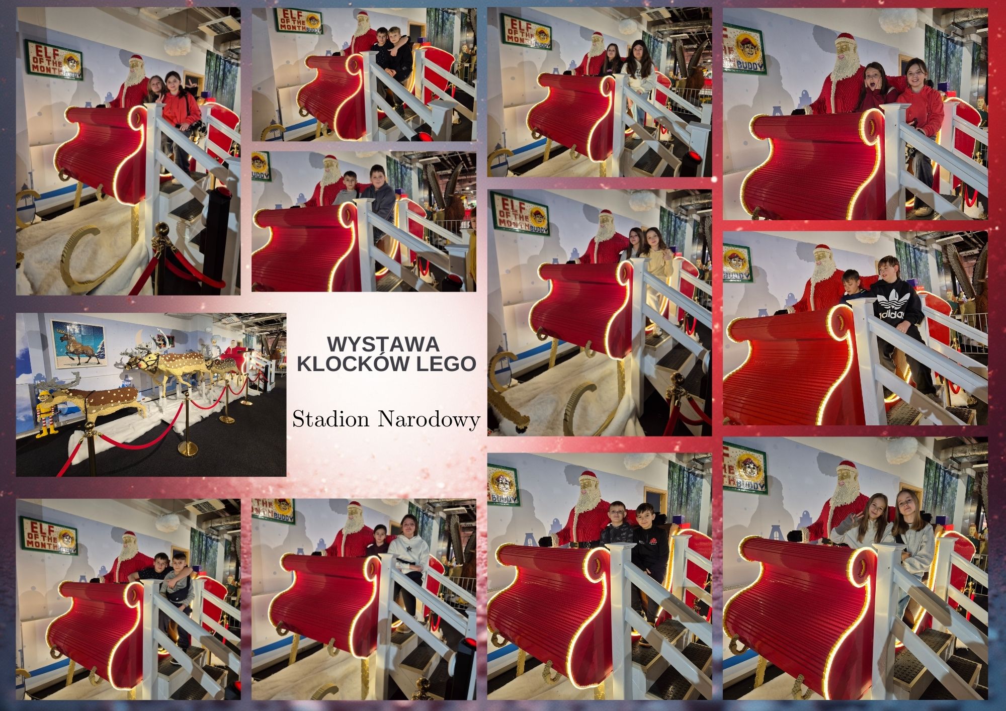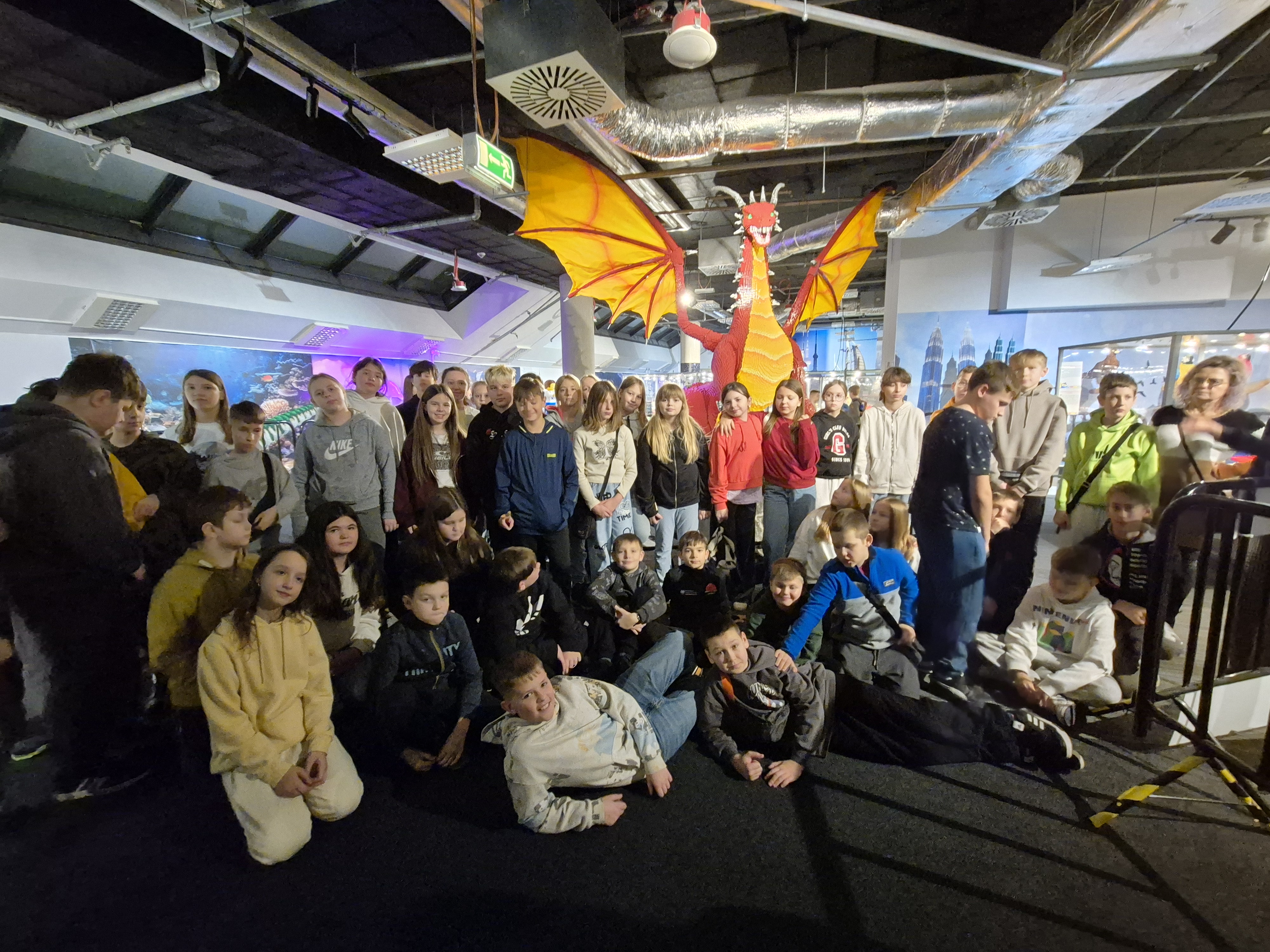 Pierwszym punktem programu okazała się wystawa klocków Lego na Stadionie Narodowym. Uczniowie z ogromnym zainteresowaniem oglądali imponujące makiety zbudowane z tysięcy klocków. Największe wrażenie robiły ruchome konstrukcje, znane postaci filmowe oraz modele pojazdów i budowli. Dzieci miały również możliwość wejścia do strefy zabawy, gdzie mogły samodzielnie tworzyć własne projekty. Na Stadionie Narodowym czekała także druga wystawa, przygotowana specjalnie z myślą o kreatywności i zabawie zdjęciami. Uczniowie pozowali w niezwykłych sceneriach, wykonywali zabawne i niecodzienne ujęcia oraz eksperymentowali z rekwizytami i iluzjami optycznymi. Była to świetna okazja do rozwijania wyobraźni i tworzenia oryginalnych fotografii.