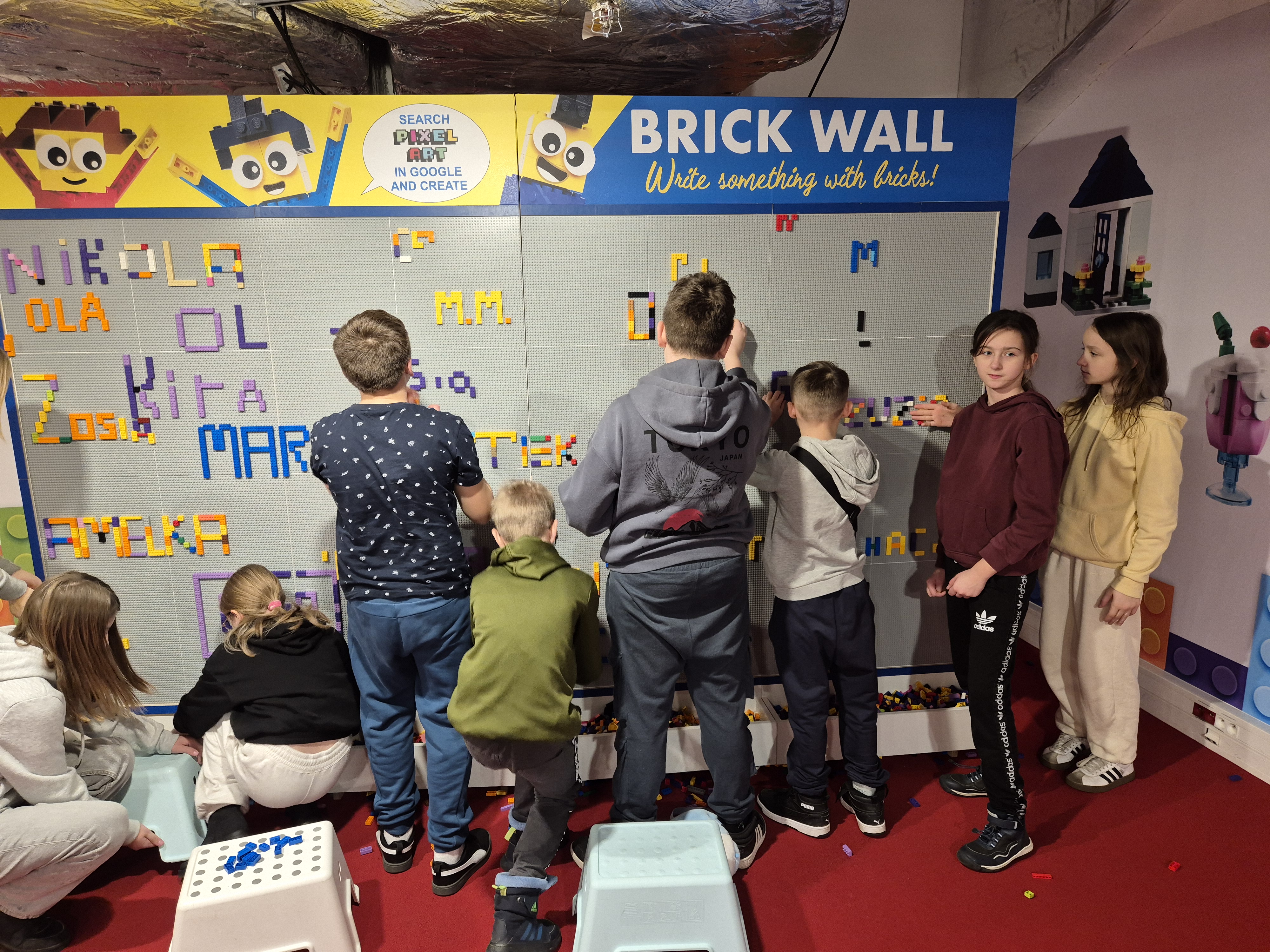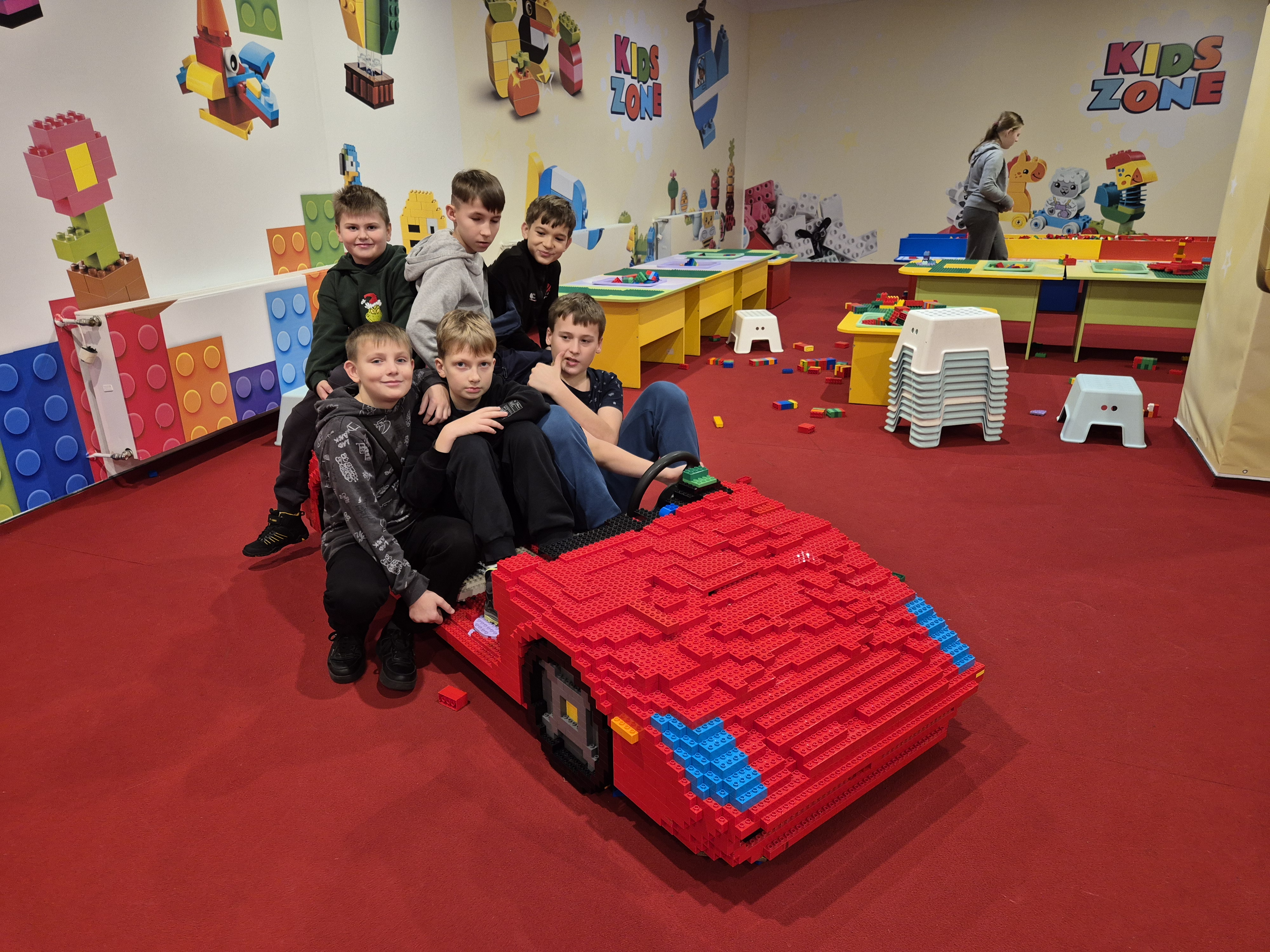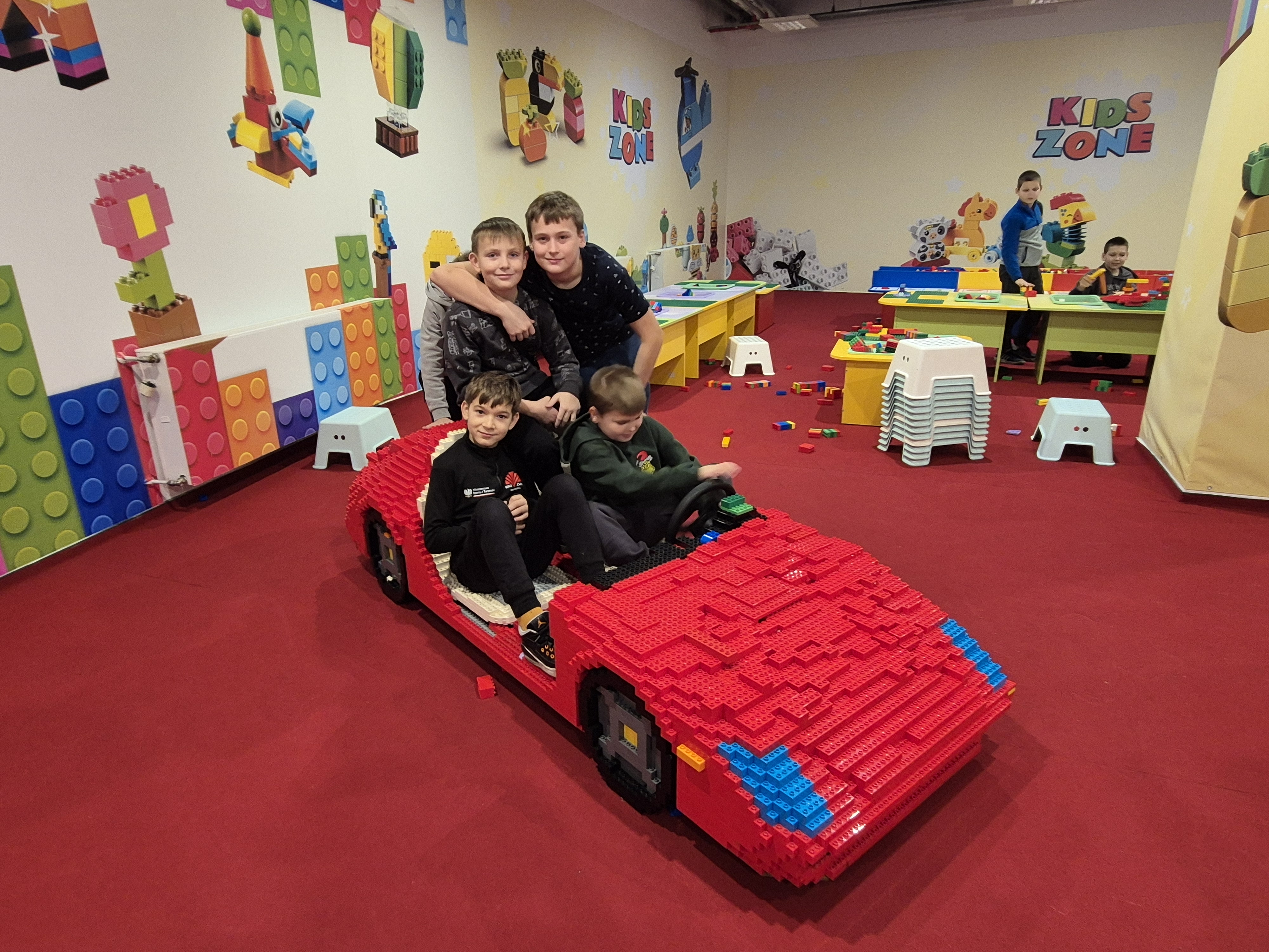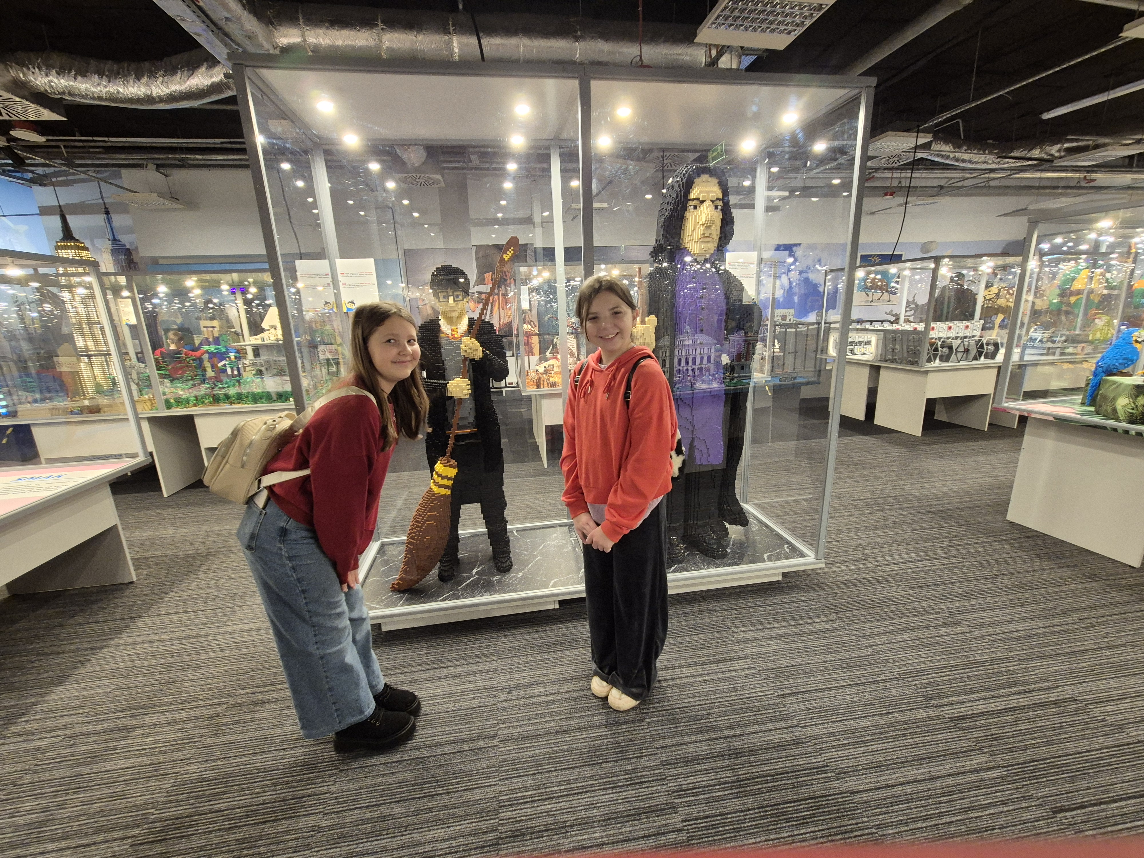 Pierwszym punktem programu okazała się wystawa klocków Lego na Stadionie Narodowym. Uczniowie z ogromnym zainteresowaniem oglądali imponujące makiety zbudowane z tysięcy klocków. Największe wrażenie robiły ruchome konstrukcje, znane postaci filmowe oraz modele pojazdów i budowli. Dzieci miały również możliwość wejścia do strefy zabawy, gdzie mogły samodzielnie tworzyć własne projekty. Na Stadionie Narodowym czekała także druga wystawa, przygotowana specjalnie z myślą o kreatywności i zabawie zdjęciami. Uczniowie pozowali w niezwykłych sceneriach, wykonywali zabawne i niecodzienne ujęcia oraz eksperymentowali z rekwizytami i iluzjami optycznymi. Była to świetna okazja do rozwijania wyobraźni i tworzenia oryginalnych fotografii.