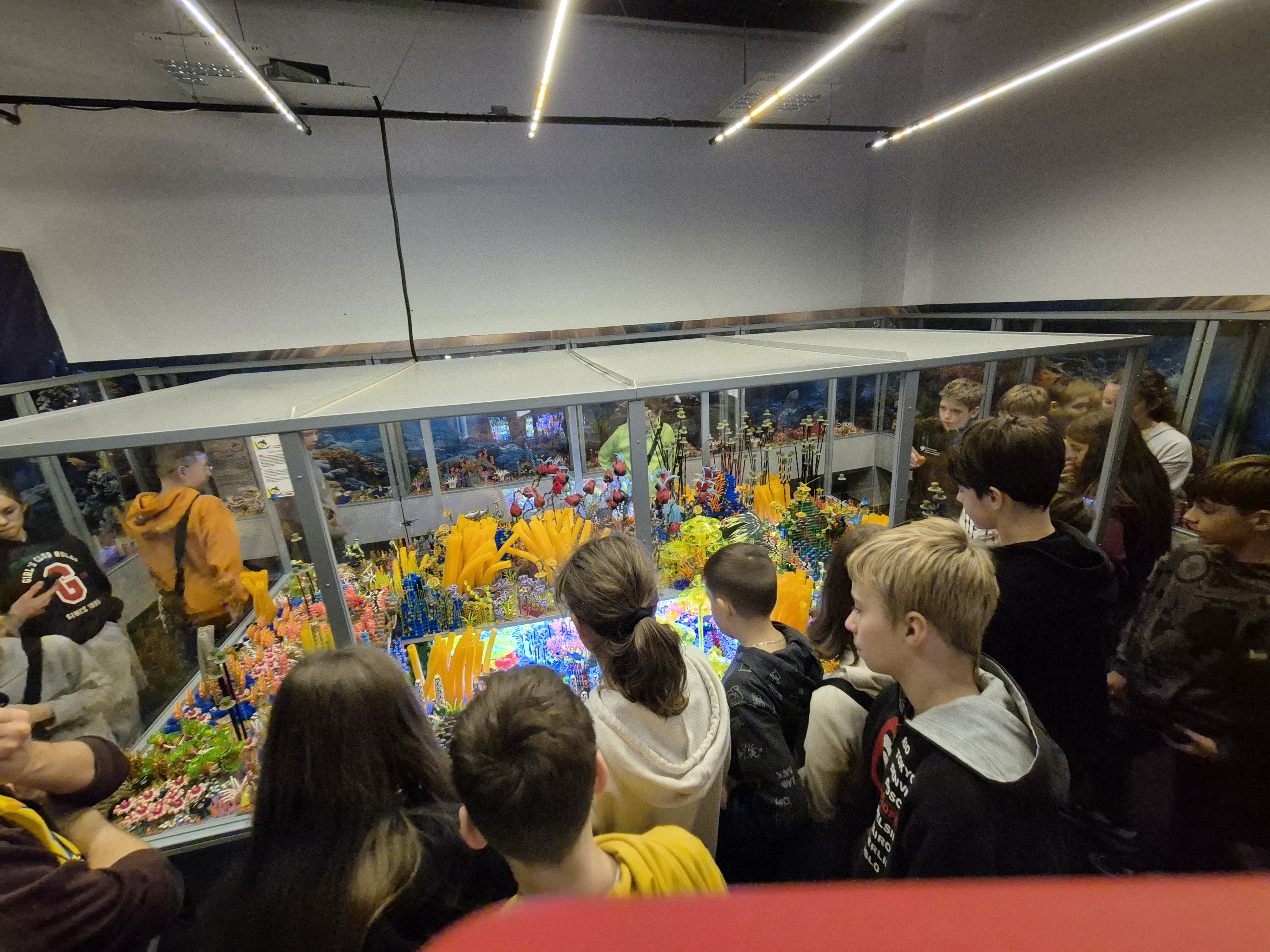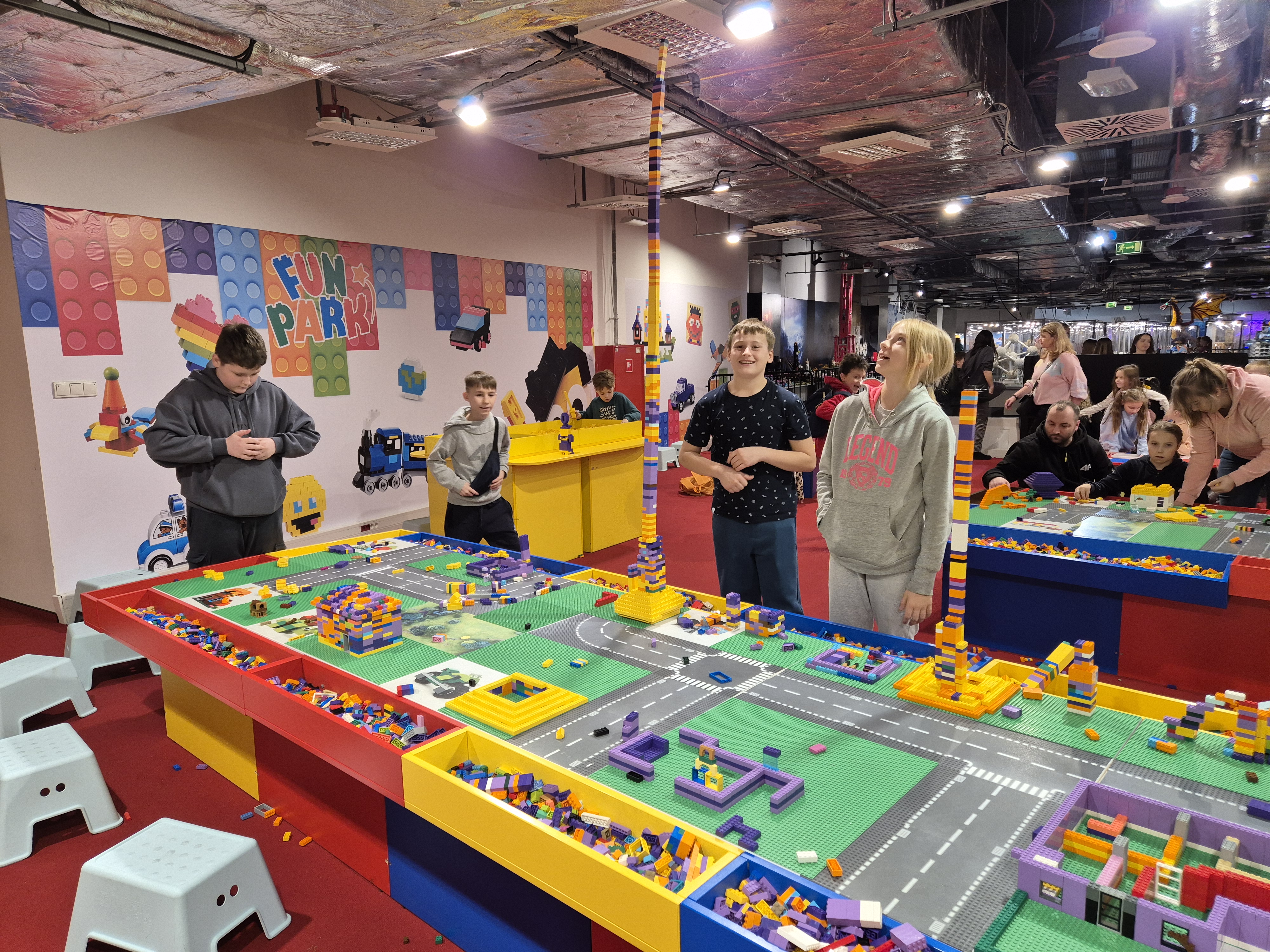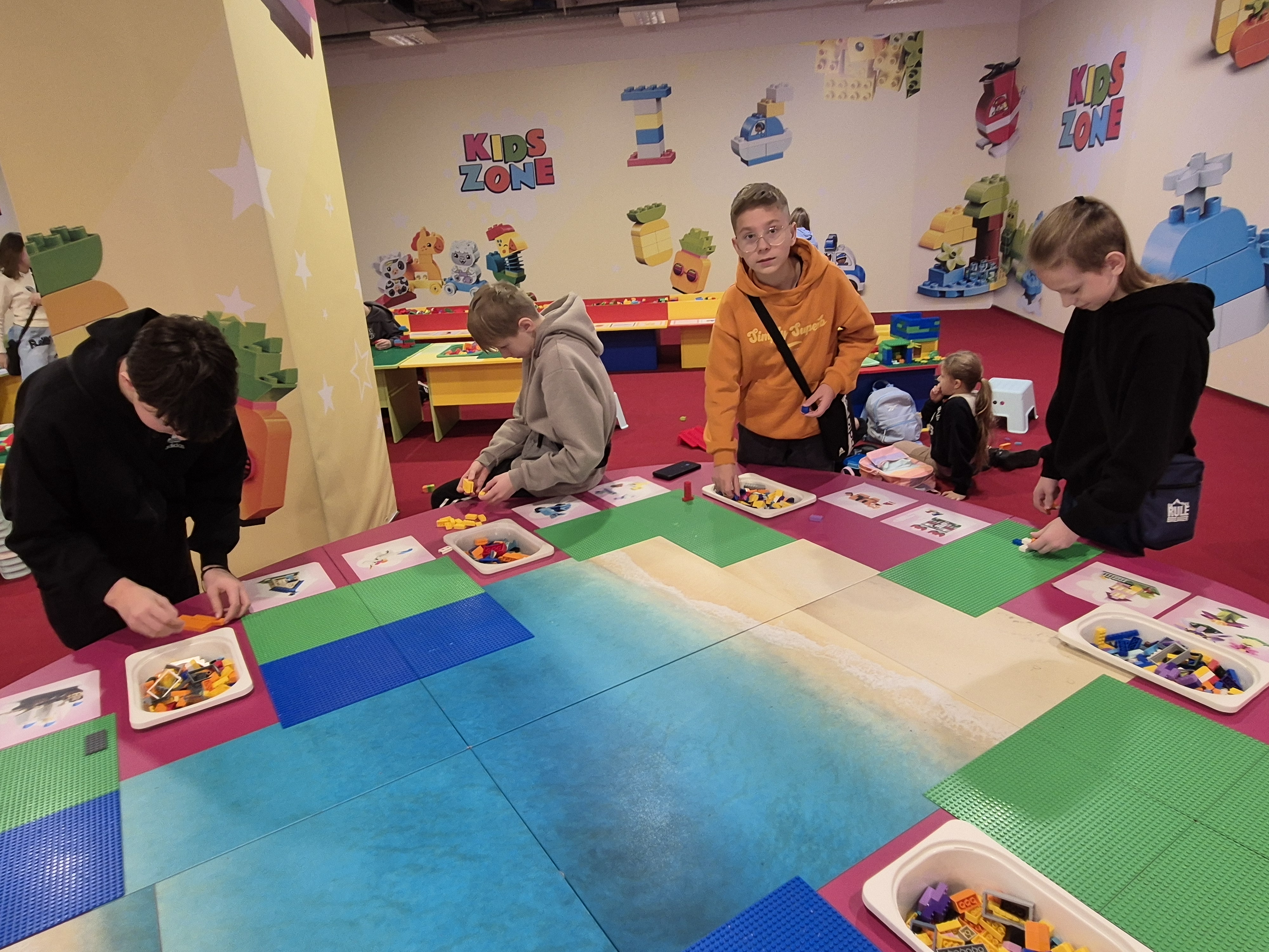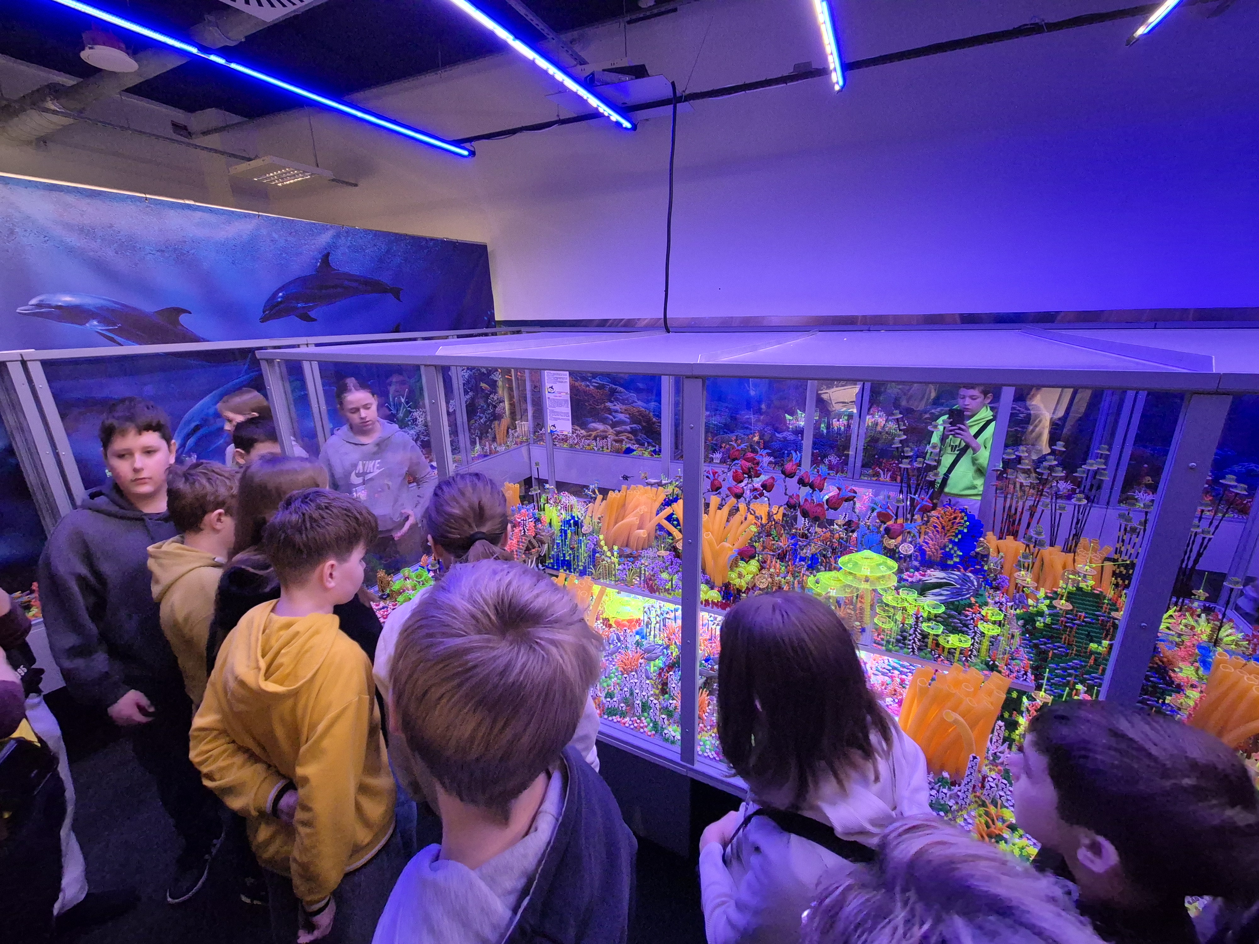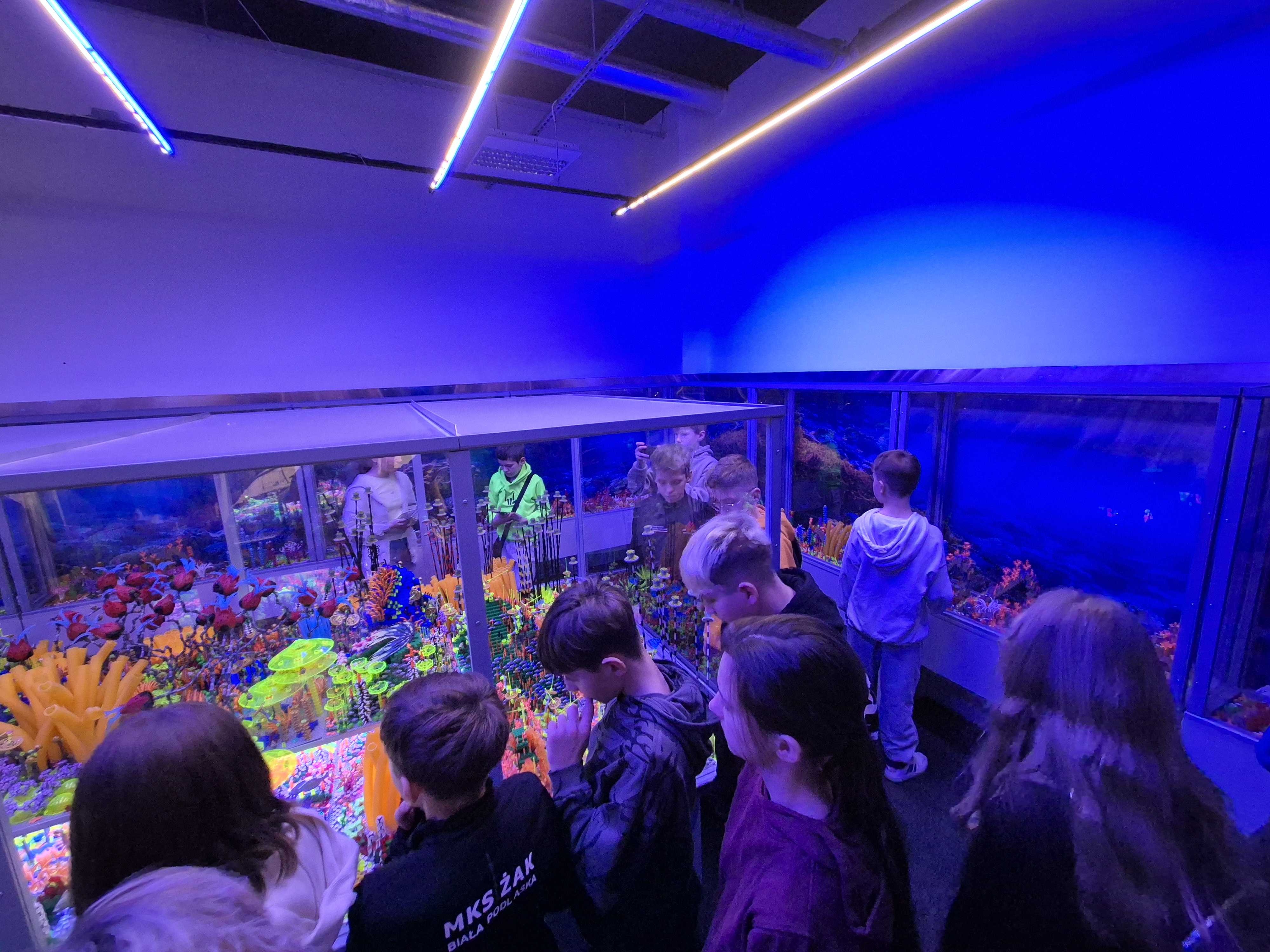 Pierwszym punktem programu okazała się wystawa klocków Lego na Stadionie Narodowym. Uczniowie z ogromnym zainteresowaniem oglądali imponujące makiety zbudowane z tysięcy klocków. Największe wrażenie robiły ruchome konstrukcje, znane postaci filmowe oraz modele pojazdów i budowli. Dzieci miały również możliwość wejścia do strefy zabawy, gdzie mogły samodzielnie tworzyć własne projekty. Na Stadionie Narodowym czekała także druga wystawa, przygotowana specjalnie z myślą o kreatywności i zabawie zdjęciami. Uczniowie pozowali w niezwykłych sceneriach, wykonywali zabawne i niecodzienne ujęcia oraz eksperymentowali z rekwizytami i iluzjami optycznymi. Była to świetna okazja do rozwijania wyobraźni i tworzenia oryginalnych fotografii.